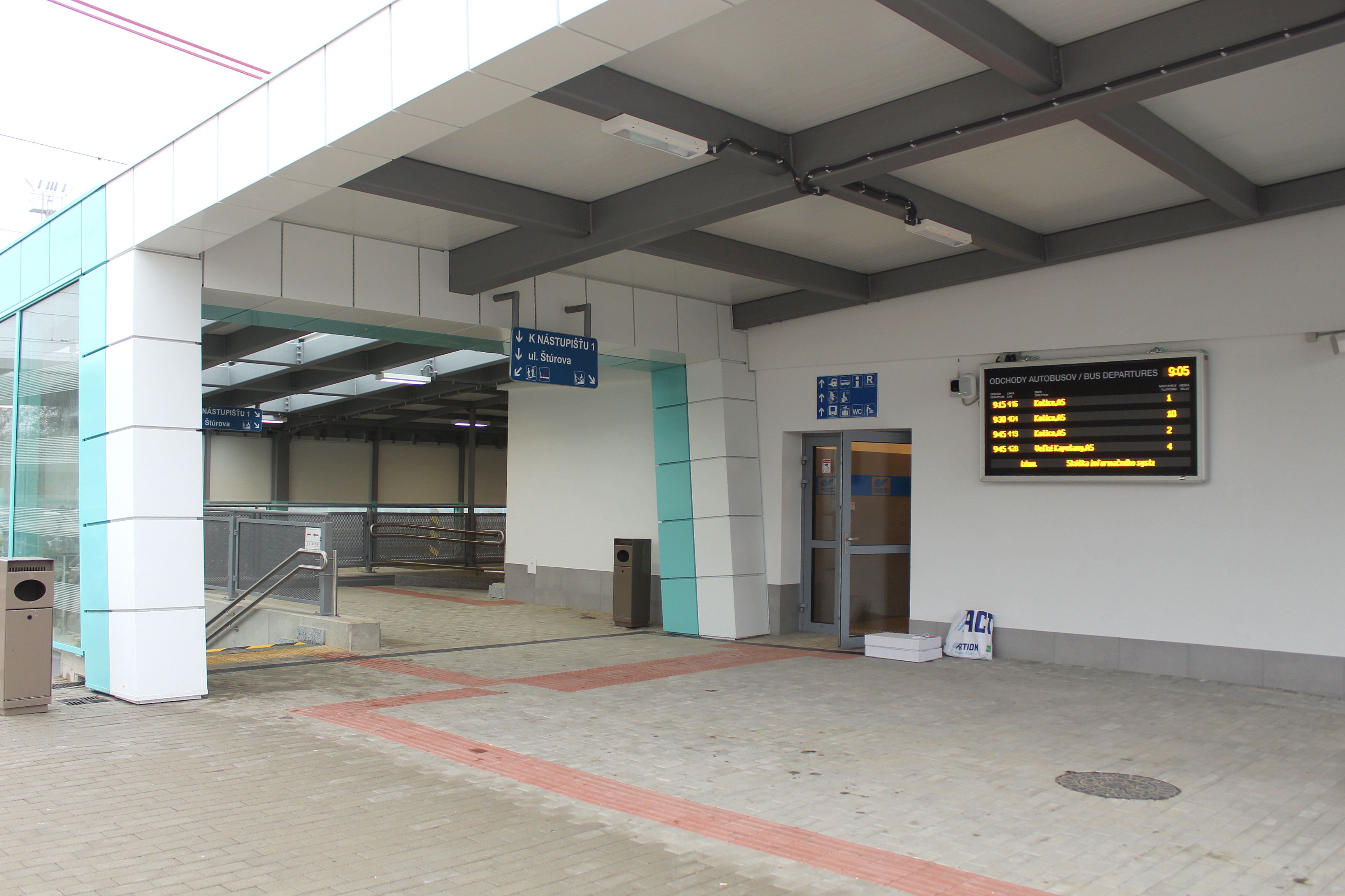 Rozhodujúcimi stavebnými objektmi terminálu sú – novobudovaný podchod pre cestujúcich a chodcov spájajúci časť „za koľajami“ s centrálnou a vyústením na rekonštruované železničné ostrovné nástupište, ďalej prevádzkovo-technologická budova terminálu, zastrešené nástupiská a výstupiská autobusovej časti terminálu, odstavno-parkovacie plochy autobusov, parkovacie pozície pre osobné automobily, terminálové komunikácie. Technologickú časť stavby dopĺňajú informačné, kamerové, prenosové, oznamovacie a rozhlasové systémy tak v železničnej, ako aj autobusovej časti terminálu.
