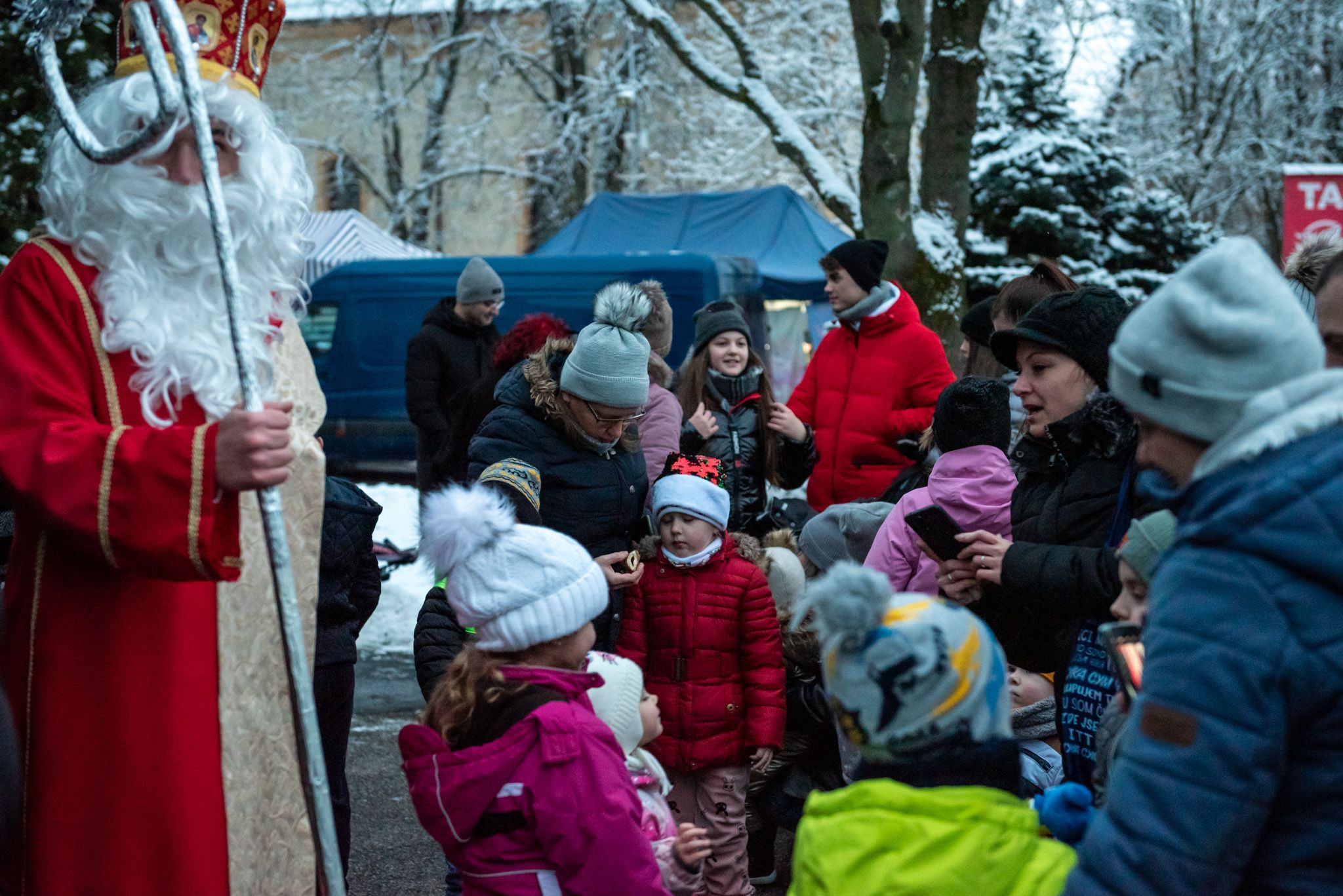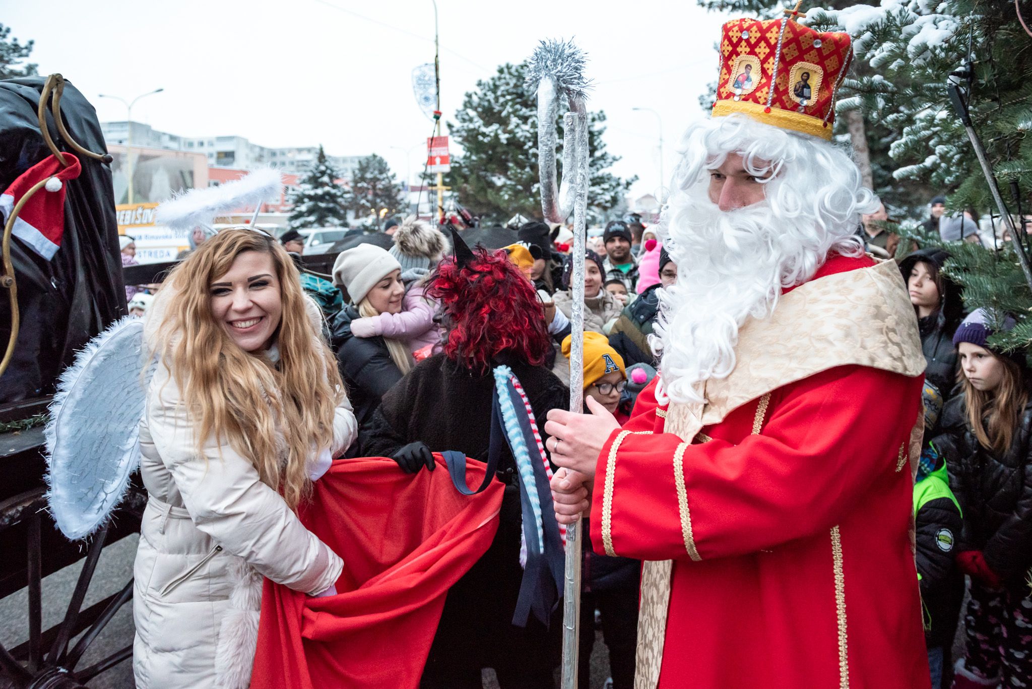 Mikuláš počas svojho putovania k dobrým a poslušným deťom zavítal pondelok 4. 12. aj k nám, do Trebišova. Najskôr pozdravil všetkých Trebišovčanov v uliciach mesta z koča, v ktorom sa viezol aj s anjelikom a čertom. Pred Mestským kultúrnym strediskom vystúpili a s radosťou sa všetci traja fotili s najmenšími Trebišovčanmi a rozdával im sladkosti.