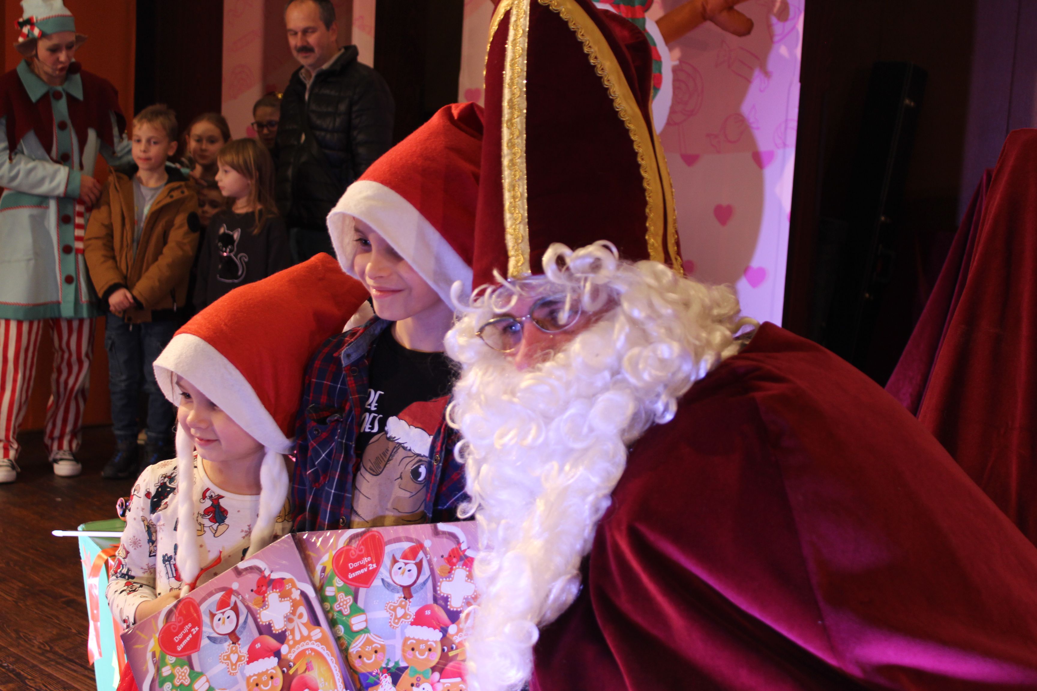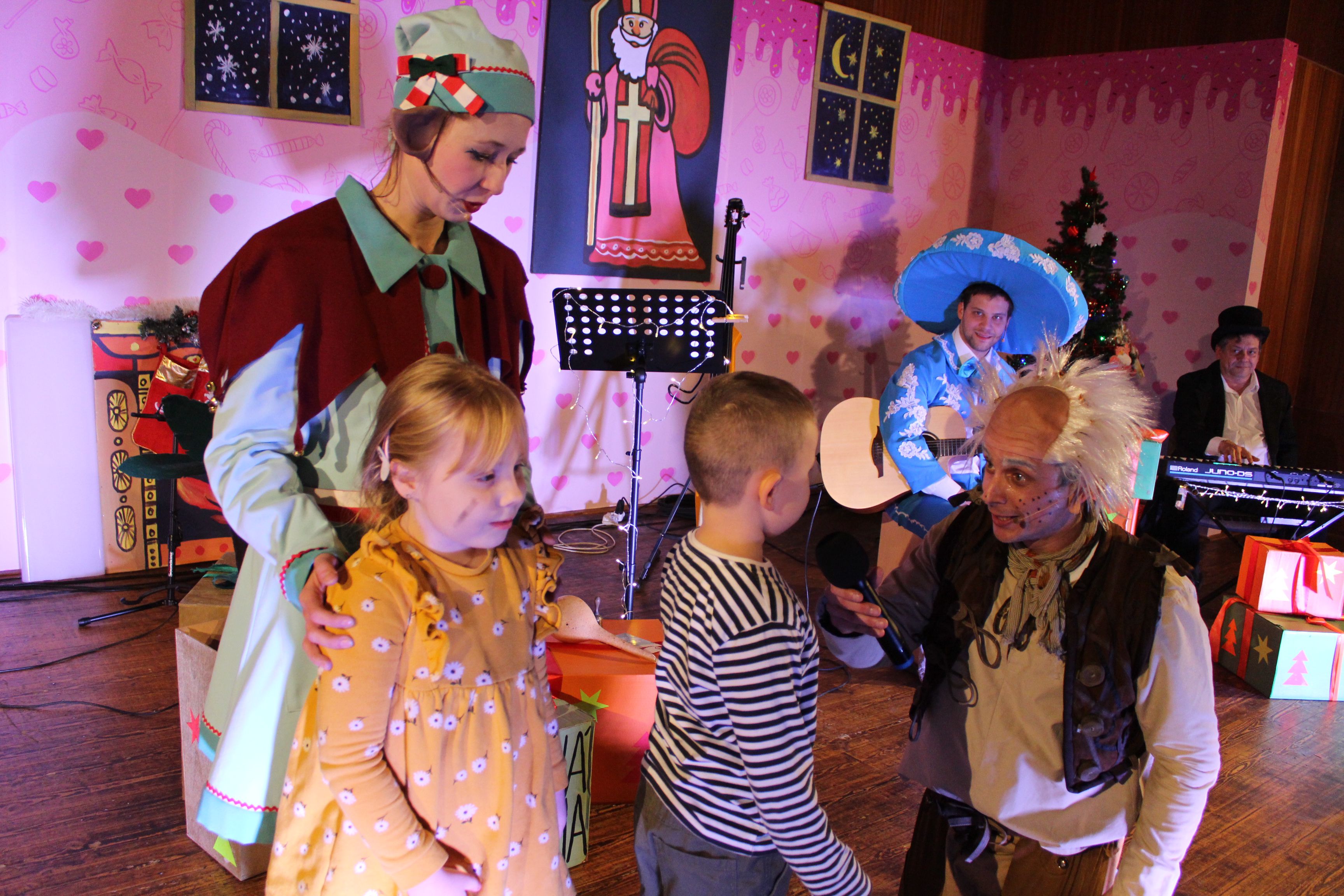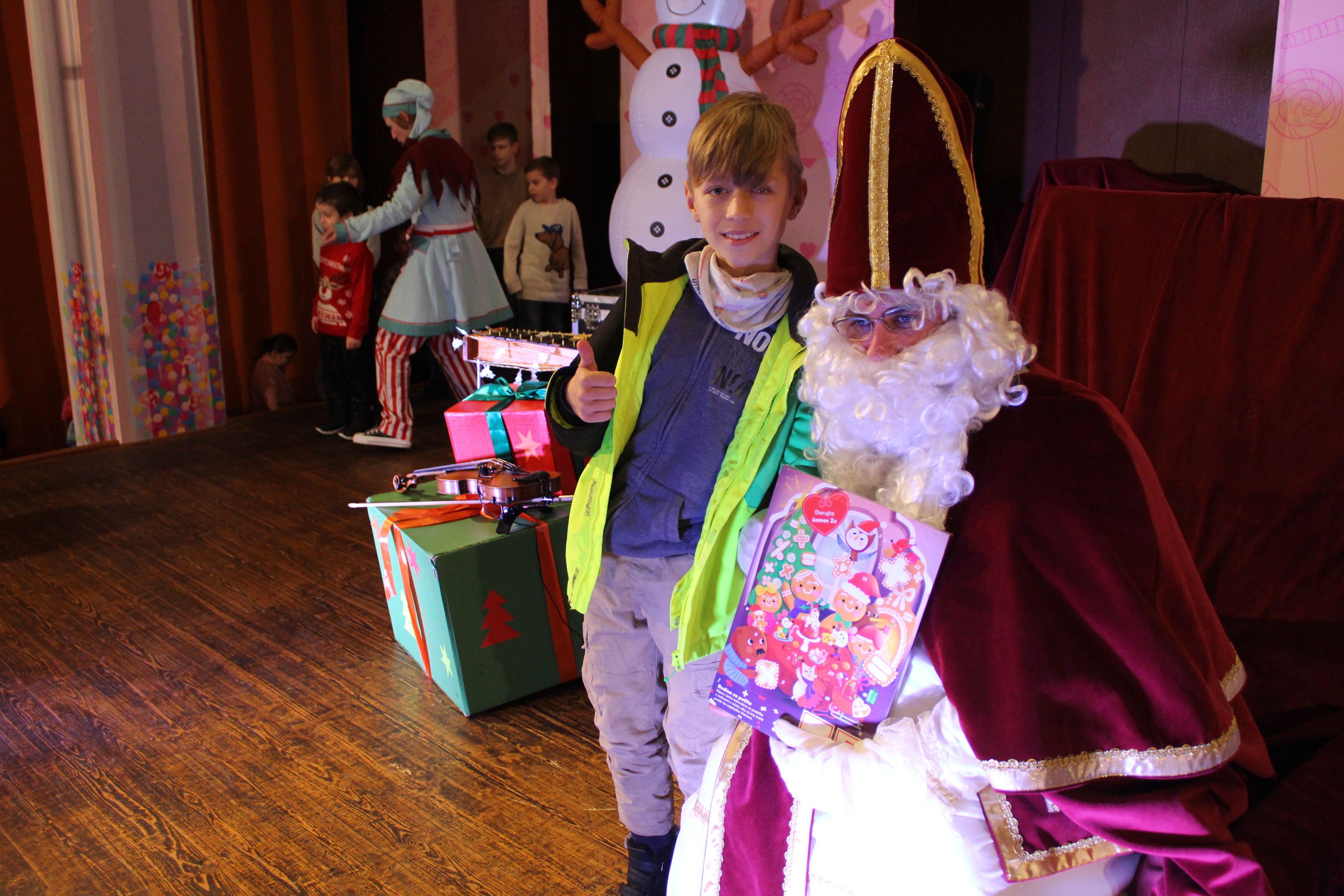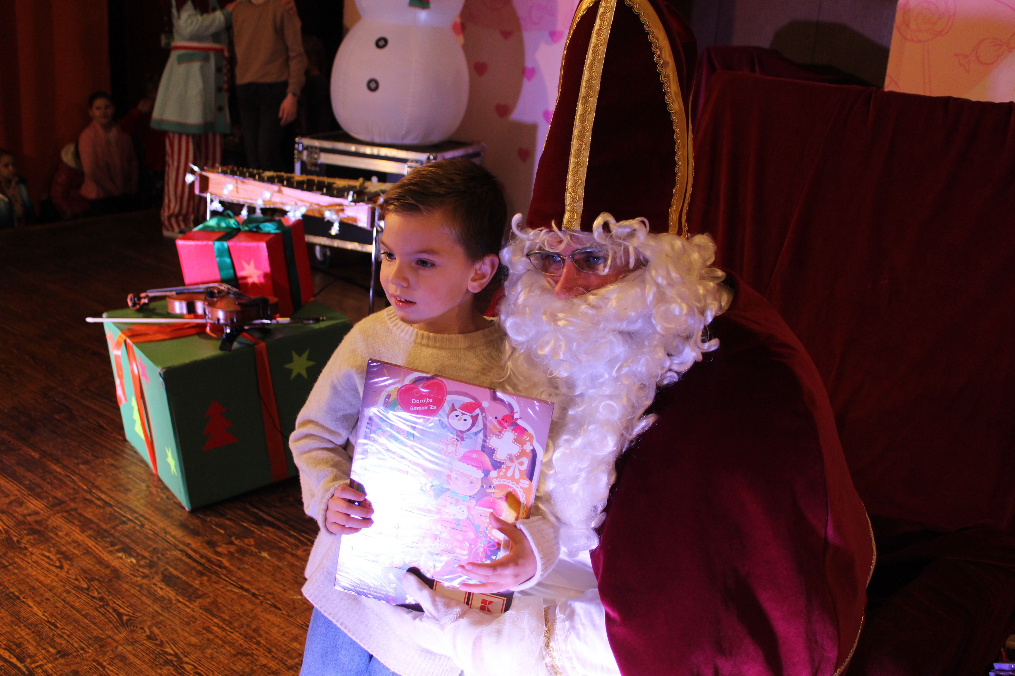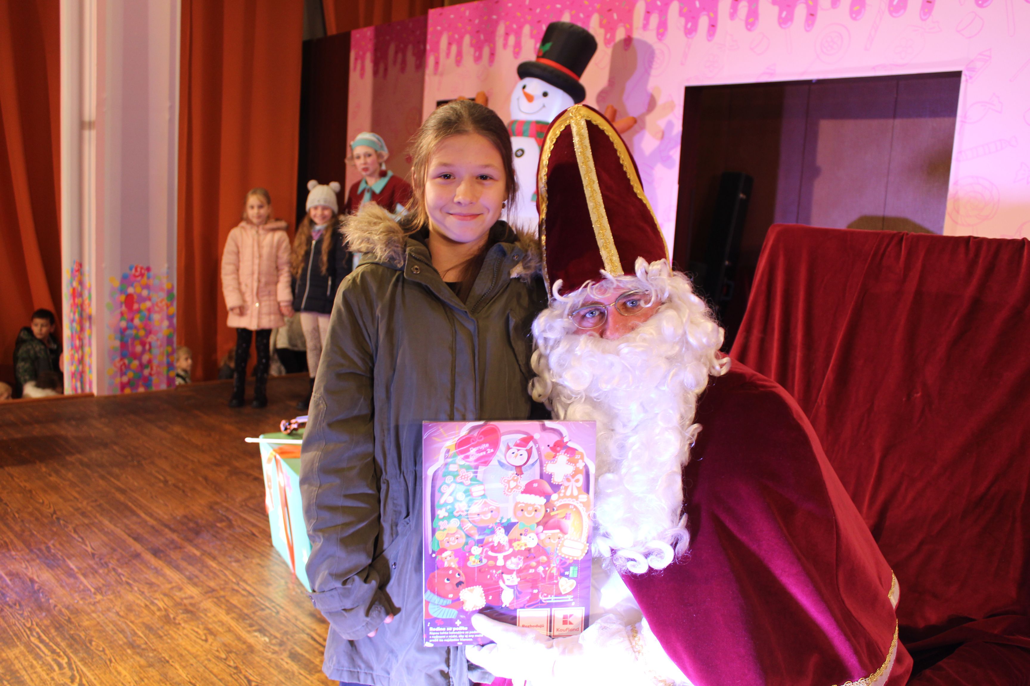 O 16.00 Mikuláš s primátorom mesta PhDr. Marekom Čižmárom rozsvietili krásny vianočný stromček a všetky deti pozvali do estrádnej sály na predstavenie Arthurovej kapely, v ktorej hrali a spievali postavičky z rozprávok: hrdinovia Obelix, Arthur, Elfka Idril, Ernesto de la Cruz a Maestro Frankanella.