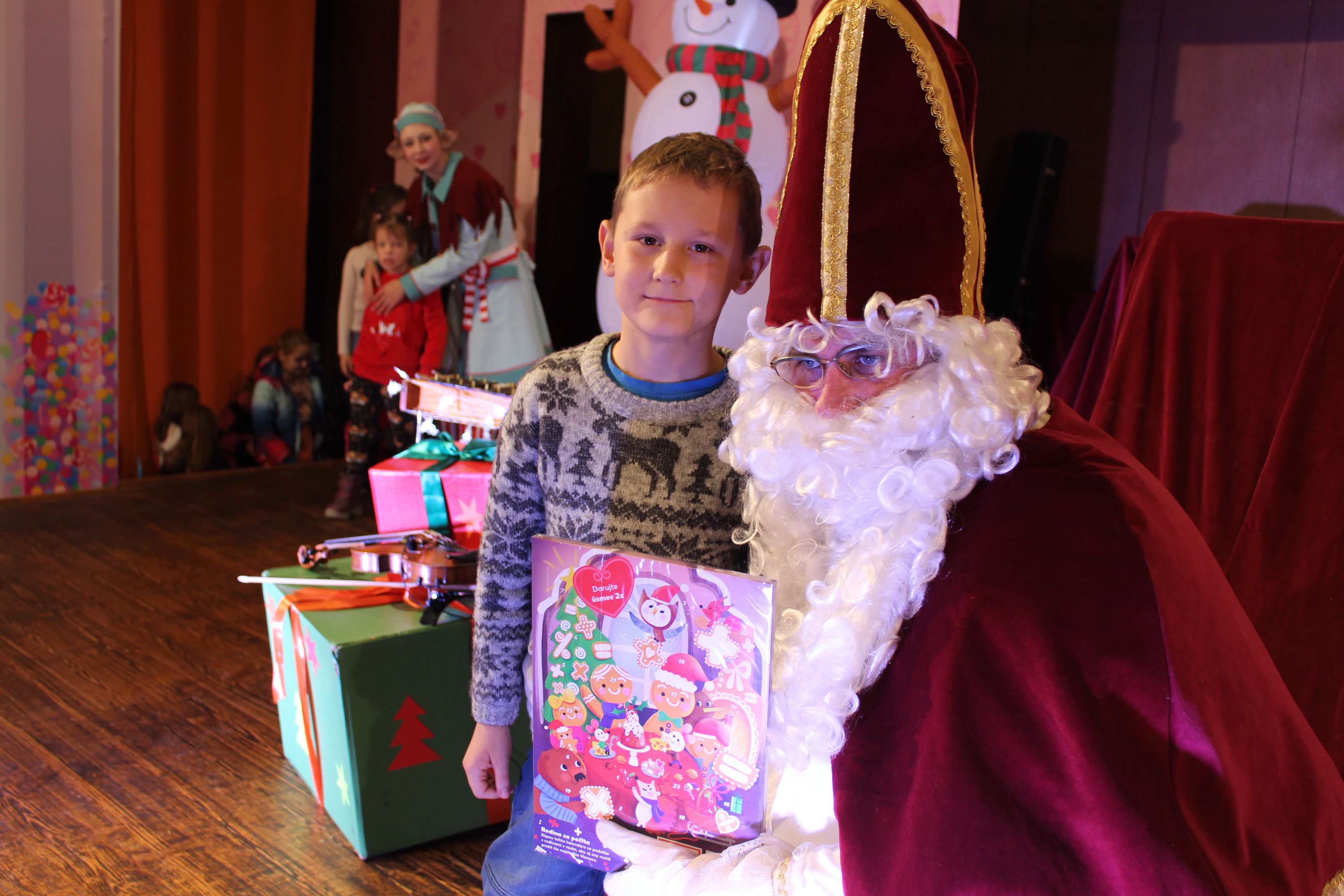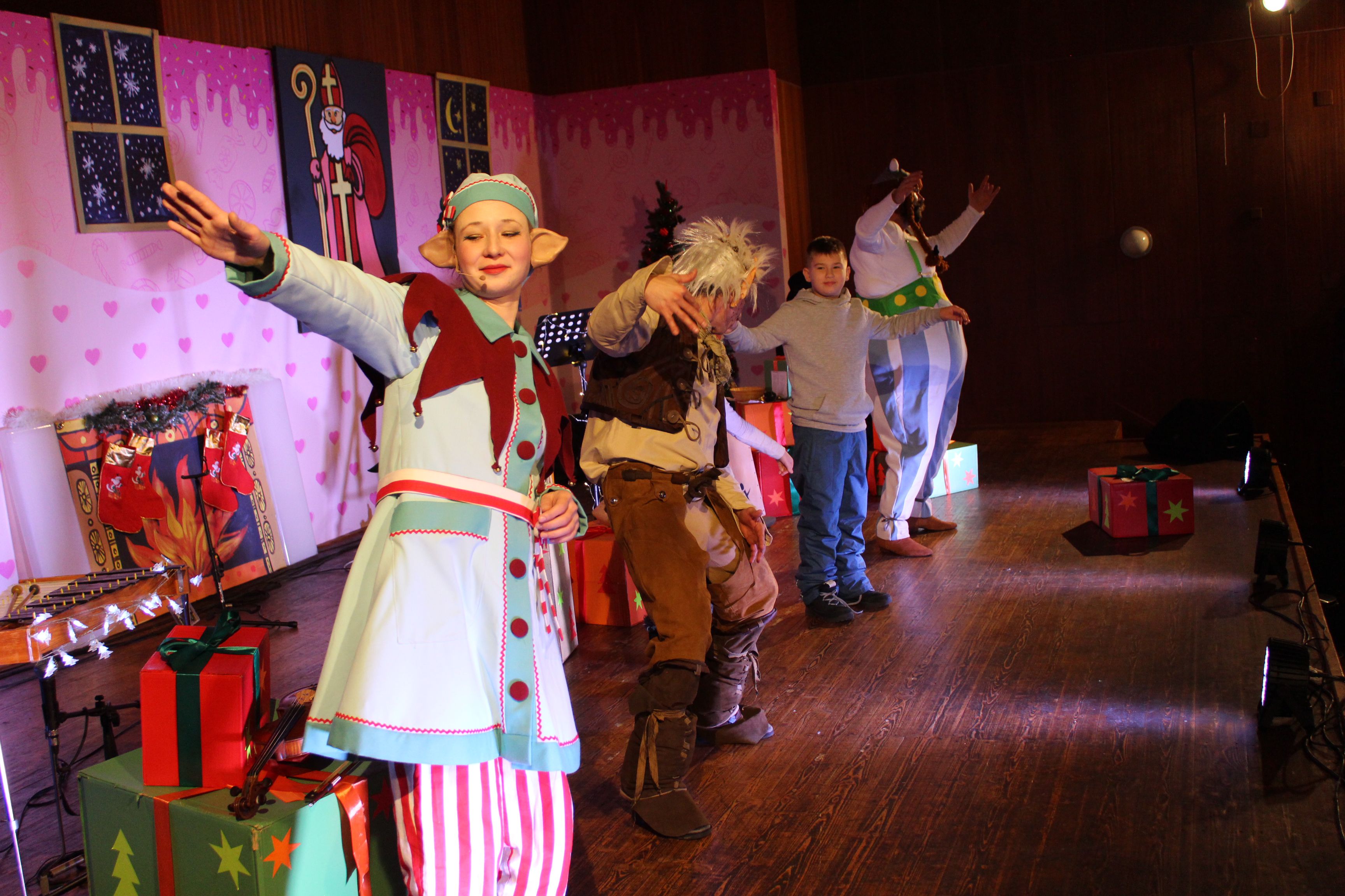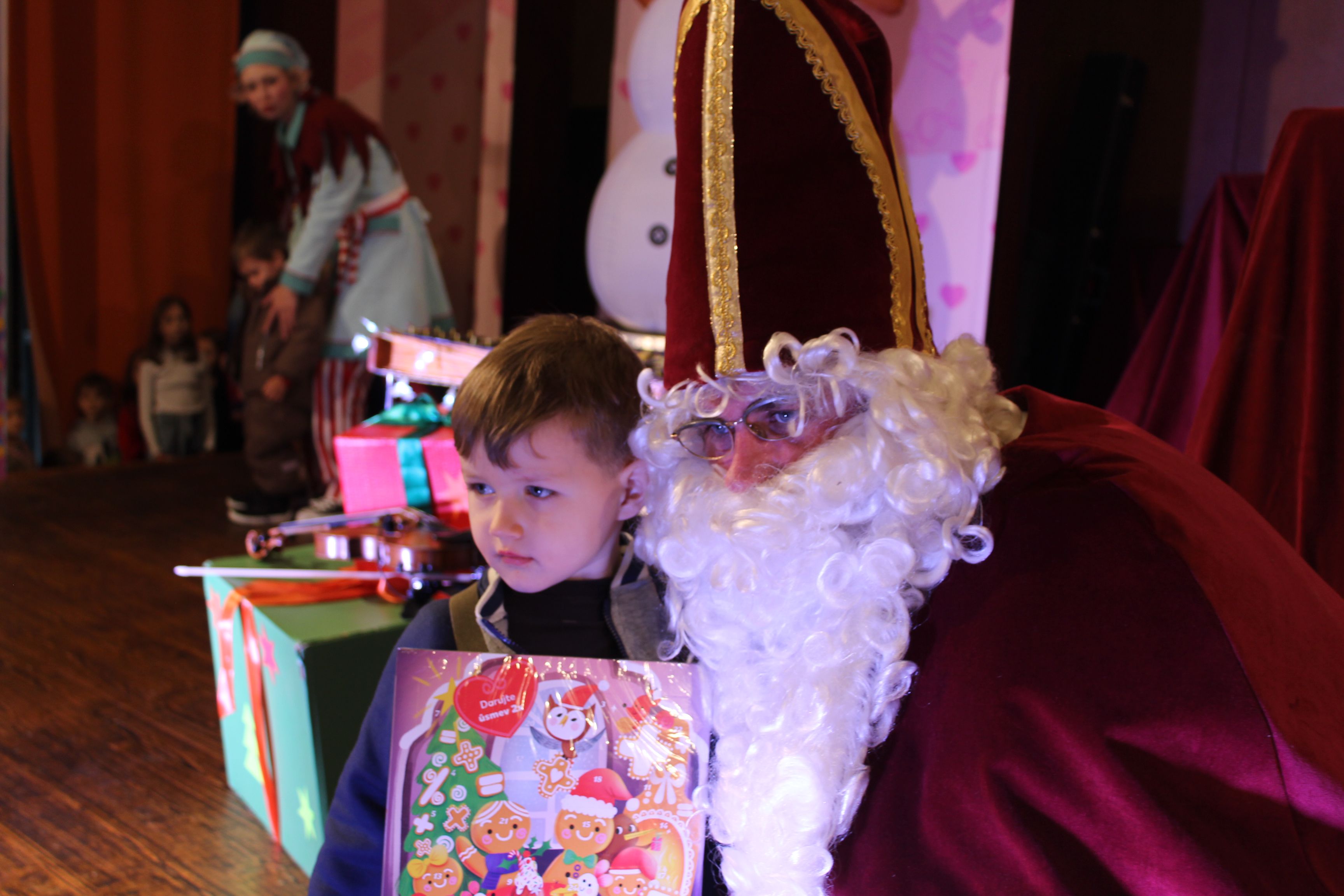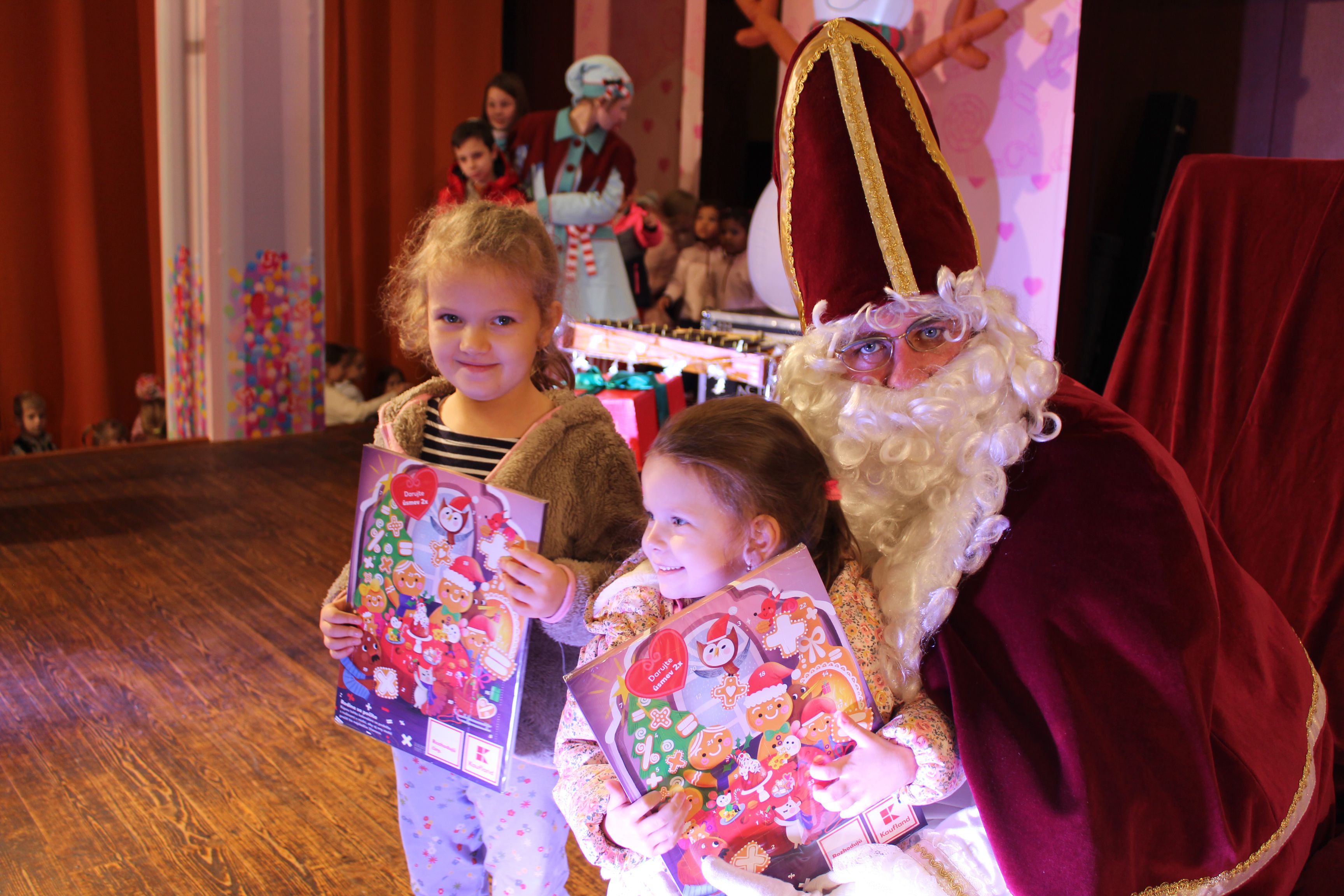 O 16.00 Mikuláš s primátorom mesta PhDr. Marekom Čižmárom rozsvietili krásny vianočný stromček a všetky deti pozvali do estrádnej sály na predstavenie Arthurovej kapely, v ktorej hrali a spievali postavičky z rozprávok: hrdinovia Obelix, Arthur, Elfka Idril, Ernesto de la Cruz a Maestro Frankanella.