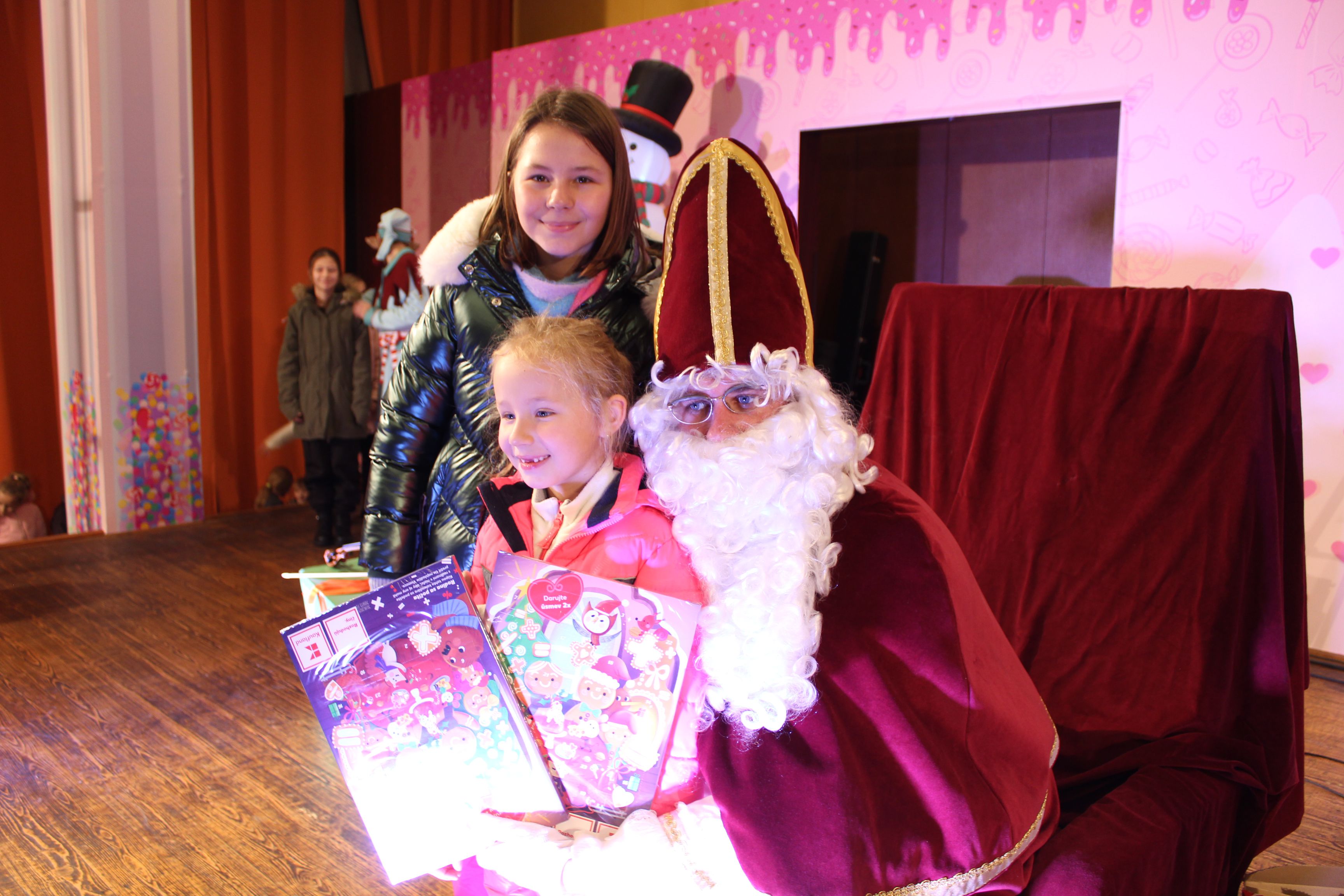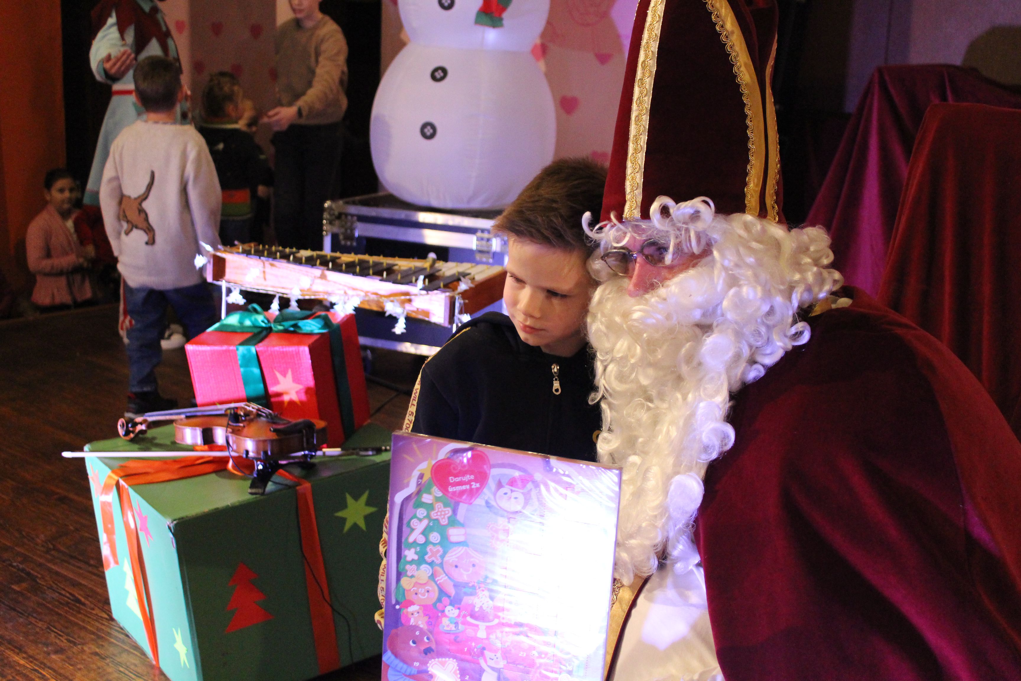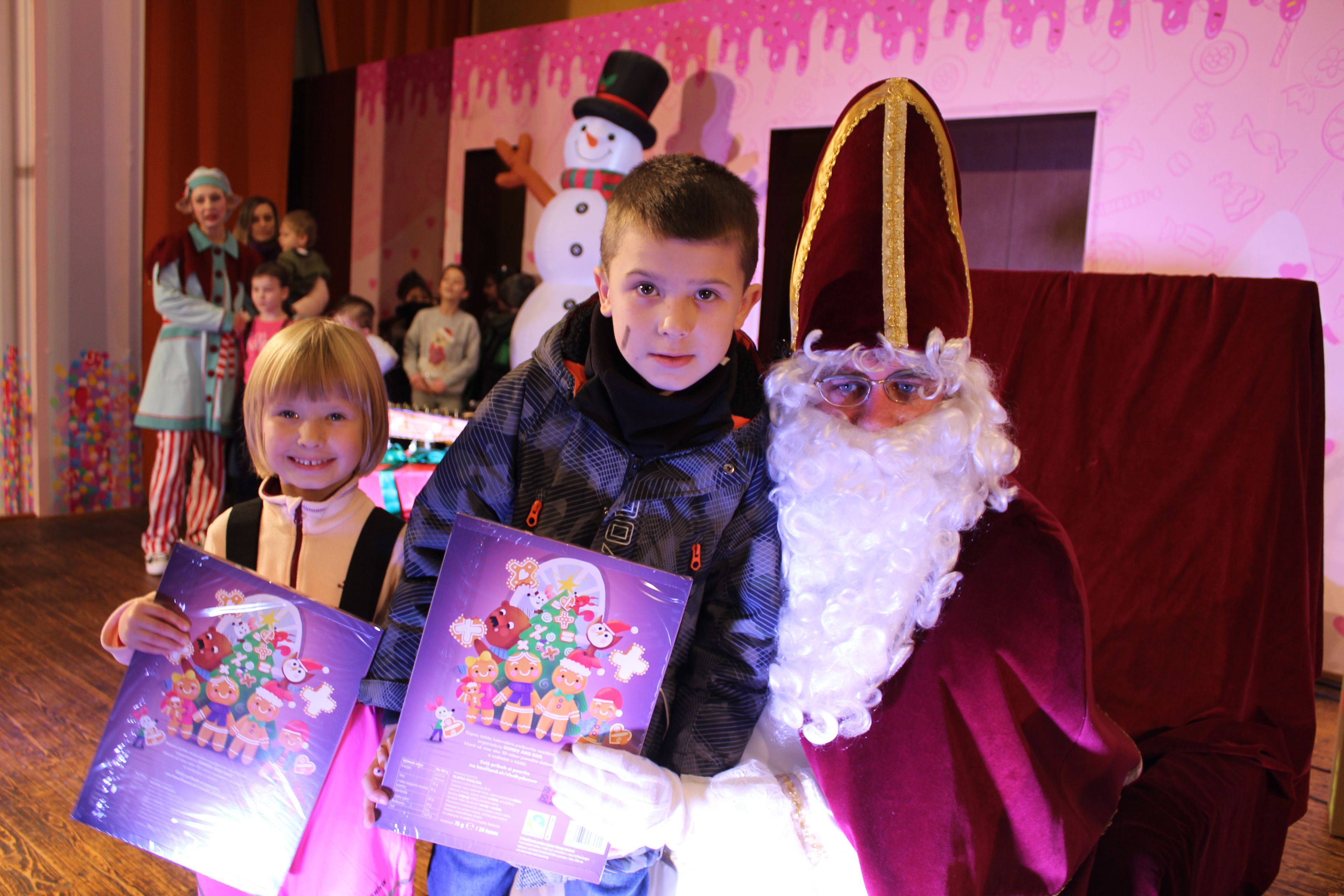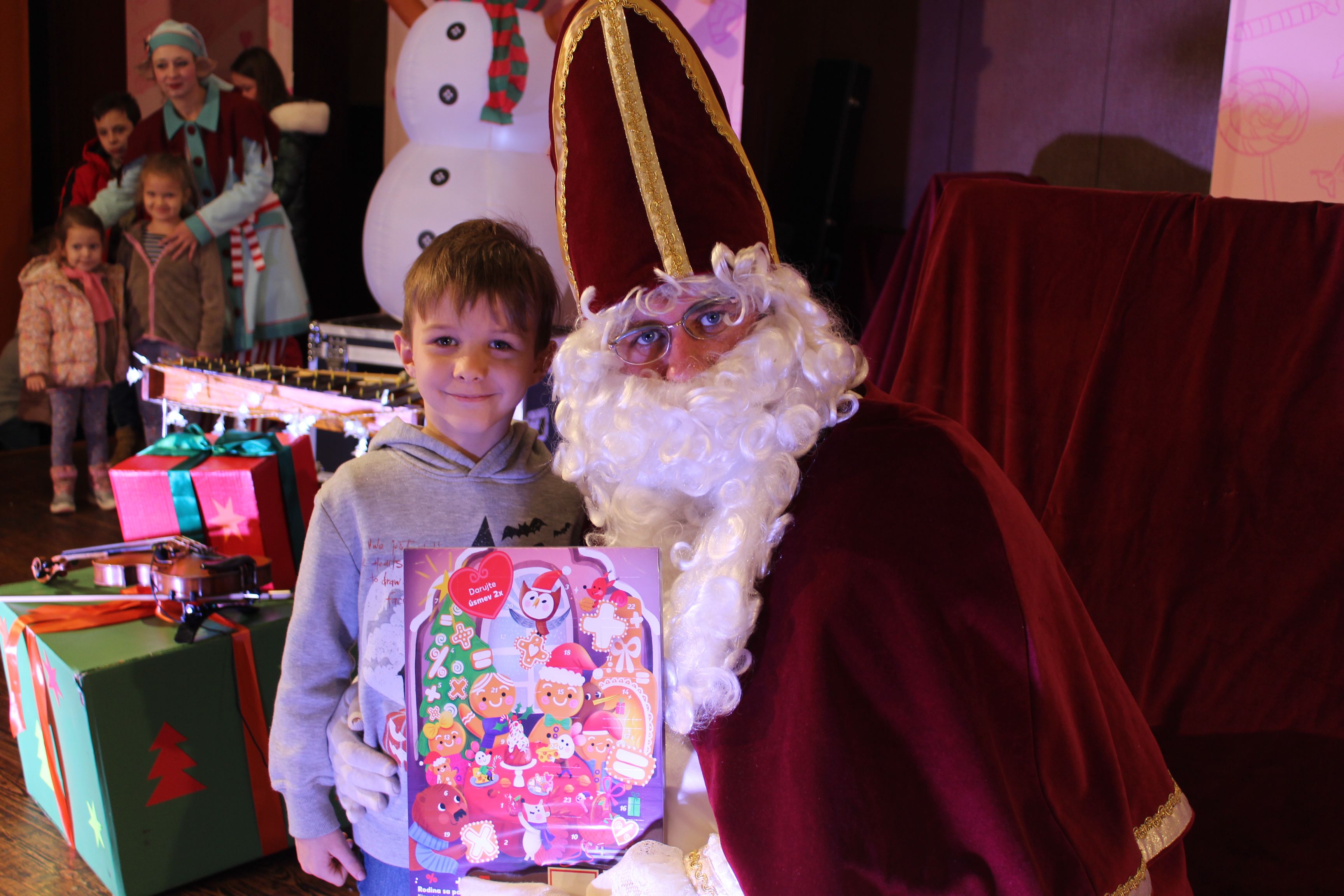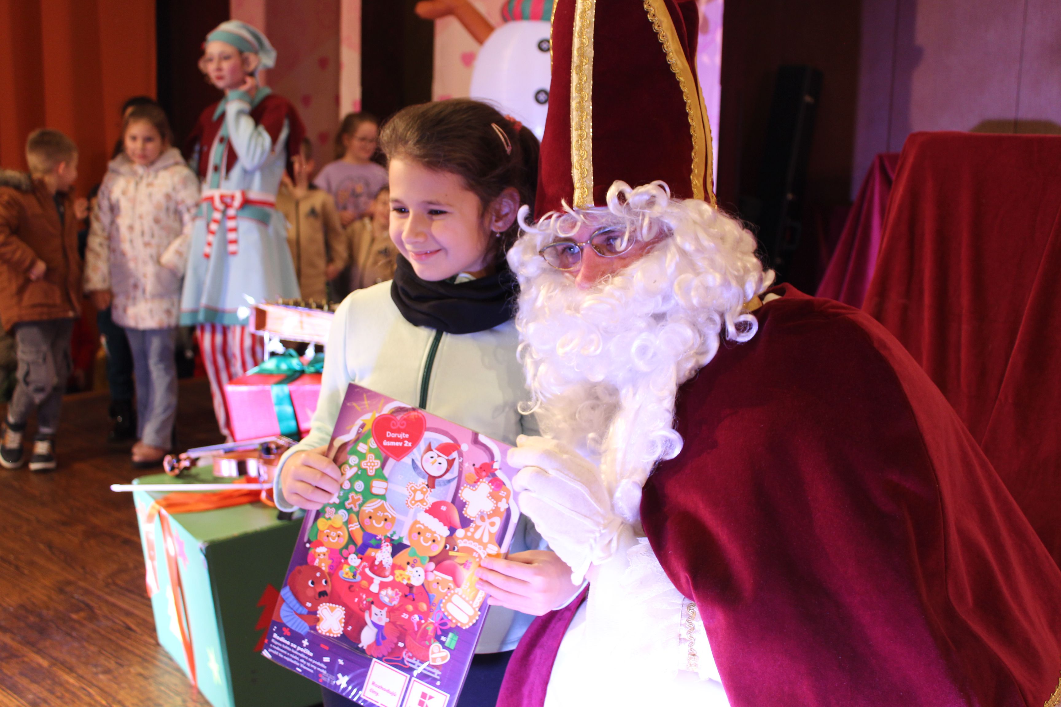 O 16.00 Mikuláš s primátorom mesta PhDr. Marekom Čižmárom rozsvietili krásny vianočný stromček a všetky deti pozvali do estrádnej sály na predstavenie Arthurovej kapely, v ktorej hrali a spievali postavičky z rozprávok: hrdinovia Obelix, Arthur, Elfka Idril, Ernesto de la Cruz a Maestro Frankanella.