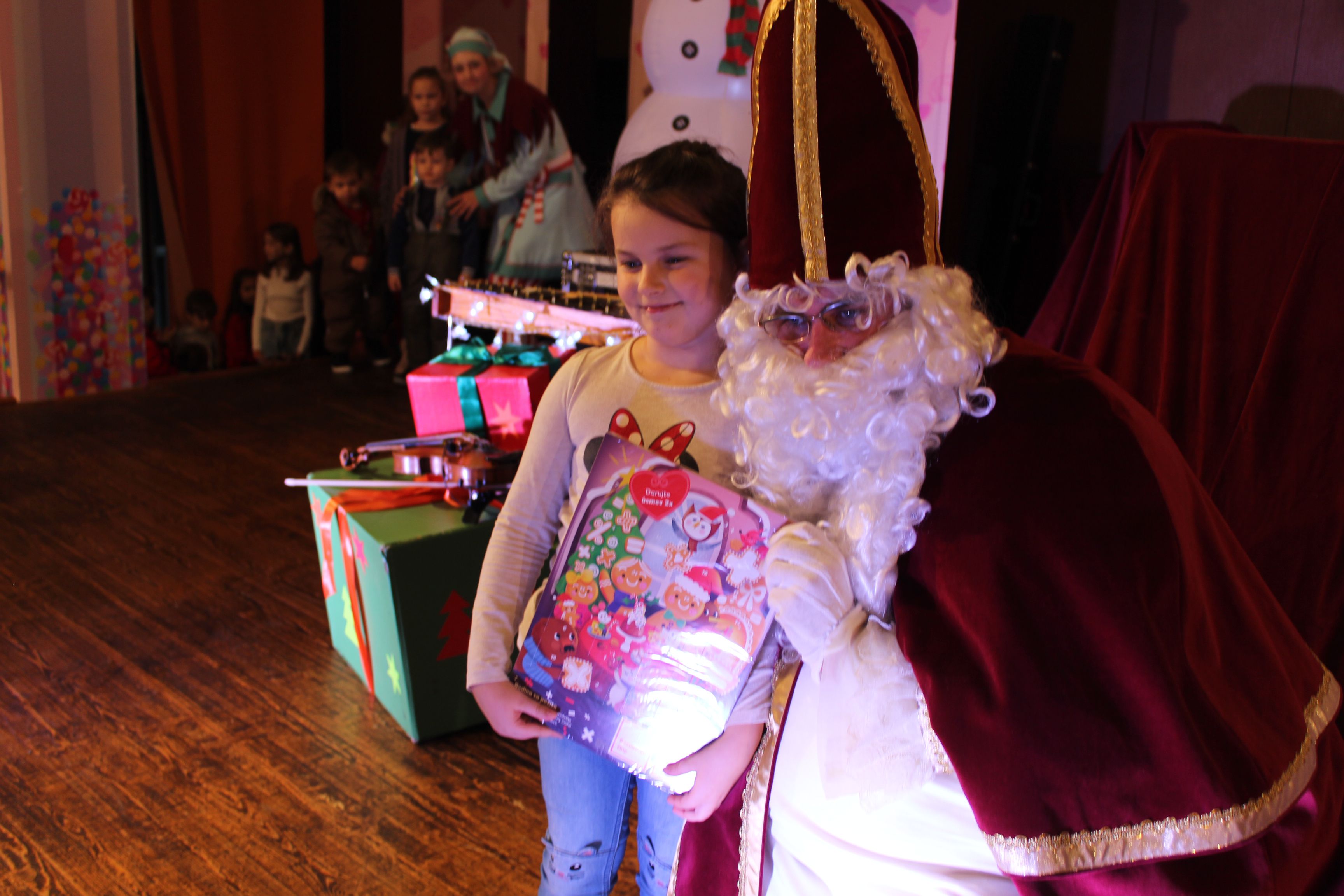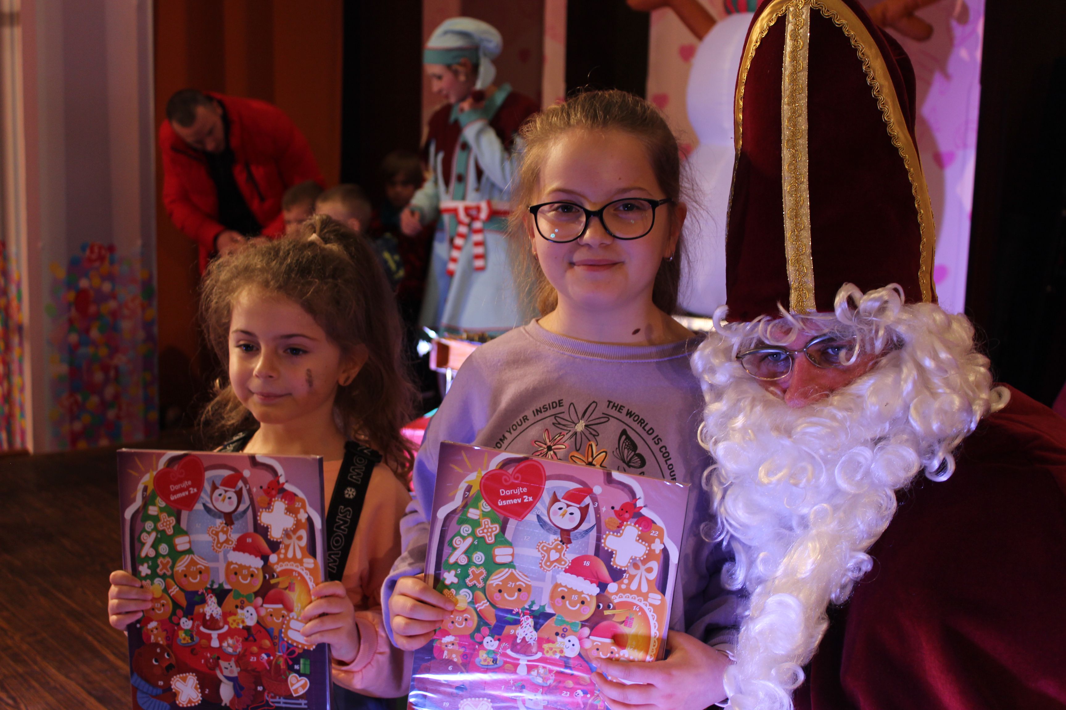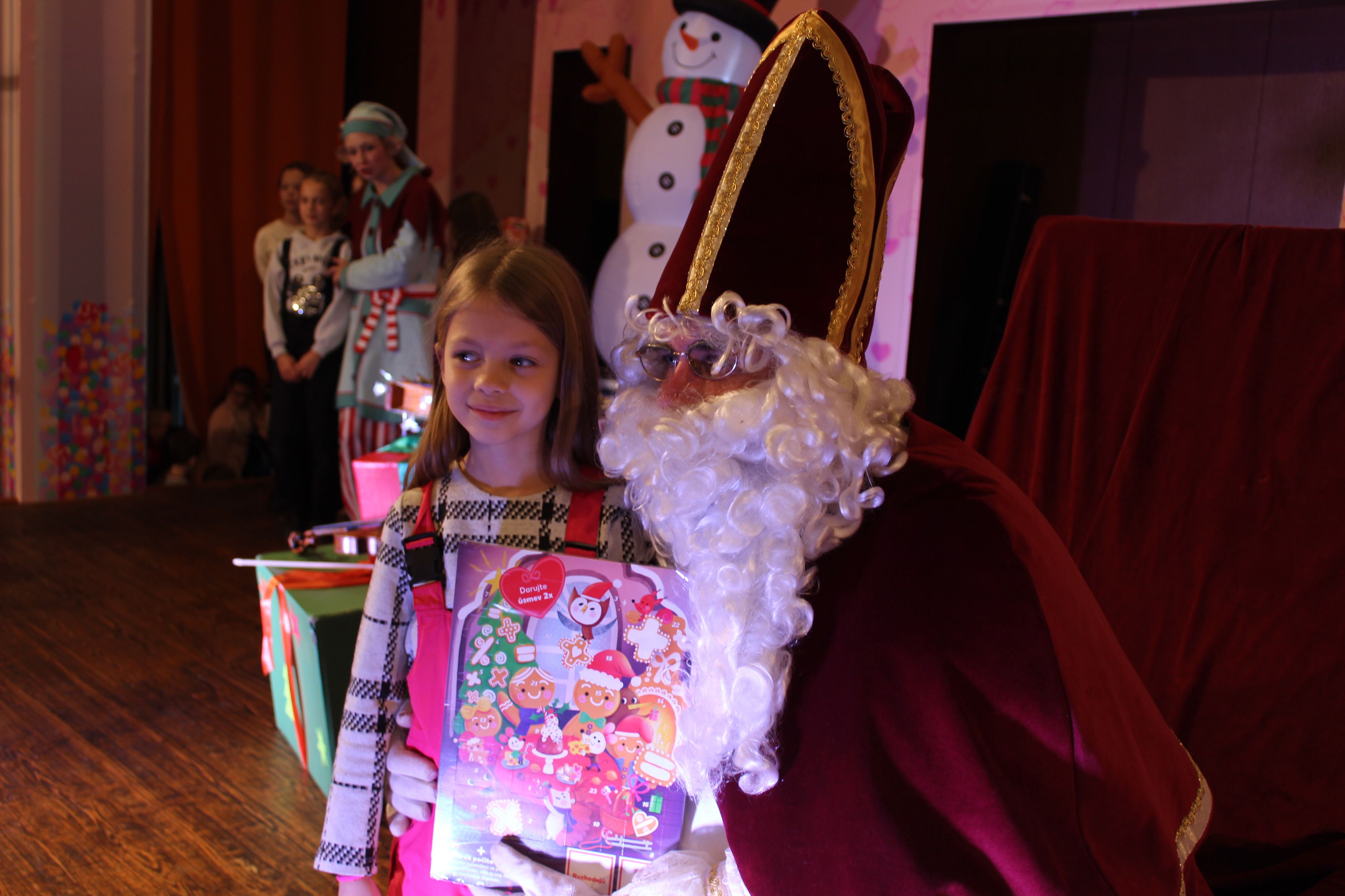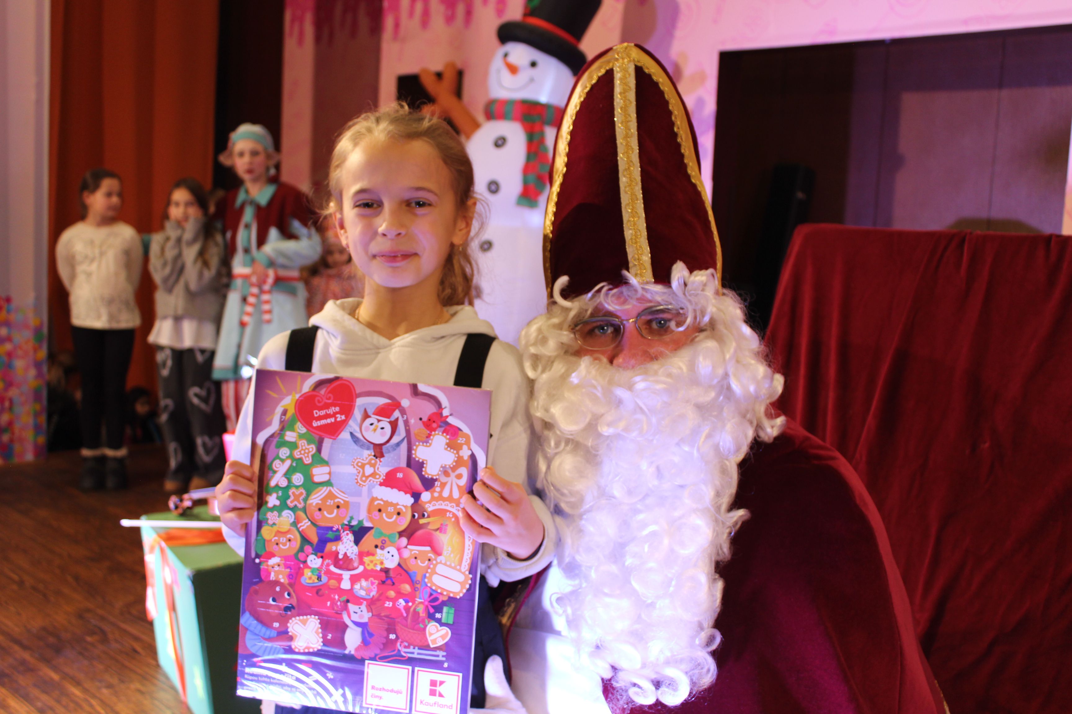 O 16.00 Mikuláš s primátorom mesta PhDr. Marekom Čižmárom rozsvietili krásny vianočný stromček a všetky deti pozvali do estrádnej sály na predstavenie Arthurovej kapely, v ktorej hrali a spievali postavičky z rozprávok: hrdinovia Obelix, Arthur, Elfka Idril, Ernesto de la Cruz a Maestro Frankanella.