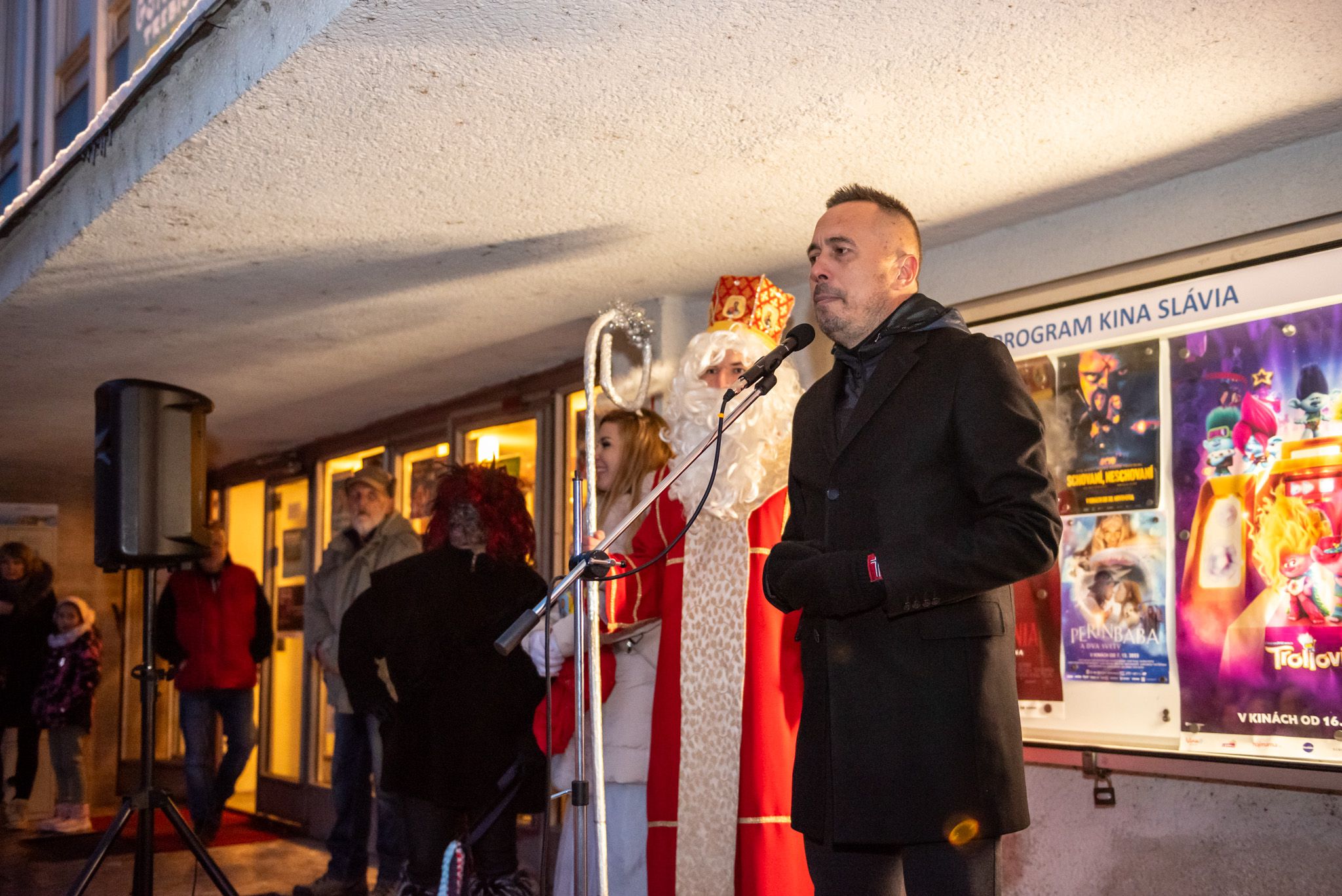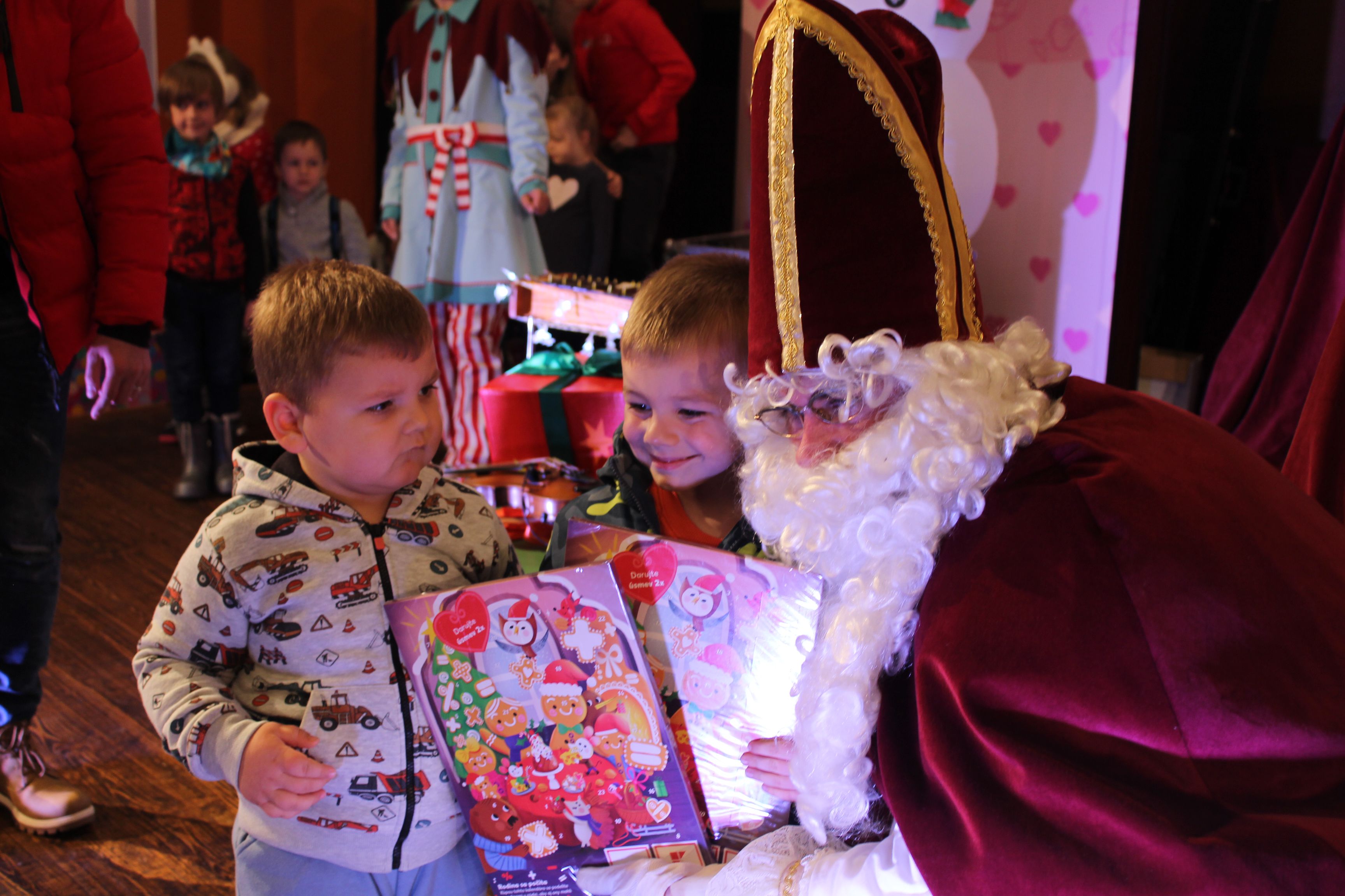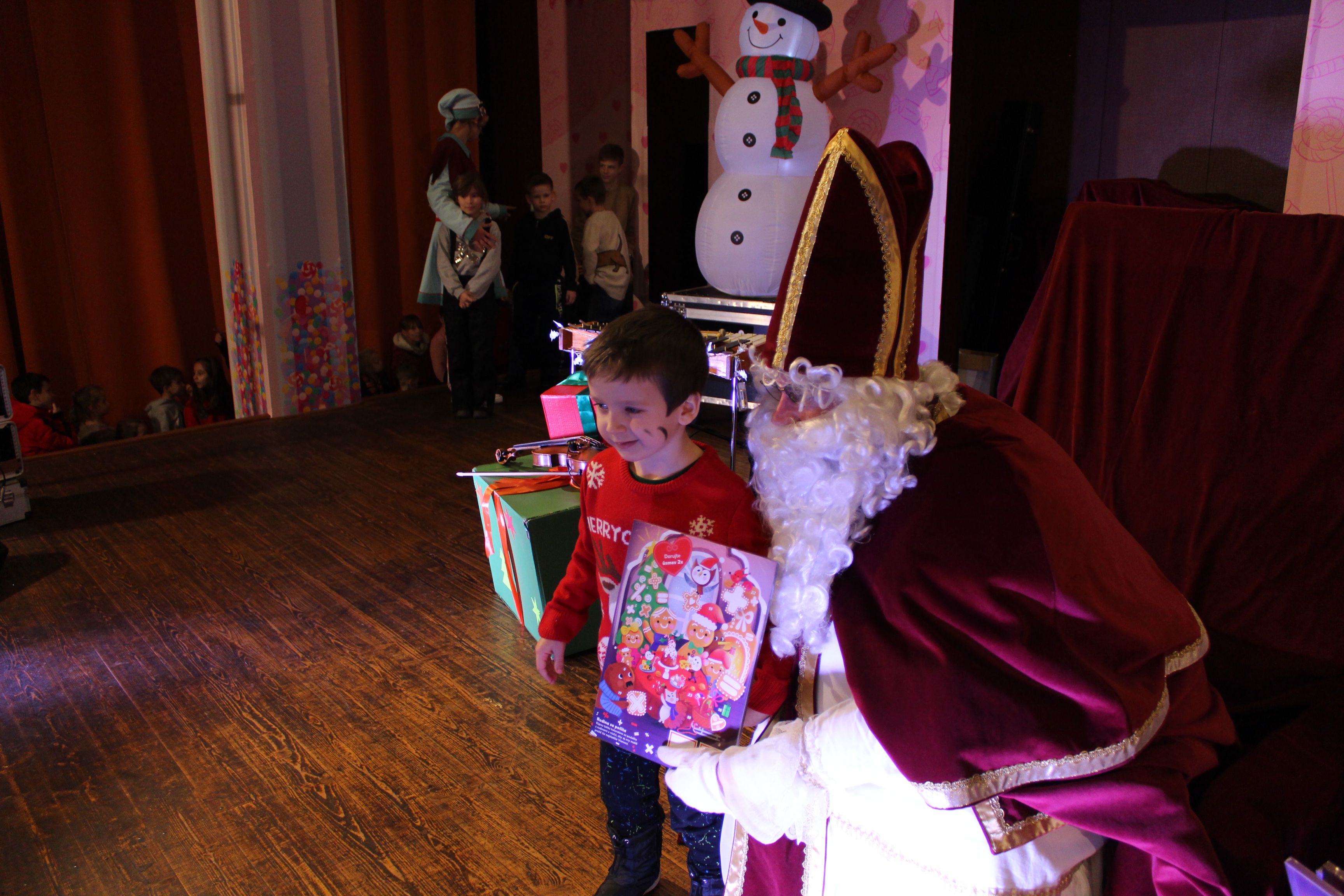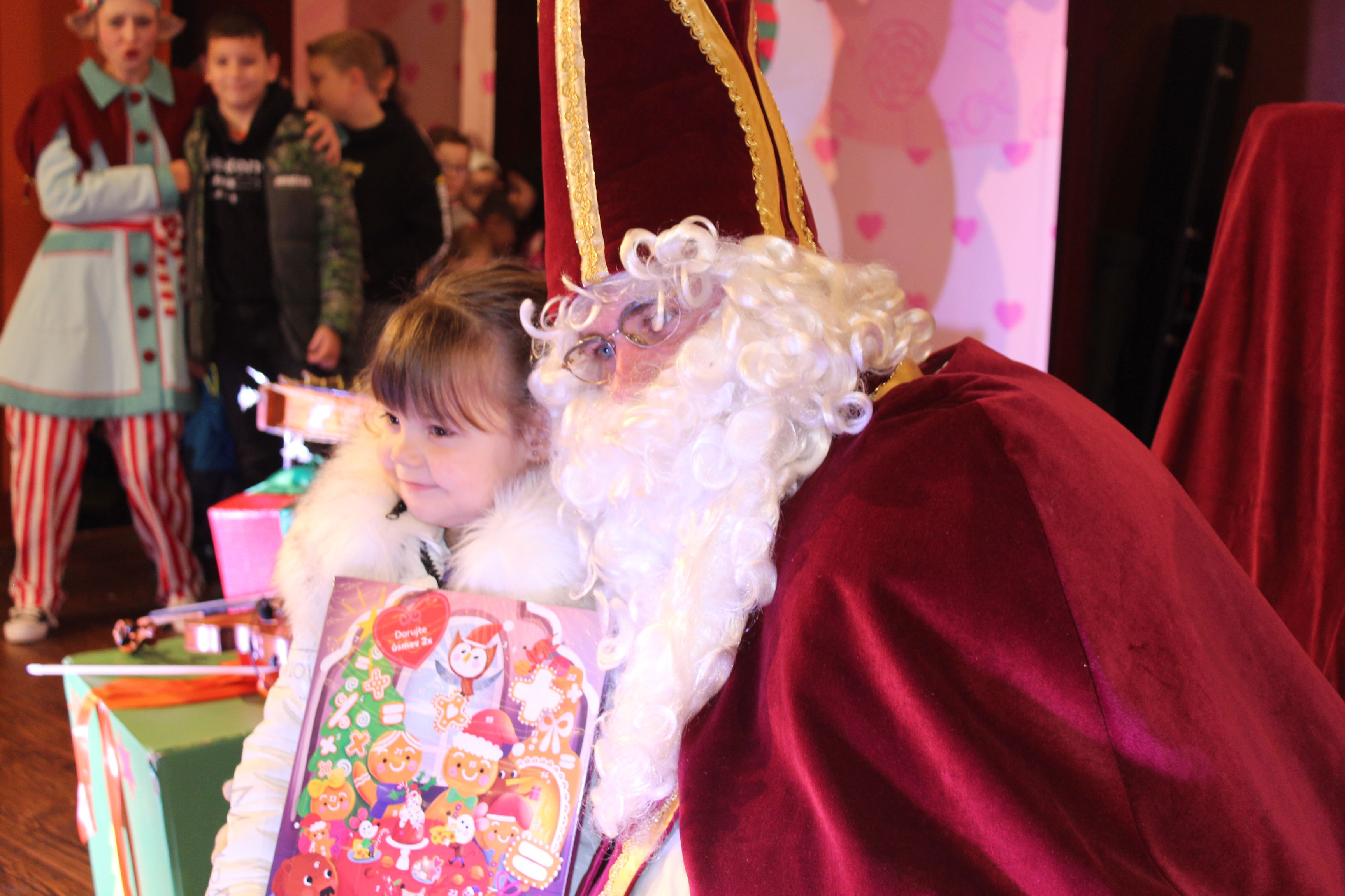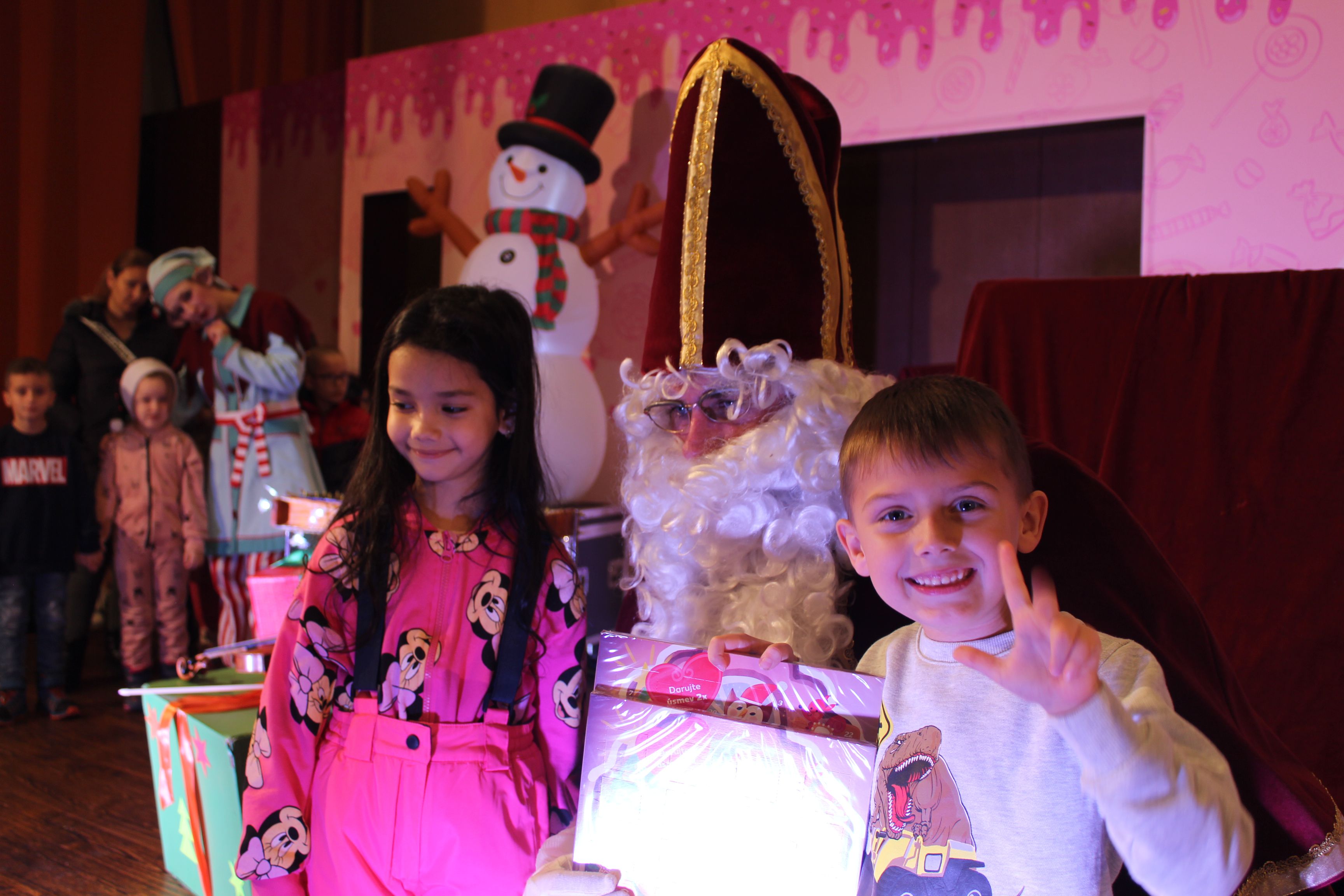 O 16.00 Mikuláš s primátorom mesta PhDr. Marekom Čižmárom rozsvietili krásny vianočný stromček a všetky deti pozvali do estrádnej sály na predstavenie Arthurovej kapely, v ktorej hrali a spievali postavičky z rozprávok: hrdinovia Obelix, Arthur, Elfka Idril, Ernesto de la Cruz a Maestro Frankanella.