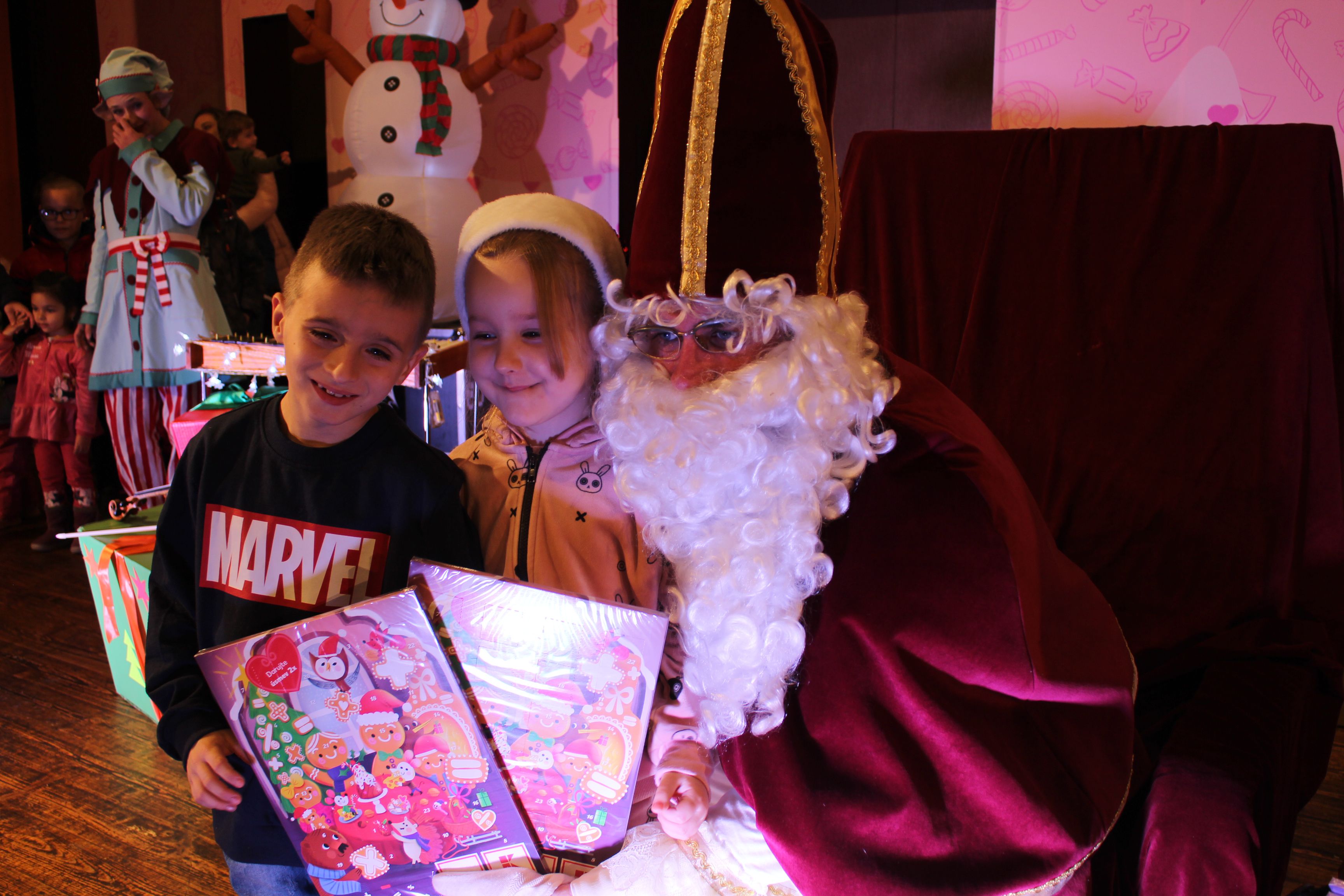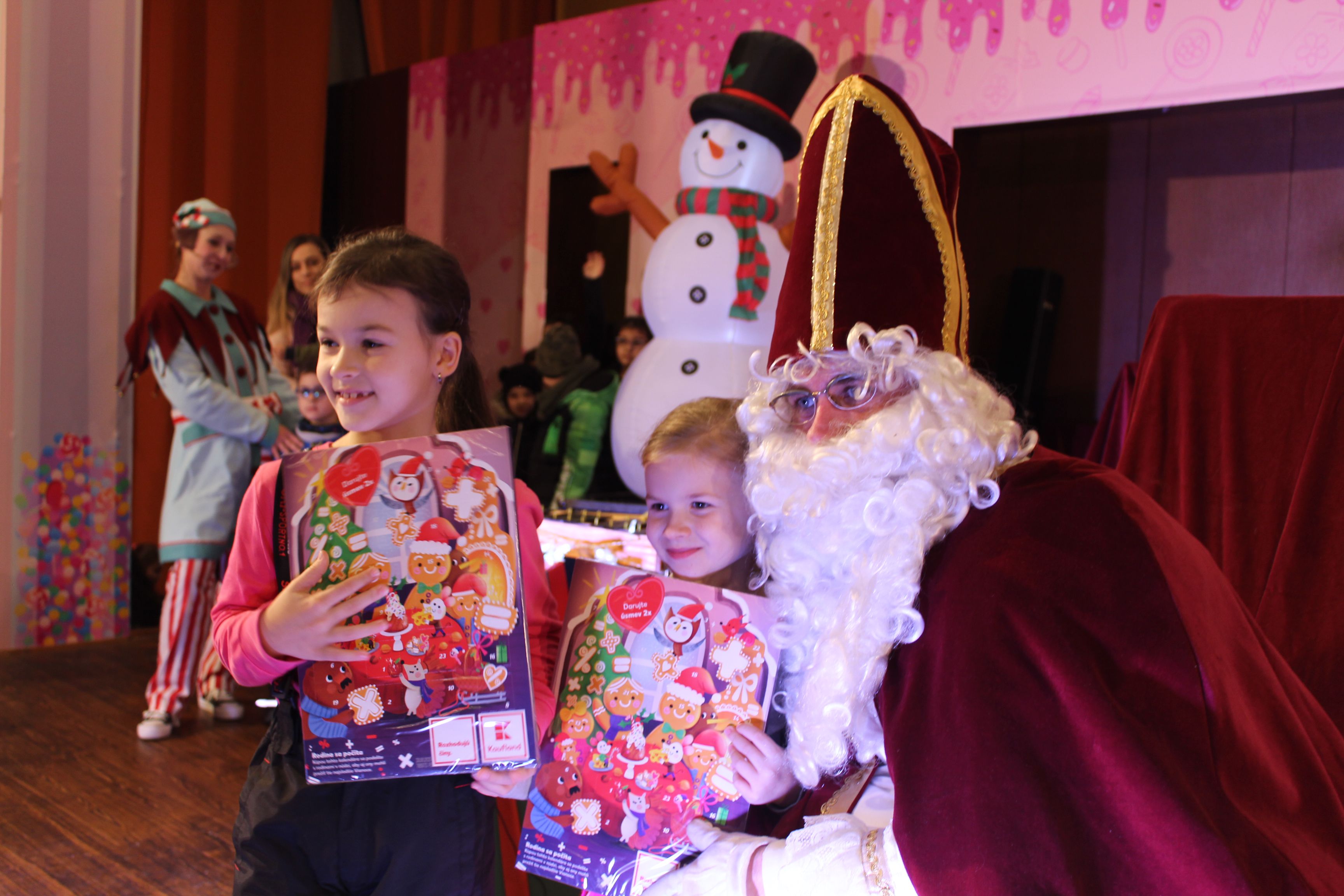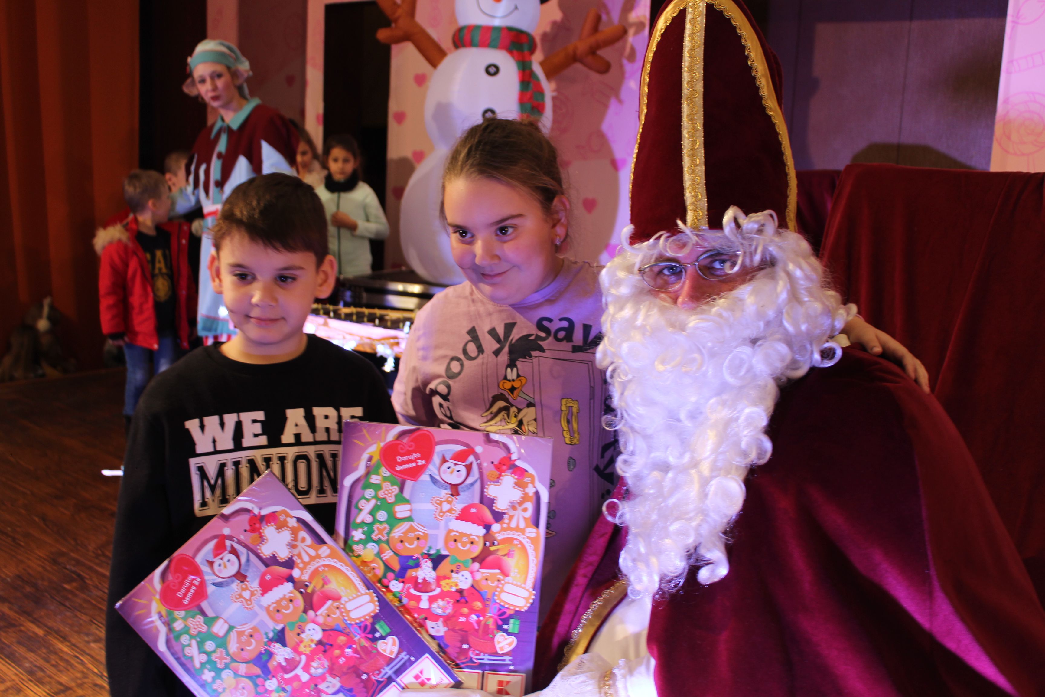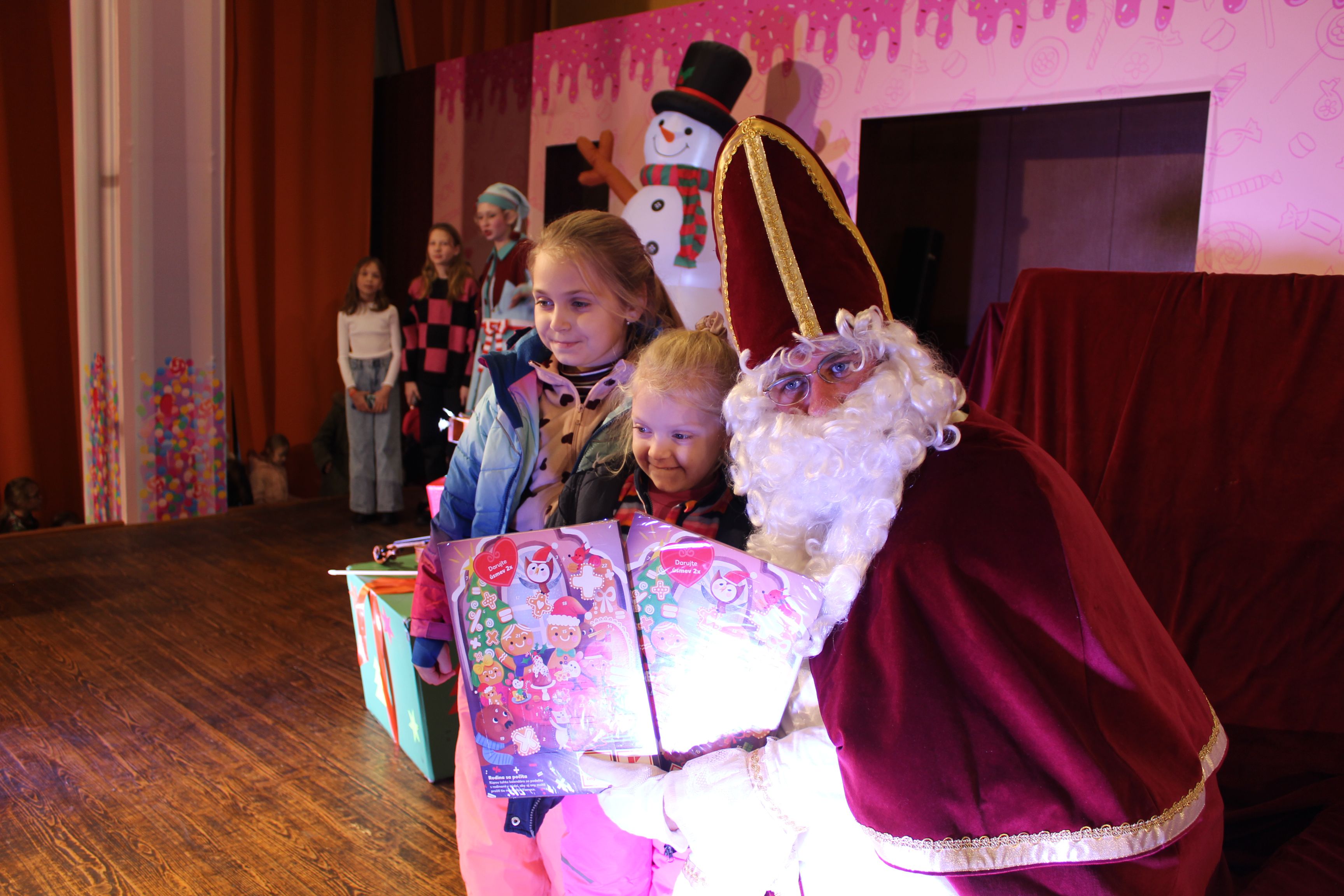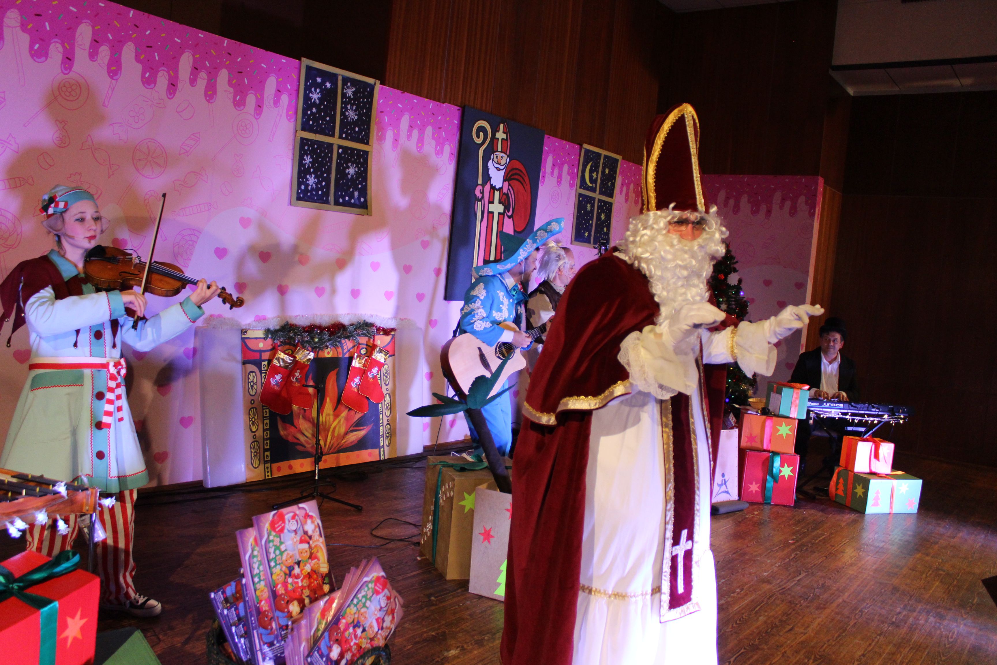 O 16.00 Mikuláš s primátorom mesta PhDr. Marekom Čižmárom rozsvietili krásny vianočný stromček a všetky deti pozvali do estrádnej sály na predstavenie Arthurovej kapely, v ktorej hrali a spievali postavičky z rozprávok: hrdinovia Obelix, Arthur, Elfka Idril, Ernesto de la Cruz a Maestro Frankanella.