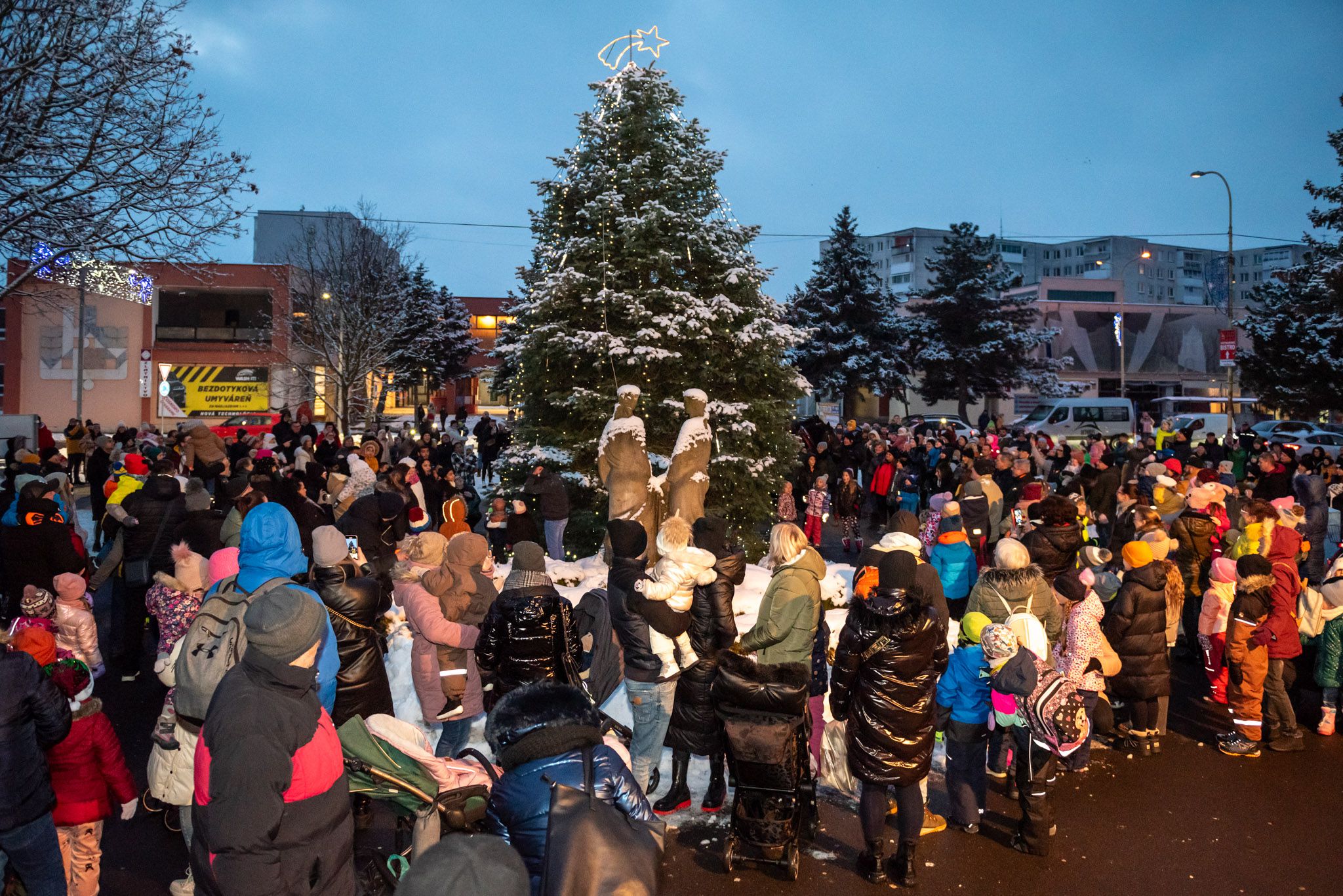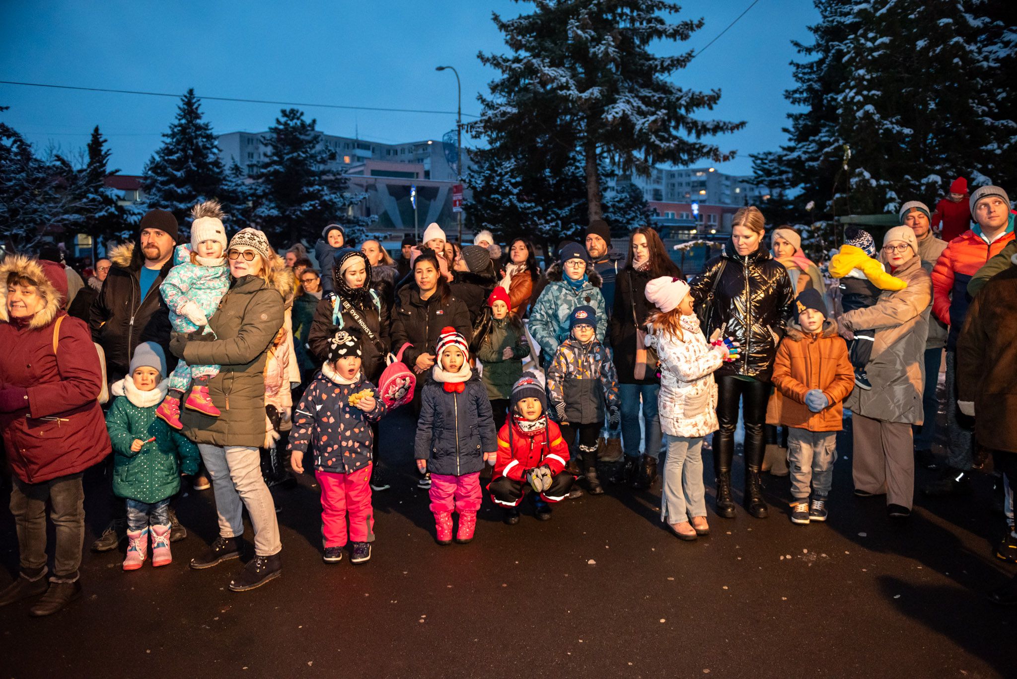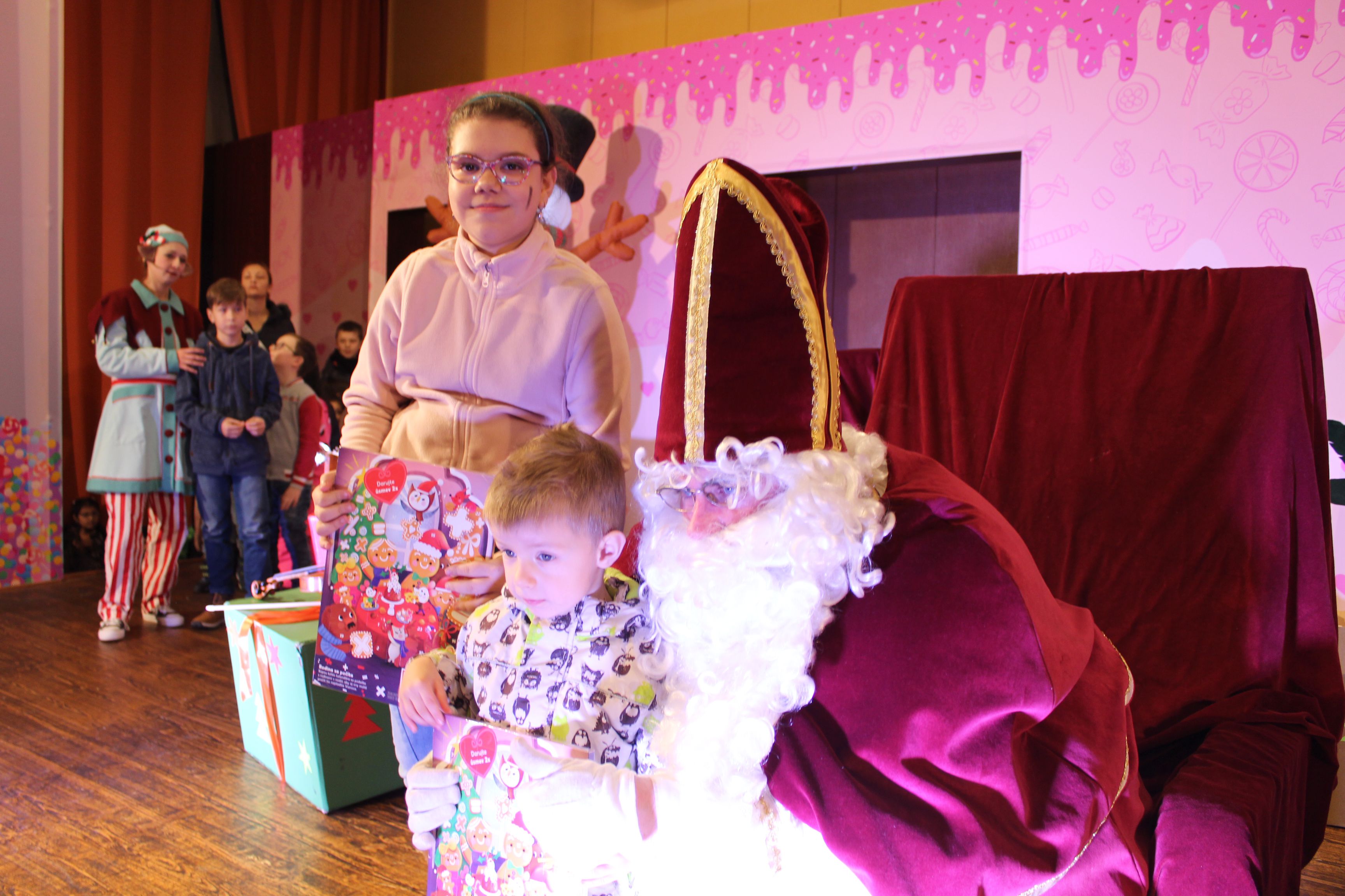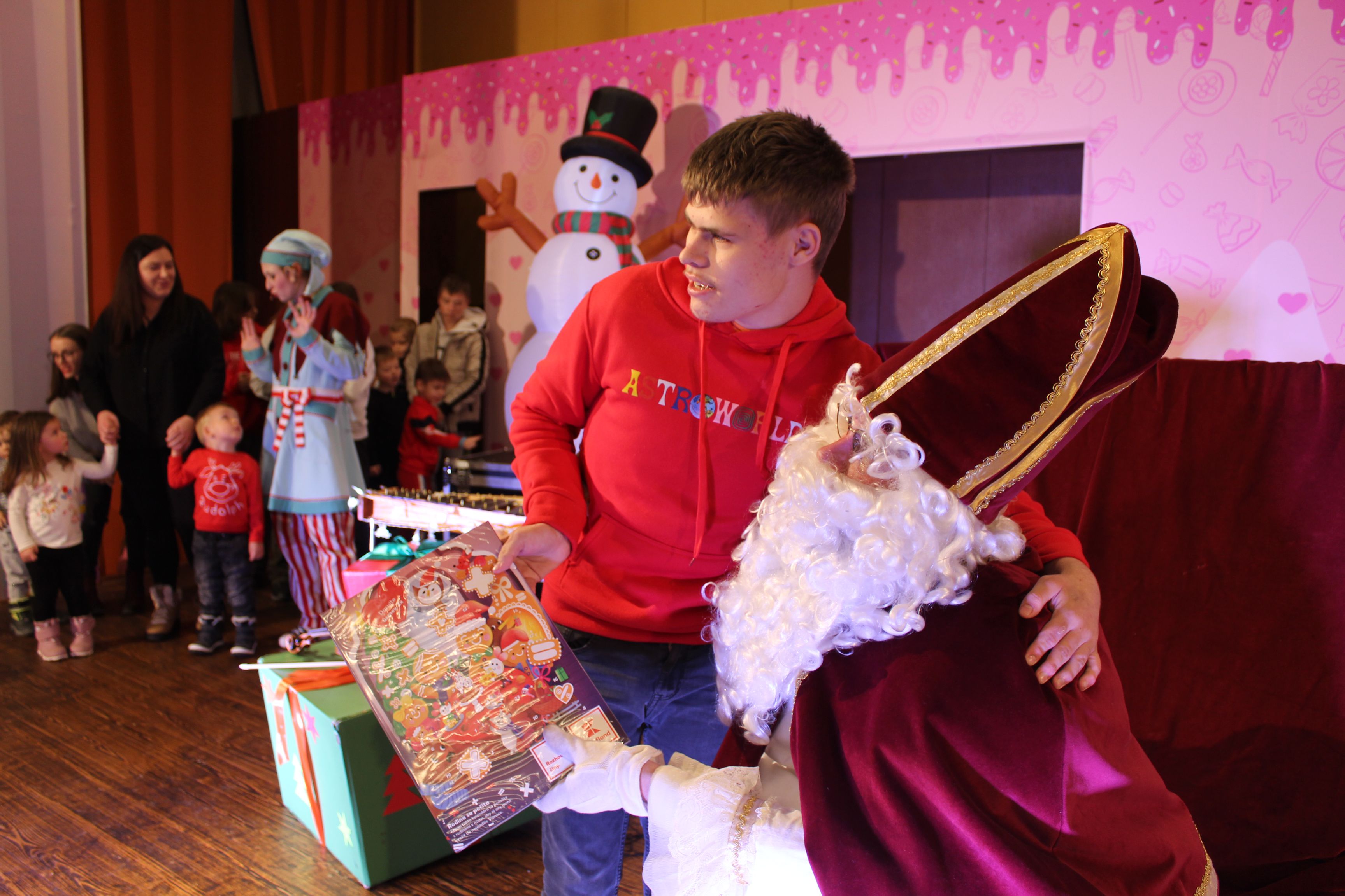 O 16.00 Mikuláš s primátorom mesta PhDr. Marekom Čižmárom rozsvietili krásny vianočný stromček a všetky deti pozvali do estrádnej sály na predstavenie Arthurovej kapely, v ktorej hrali a spievali postavičky z rozprávok: hrdinovia Obelix, Arthur, Elfka Idril, Ernesto de la Cruz a Maestro Frankanella.