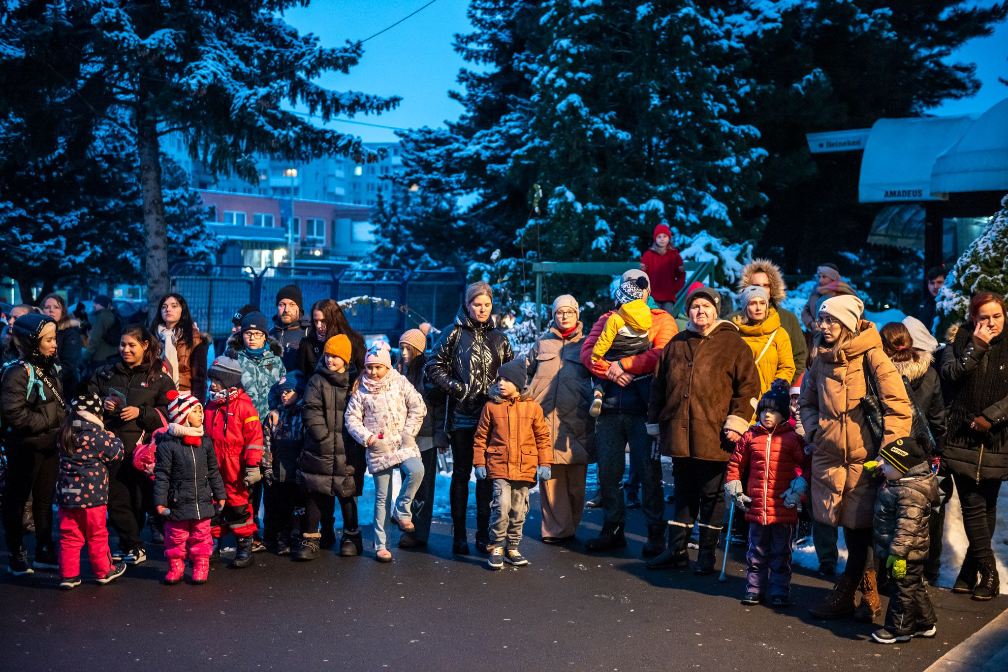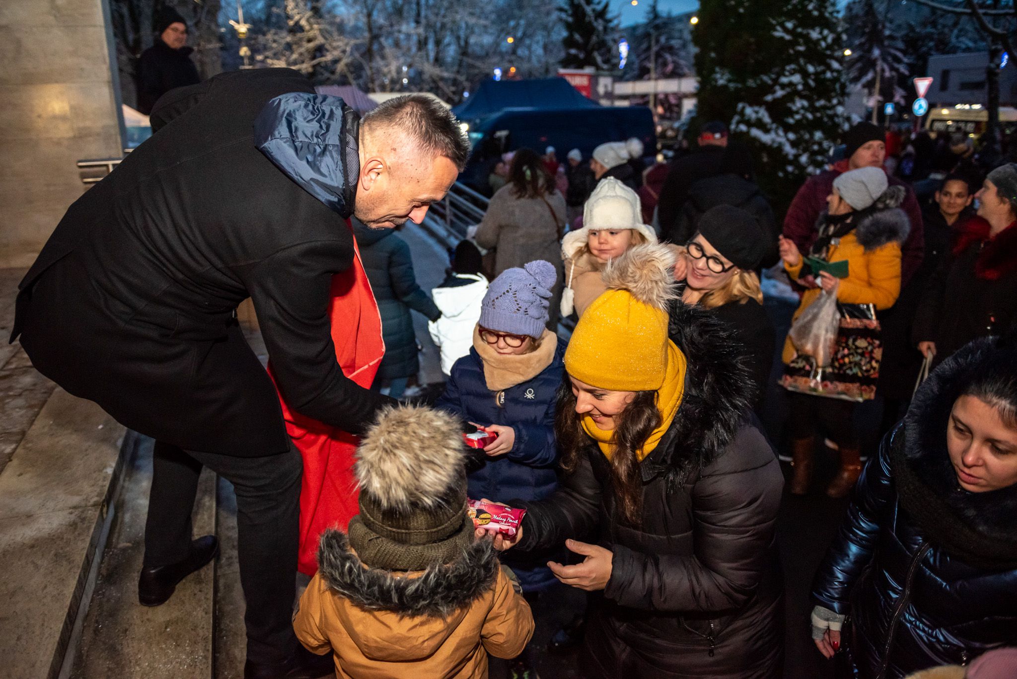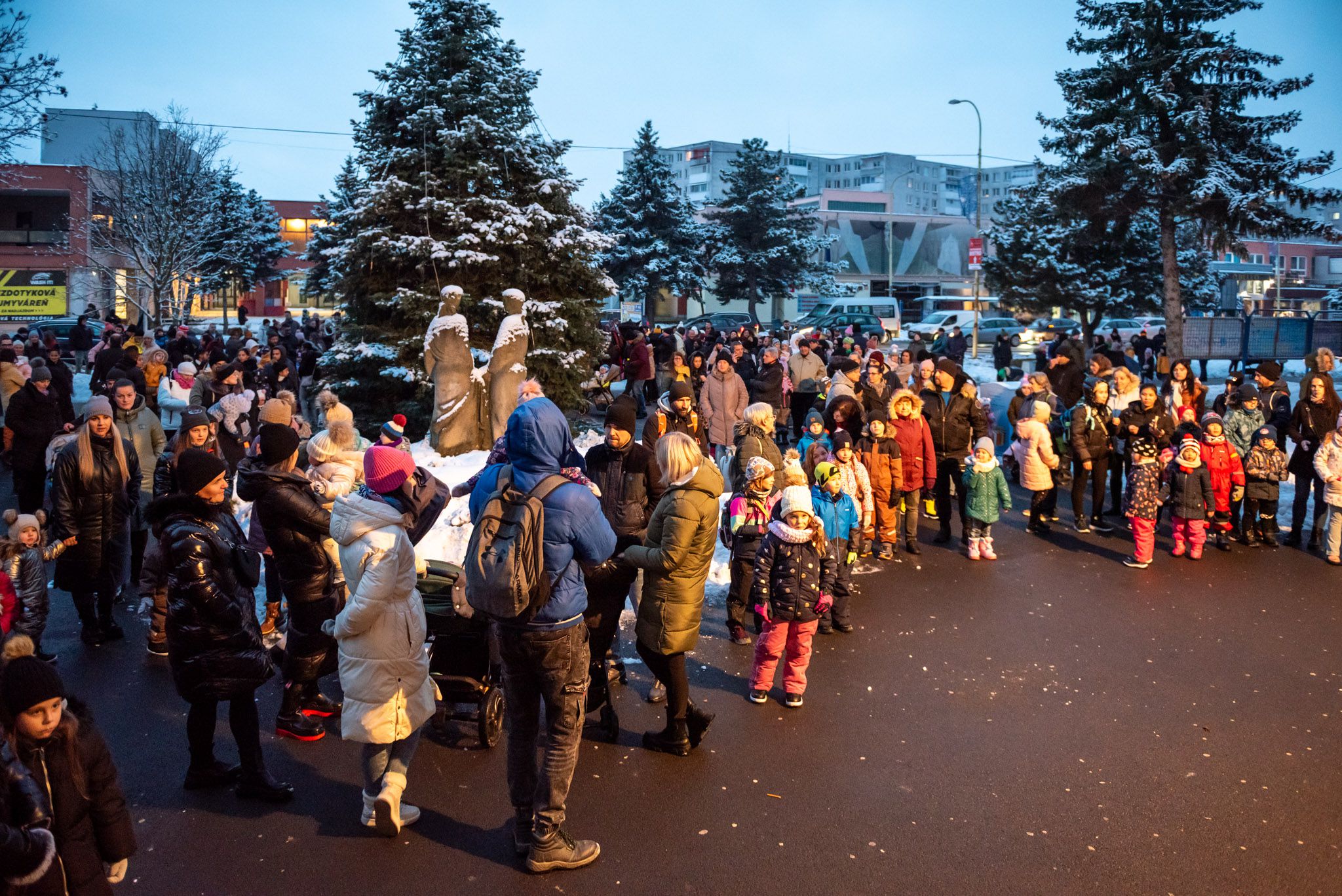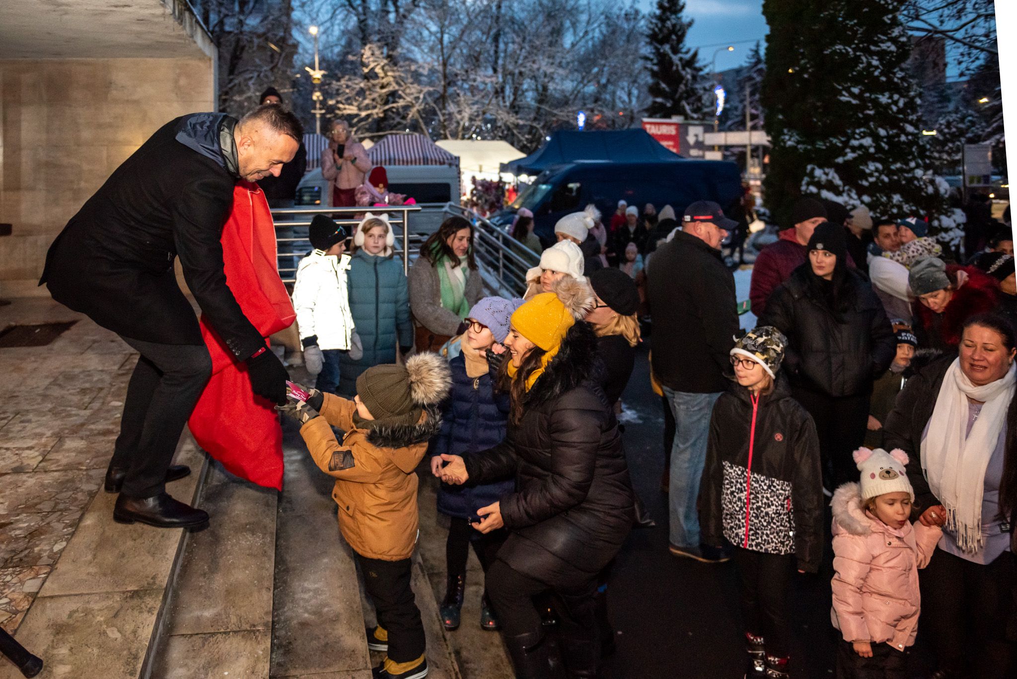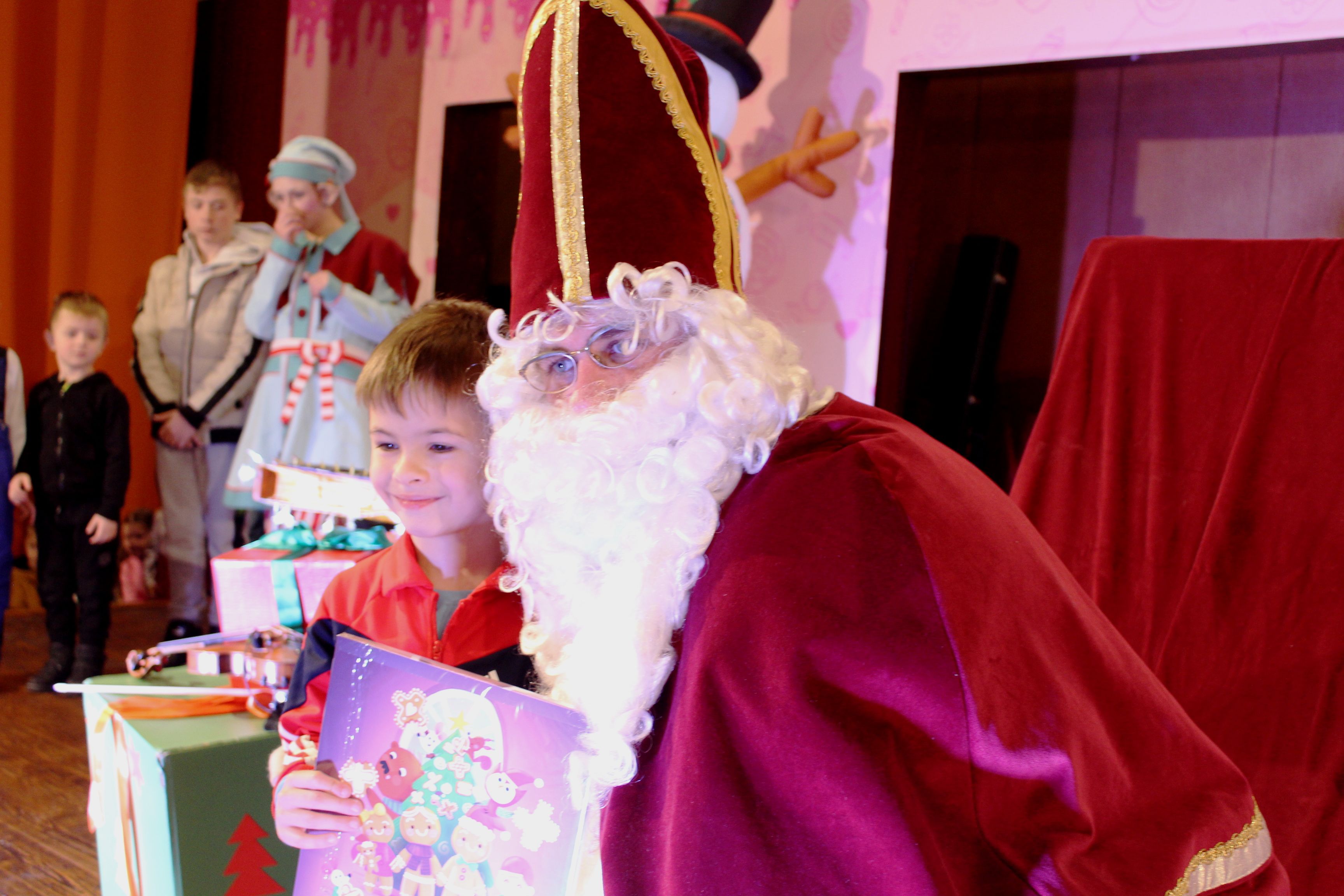 O 16.00 Mikuláš s primátorom mesta PhDr. Marekom Čižmárom rozsvietili krásny vianočný stromček a všetky deti pozvali do estrádnej sály na predstavenie Arthurovej kapely, v ktorej hrali a spievali postavičky z rozprávok: hrdinovia Obelix, Arthur, Elfka Idril, Ernesto de la Cruz a Maestro Frankanella.