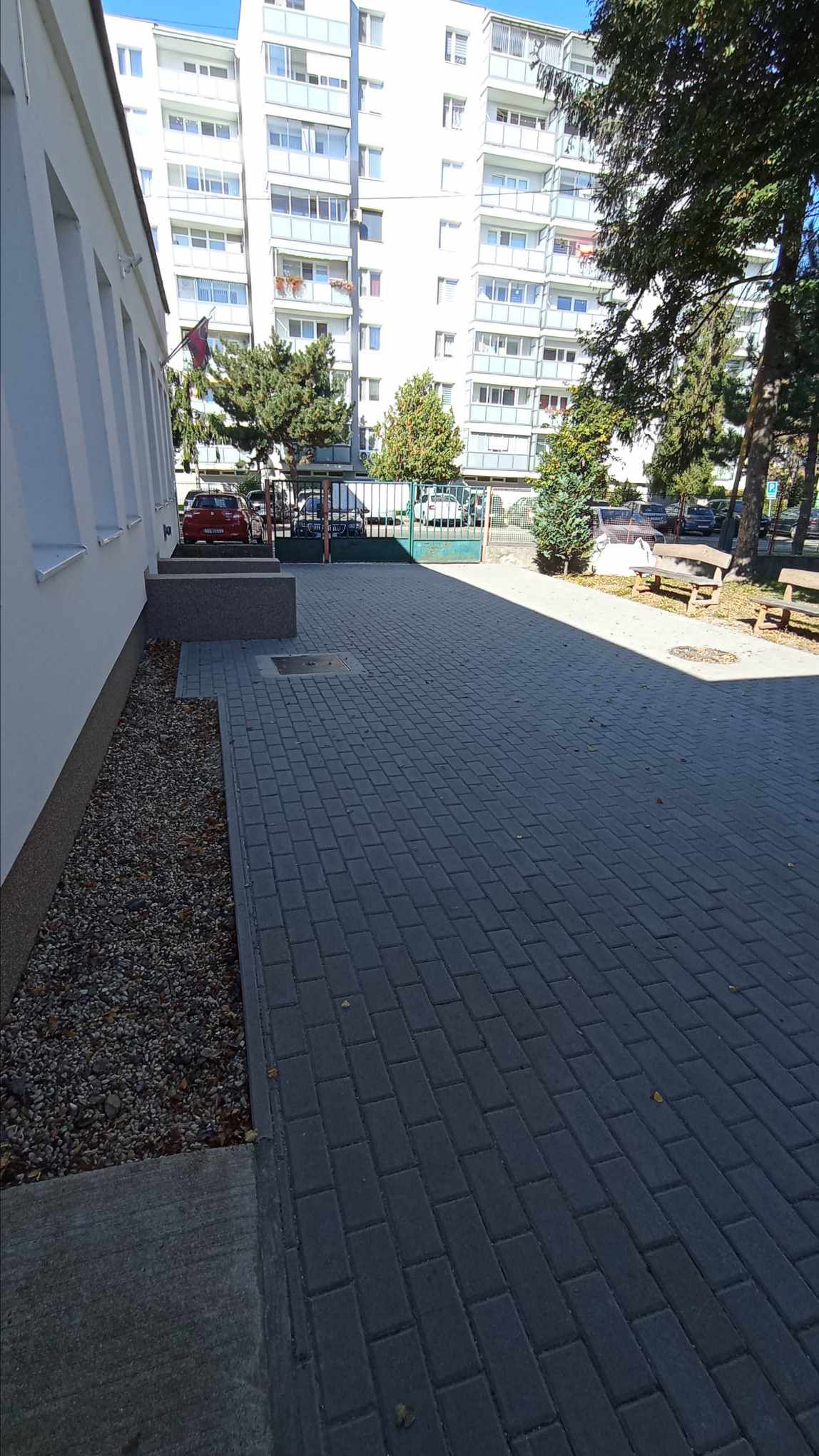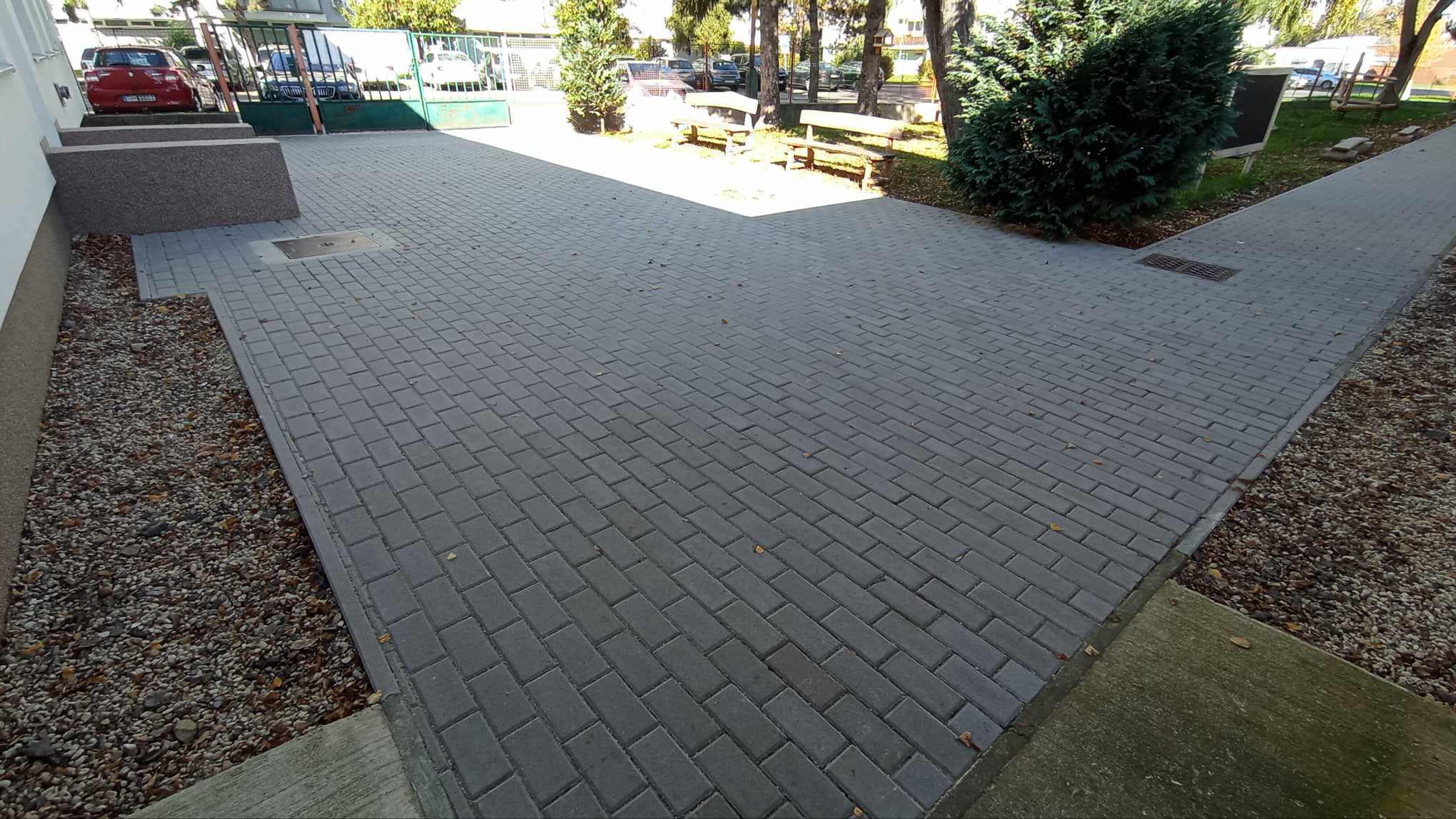 Nevyhovujúci, veľmi poškodený pôvodný asfaltový povrch chodníkových častí a spevnenej plochy pri vstupe do predškolského zariadenia odstránili a položili novú dlažbu, ktorá je krajšia nielen na pohľad, ale najmä funkčná a bezpečná pre všetkých, ktorí MŠ navštevujú.