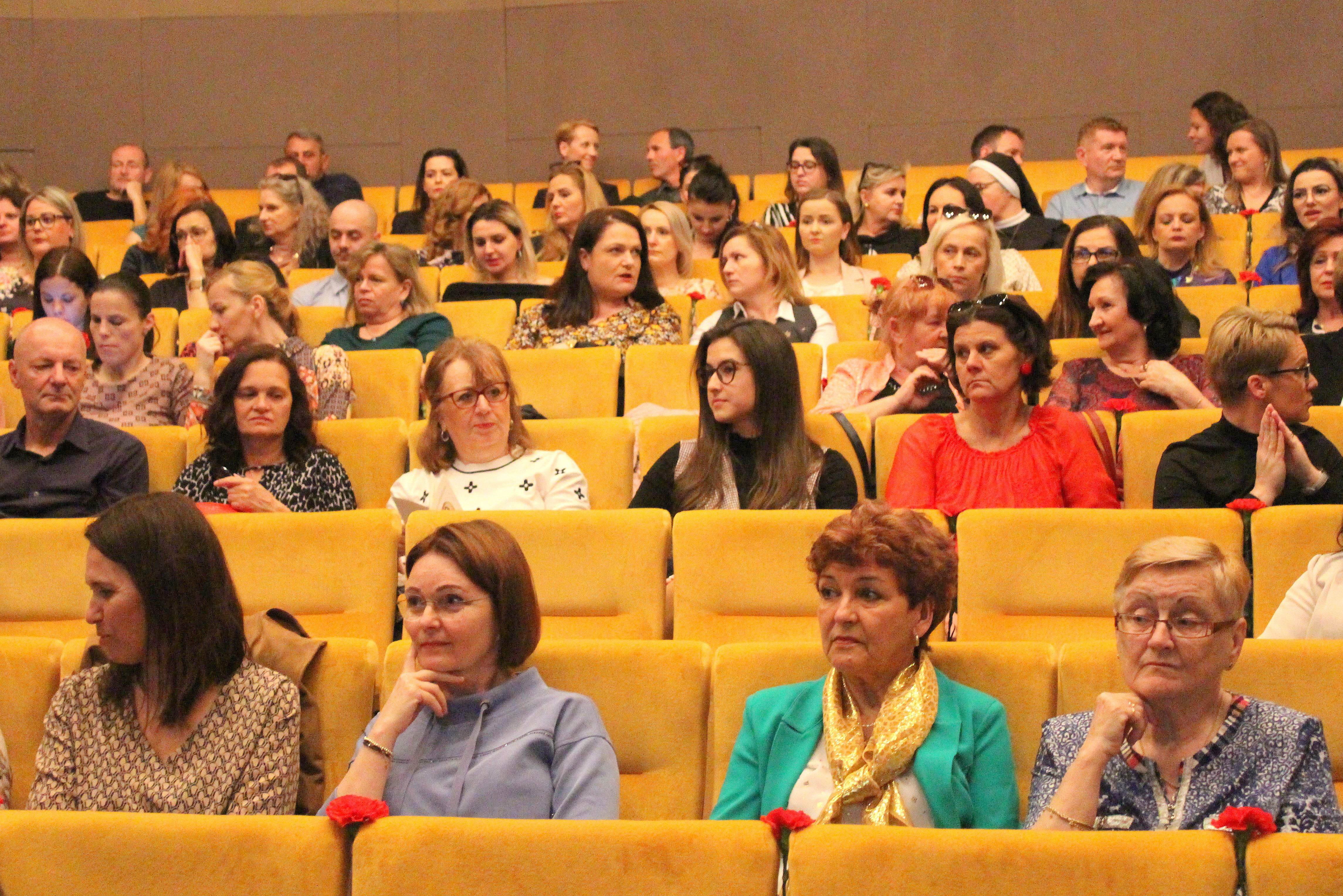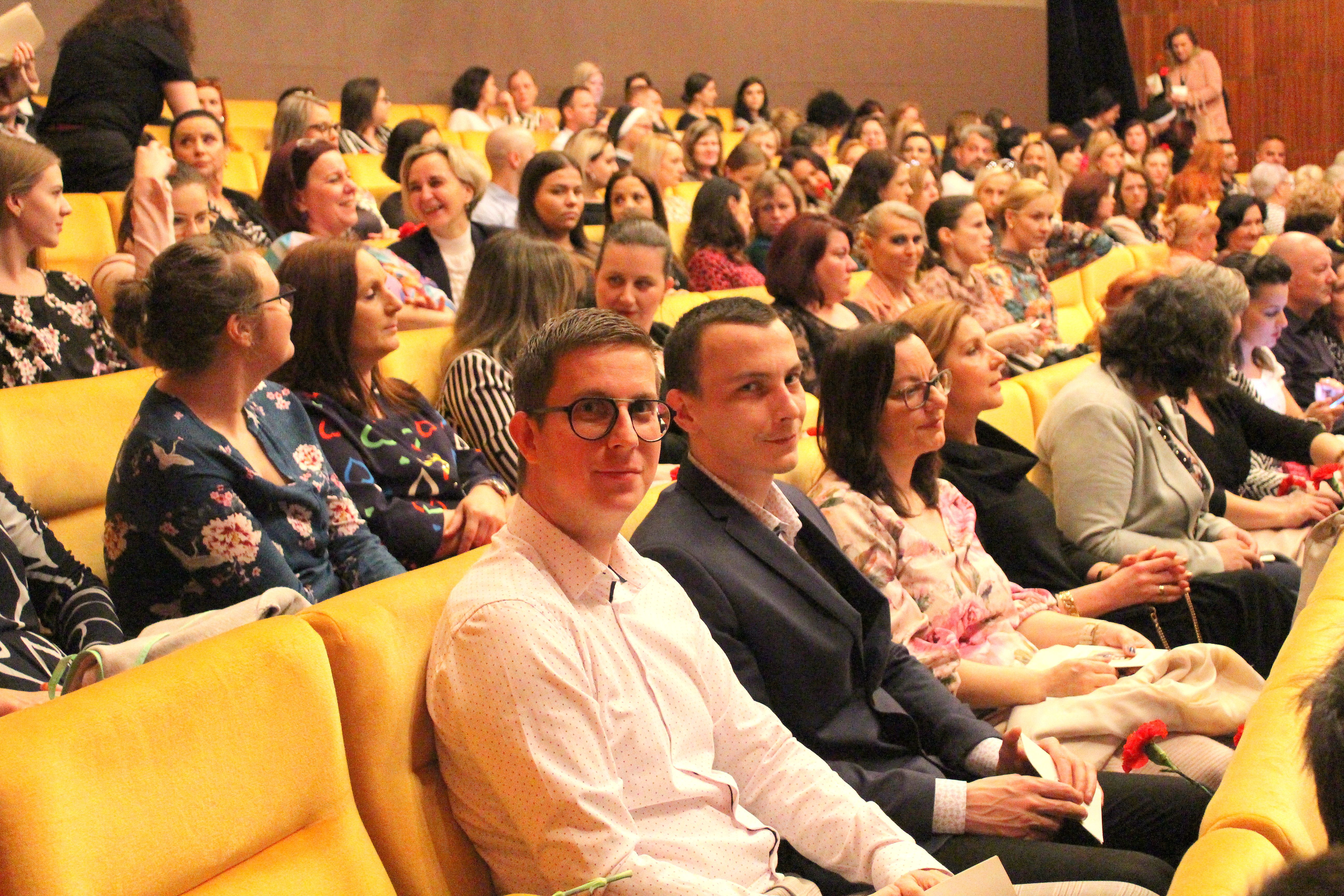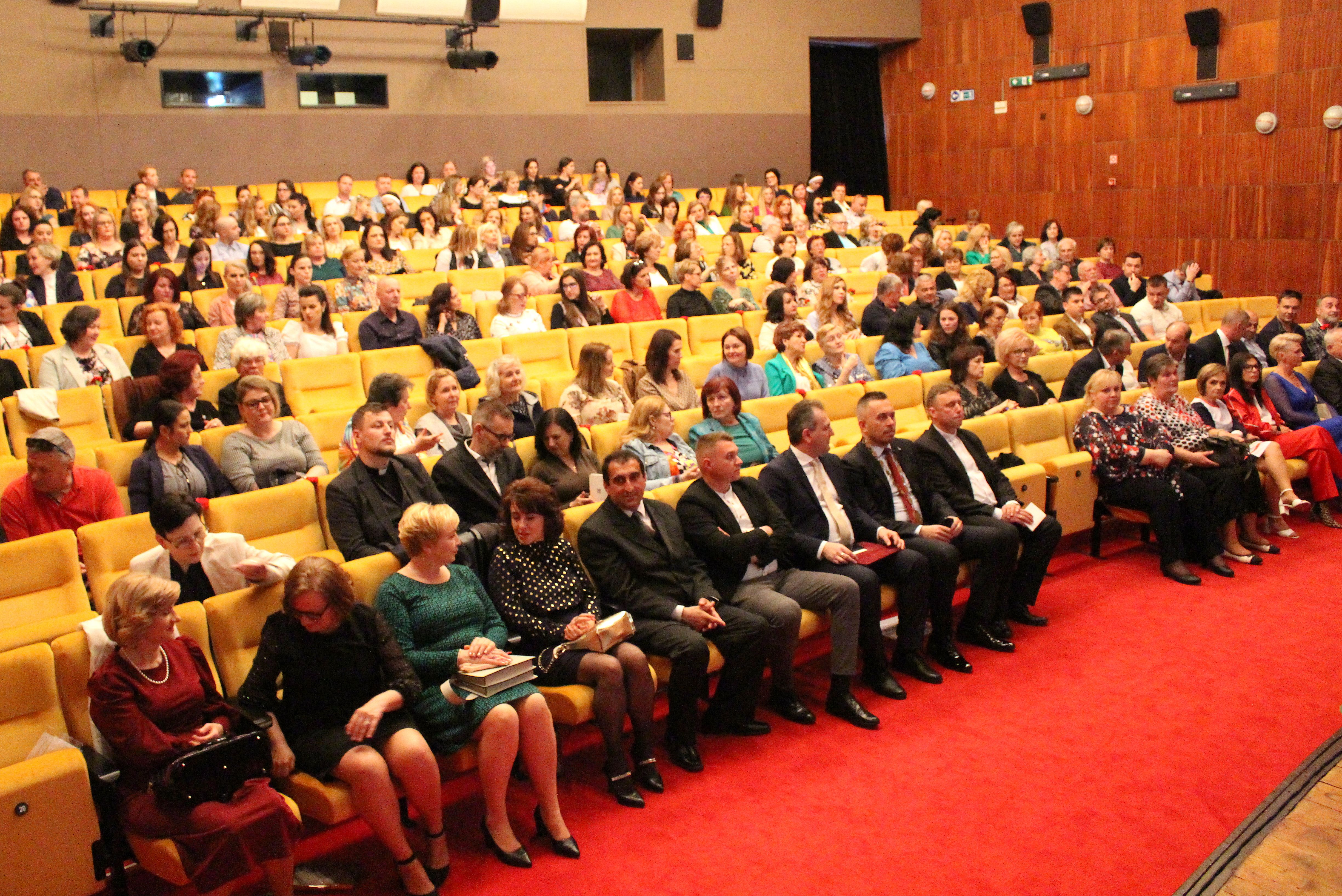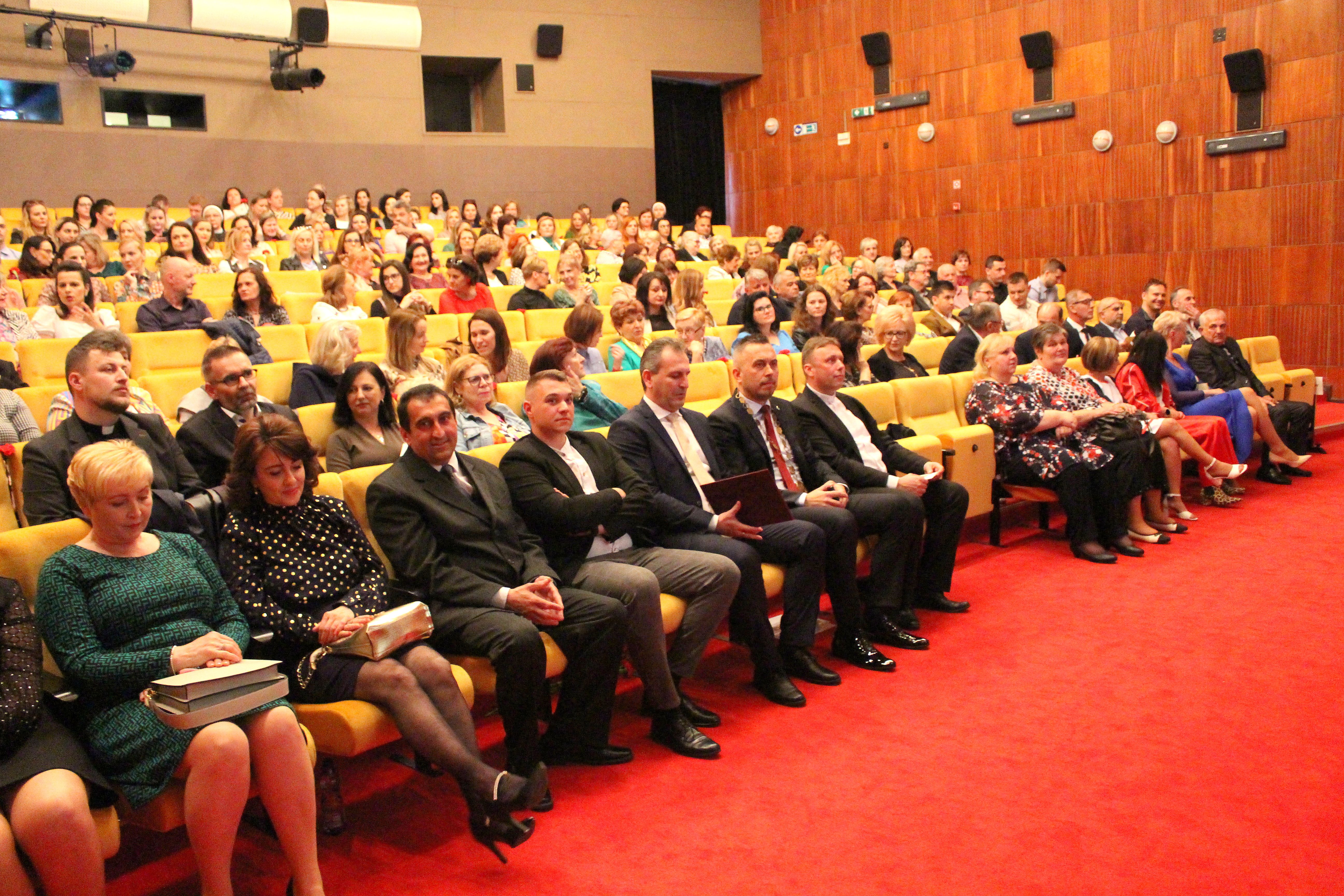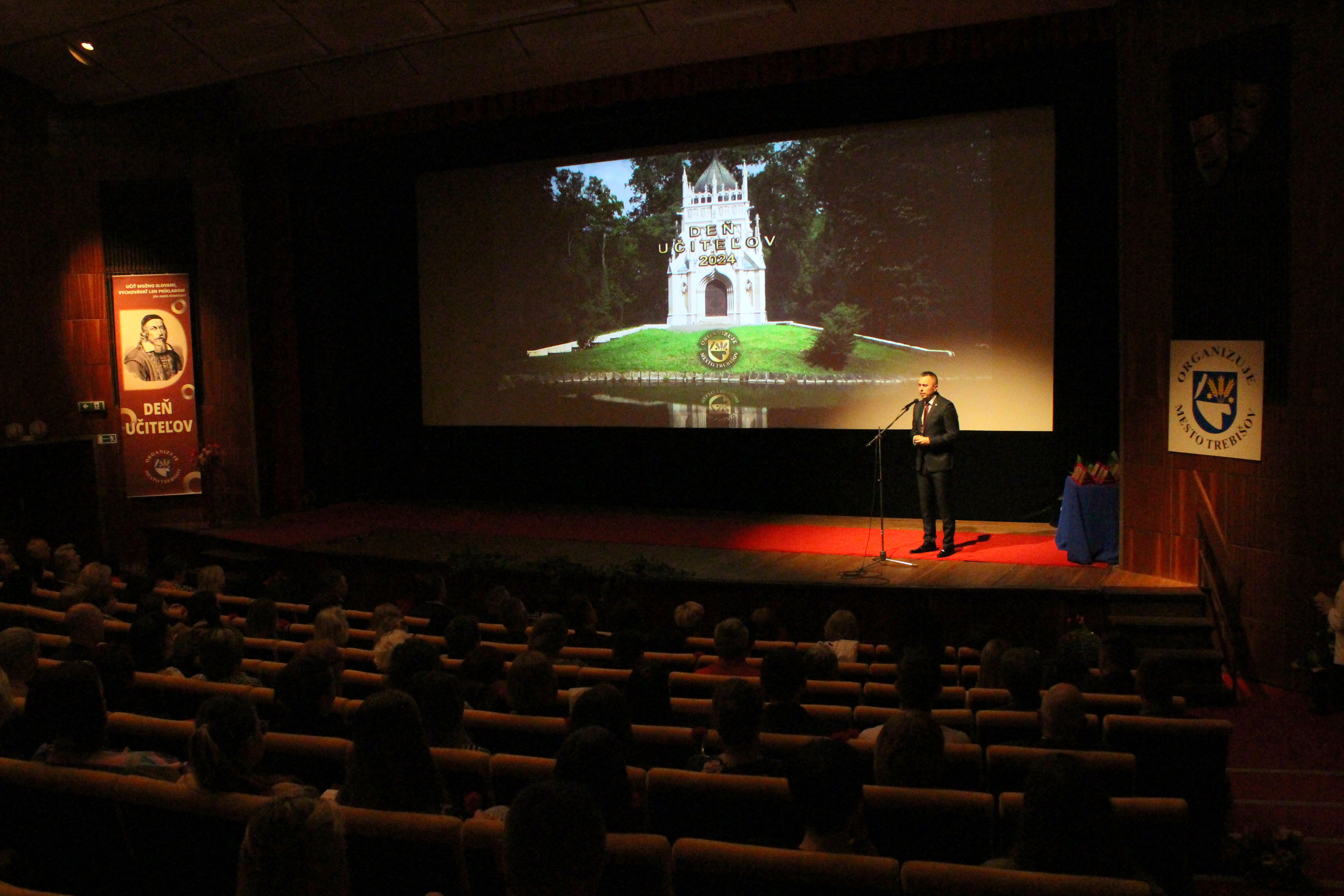 Deň učiteľov oslavujeme 28. marca, no my sme si ho pripomenuli vo štvrtok 11.4.2024, ale rovnako výnimočne. V divadelnej sále Mestského kultúrneho strediska sa, ako už tradične každý rok, zišli učitelia zo všetkých mestských škôl, aby podporili tohtoročných ocenených kolegov a užili si spoločne tento deň.