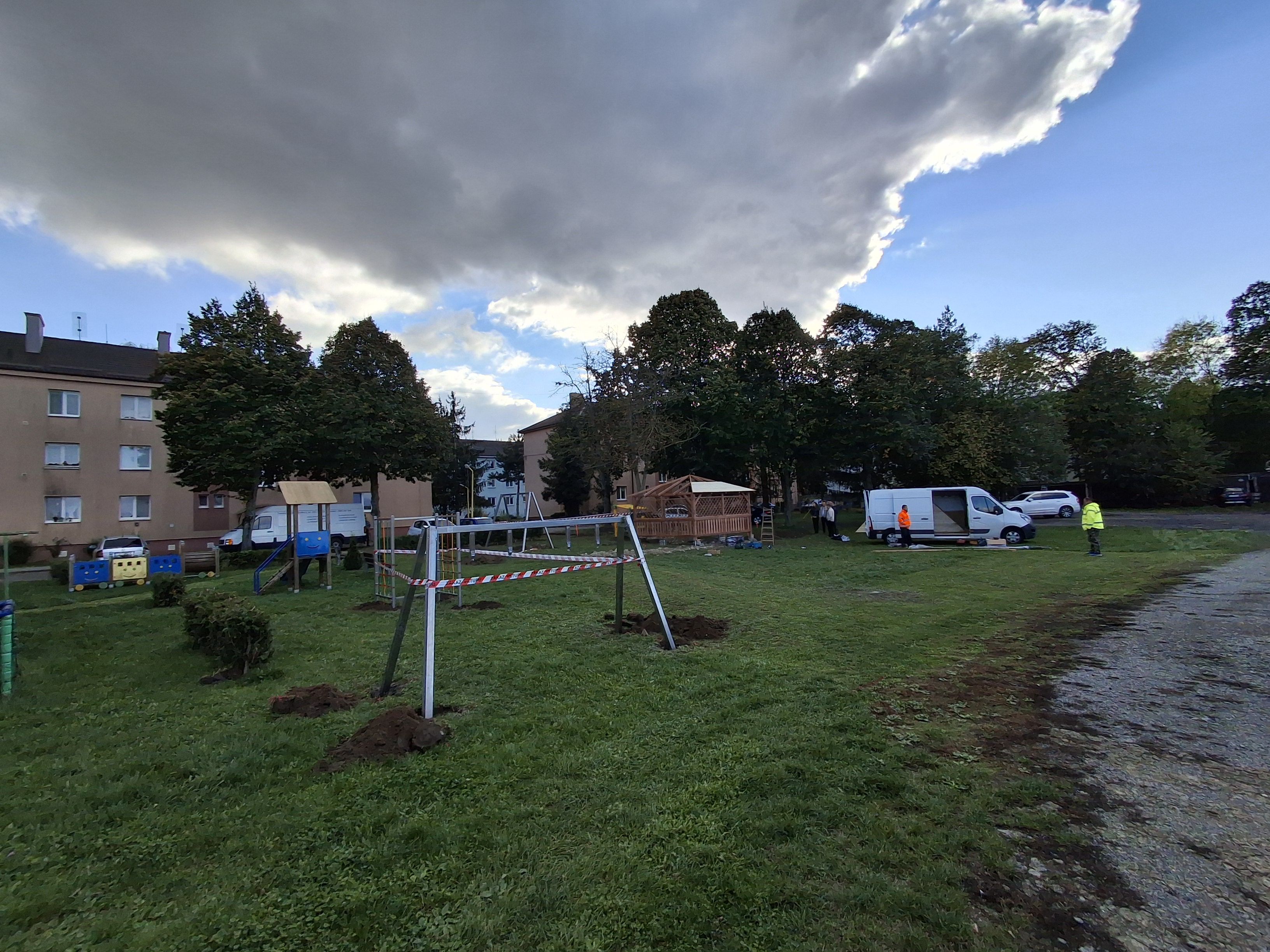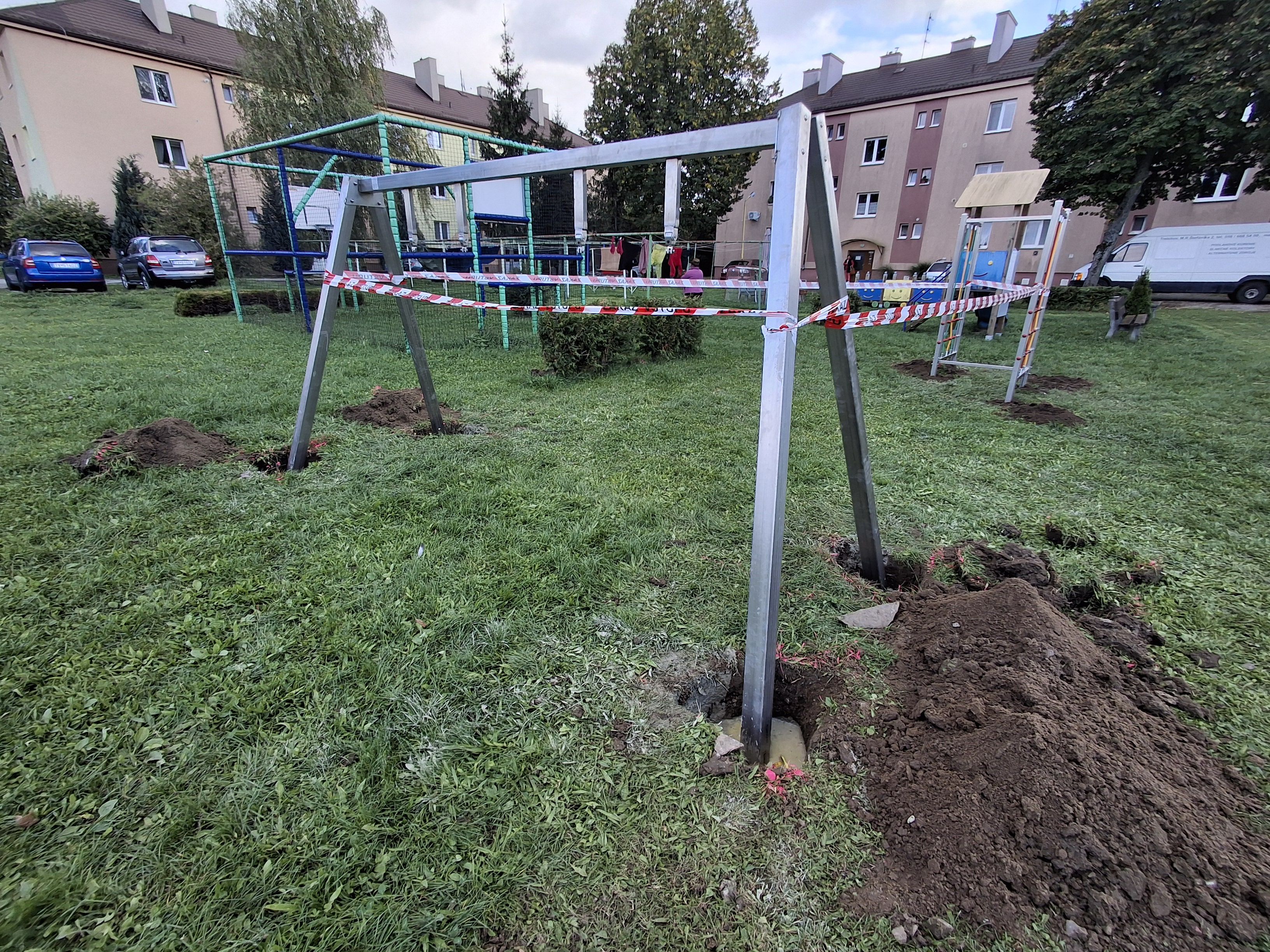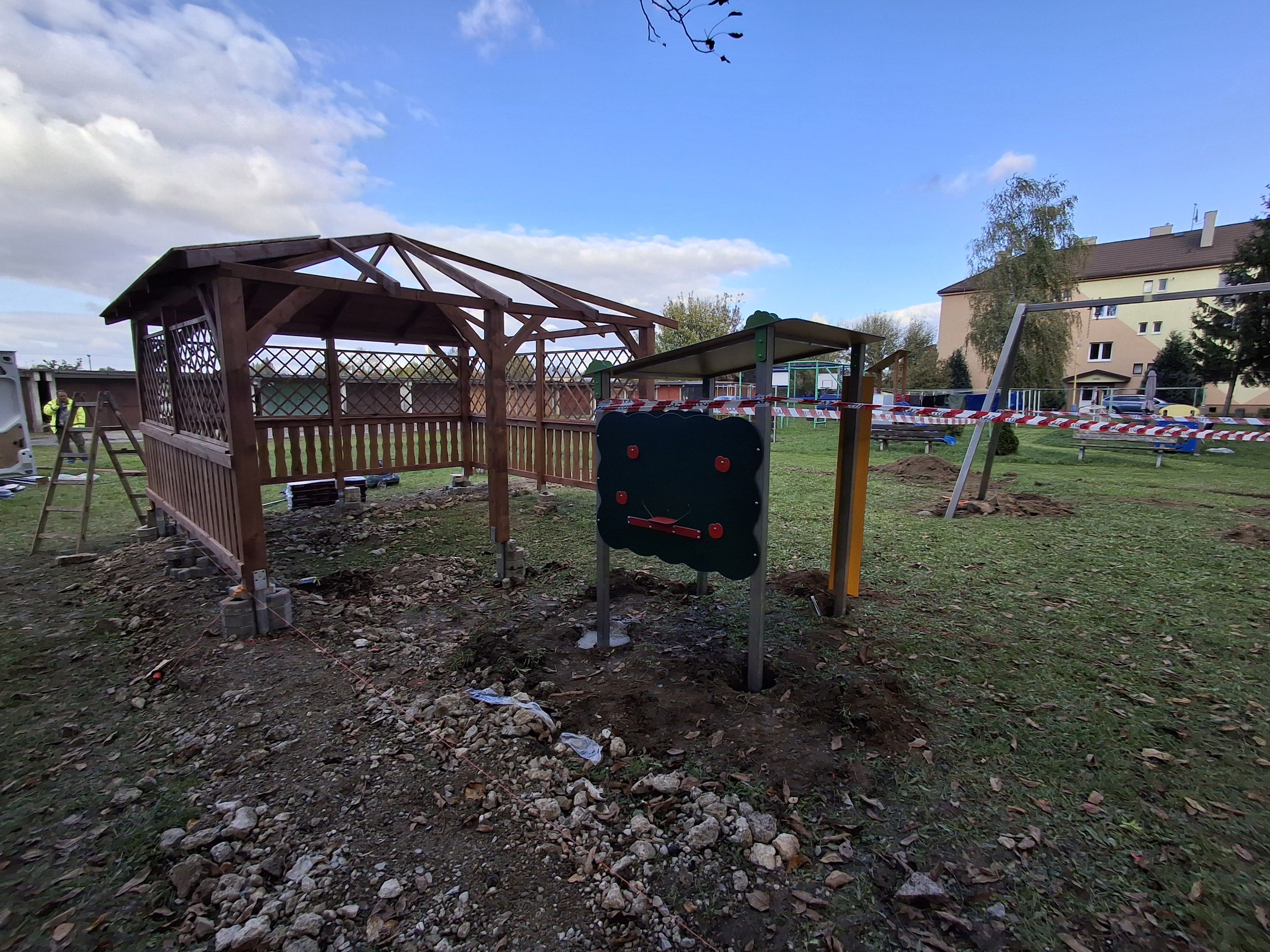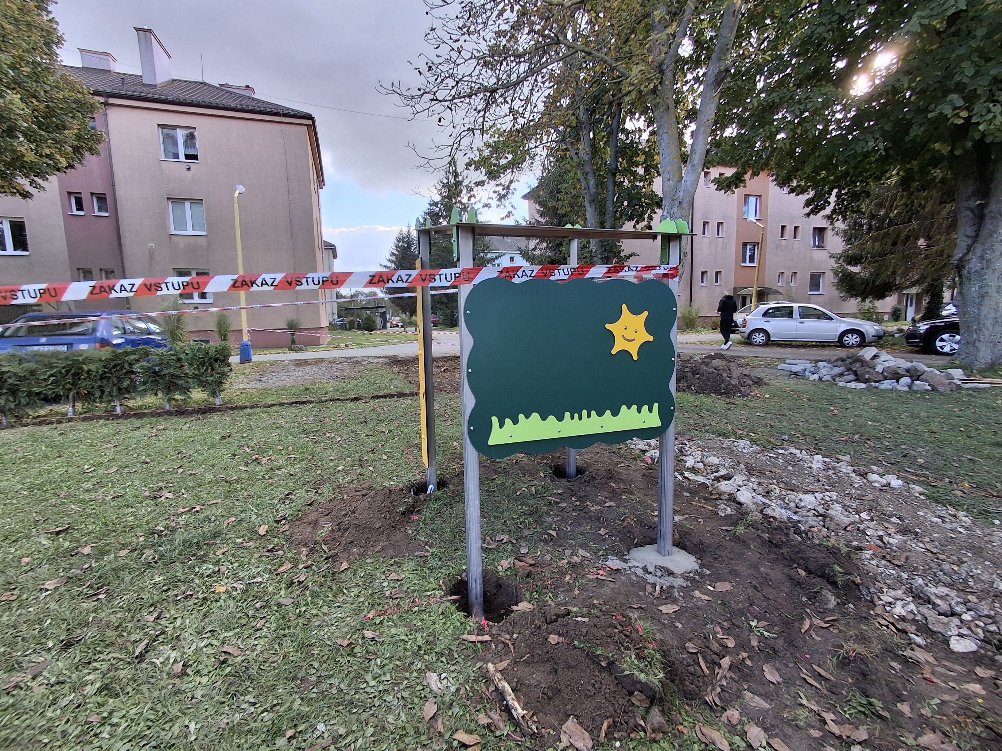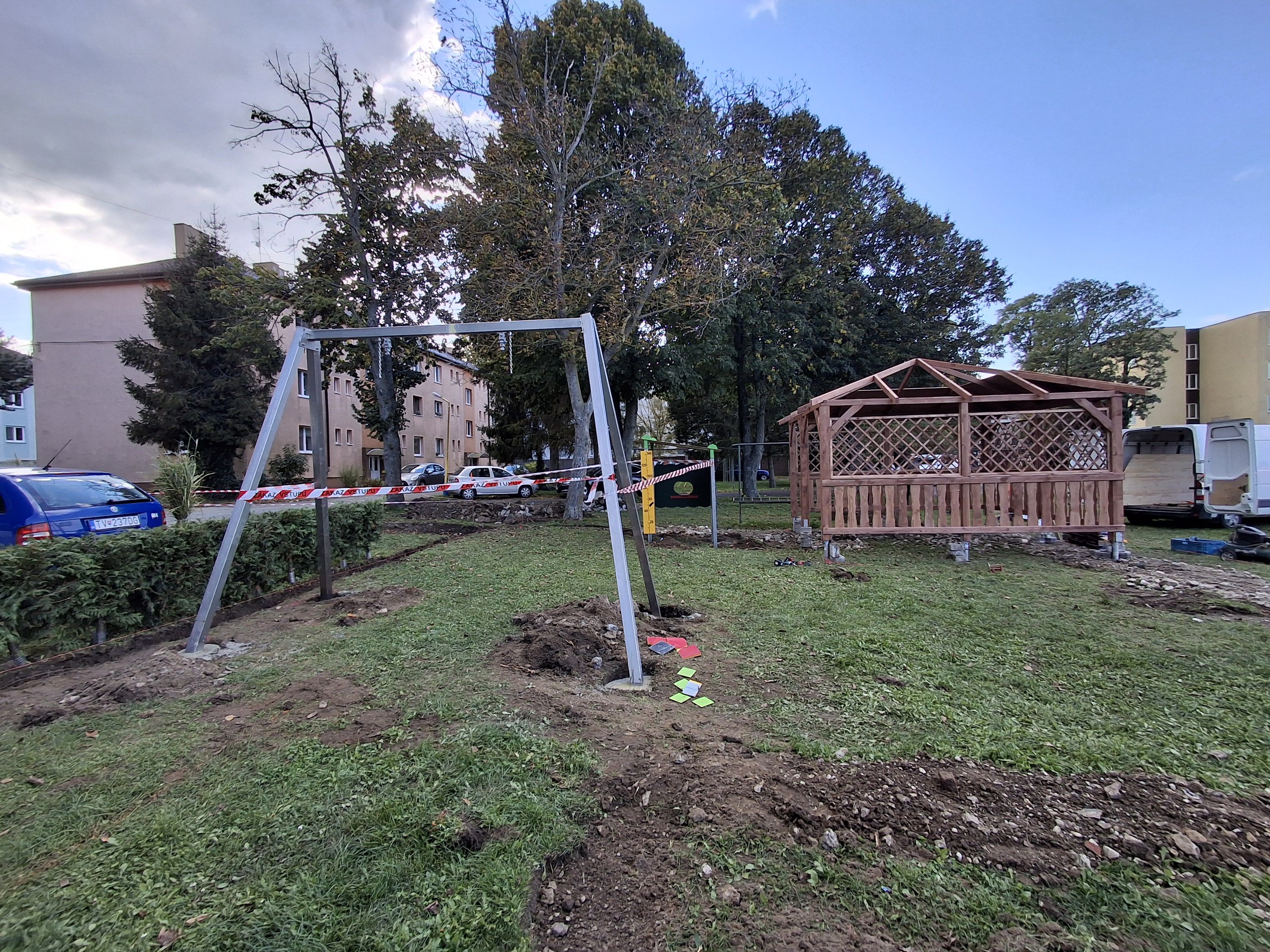 V priebehu dnešného dňa bola na detskom ihrisku, v areáli sídliska na ulici kpt. Nálepku osadená časť hracích prvkov, predovšetkým konštrukcia na reťazovú hojdačku, drevený altánok, aj lezecká lanová zostava.