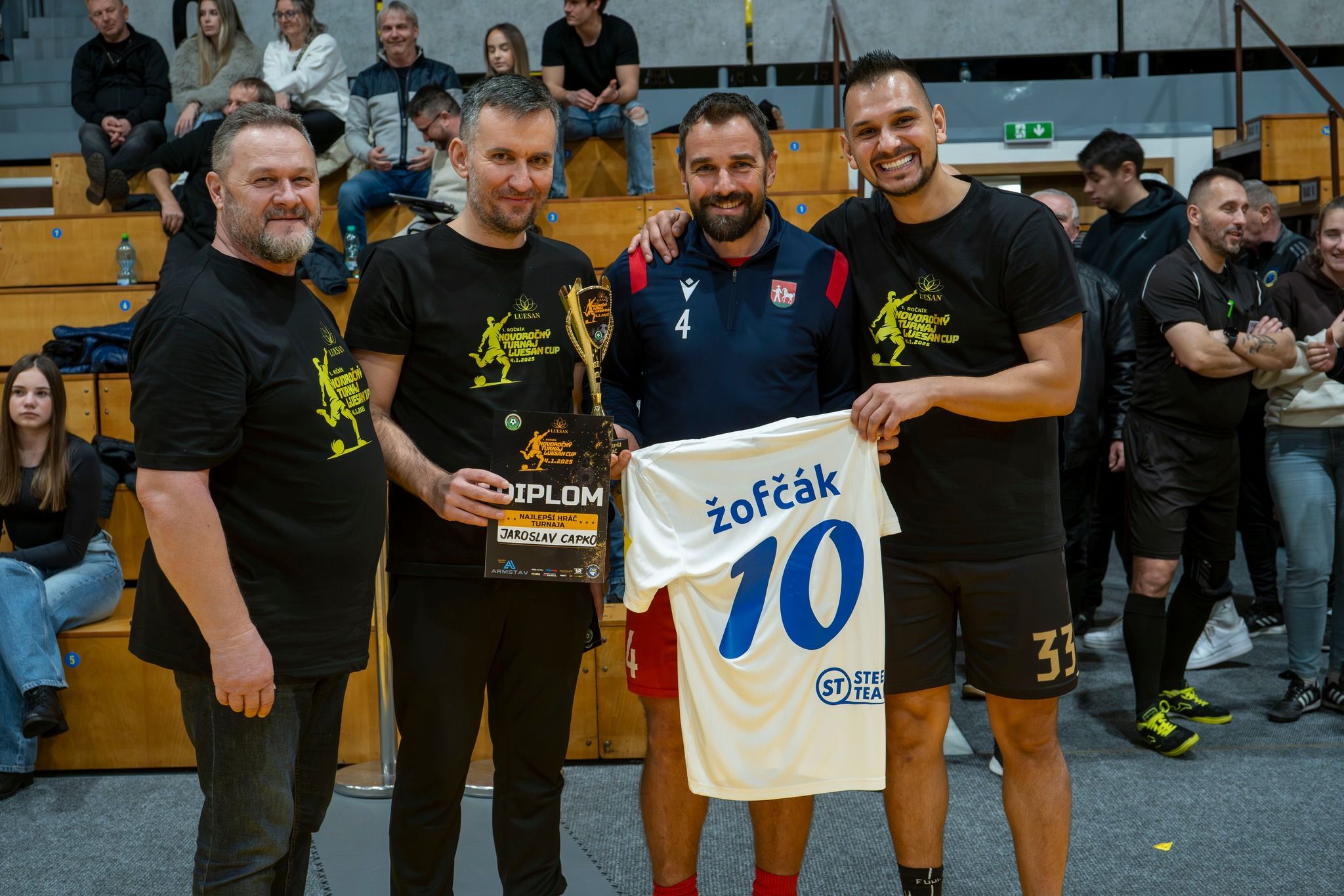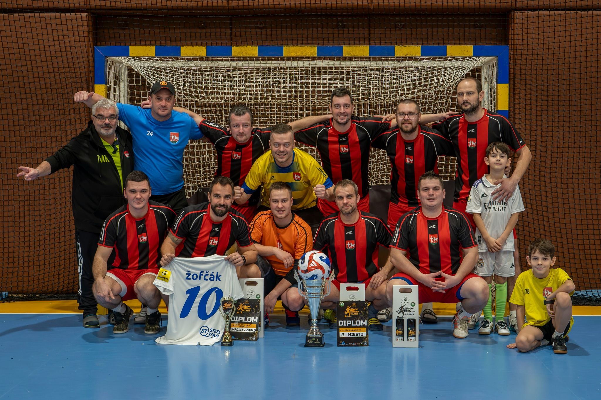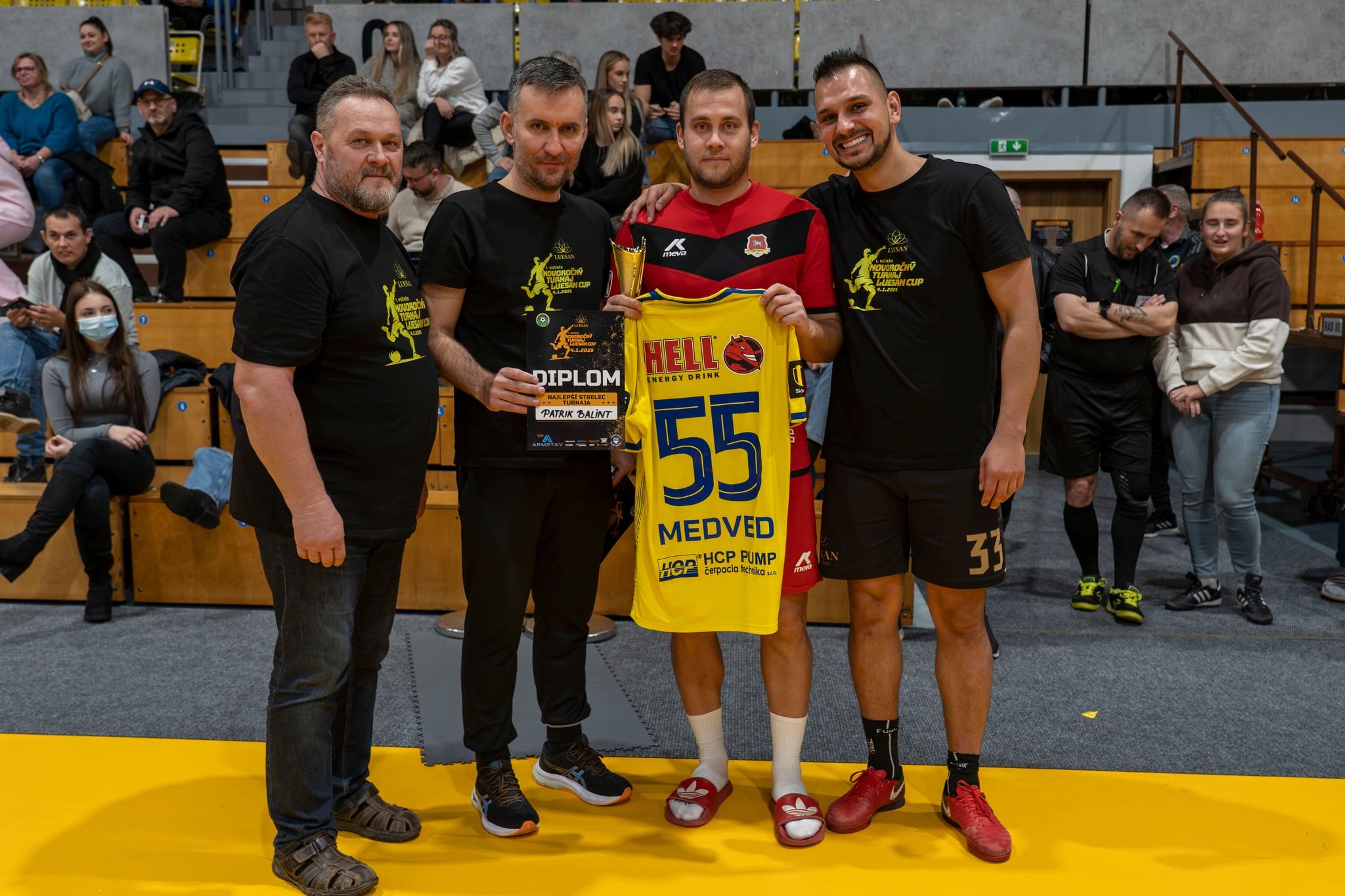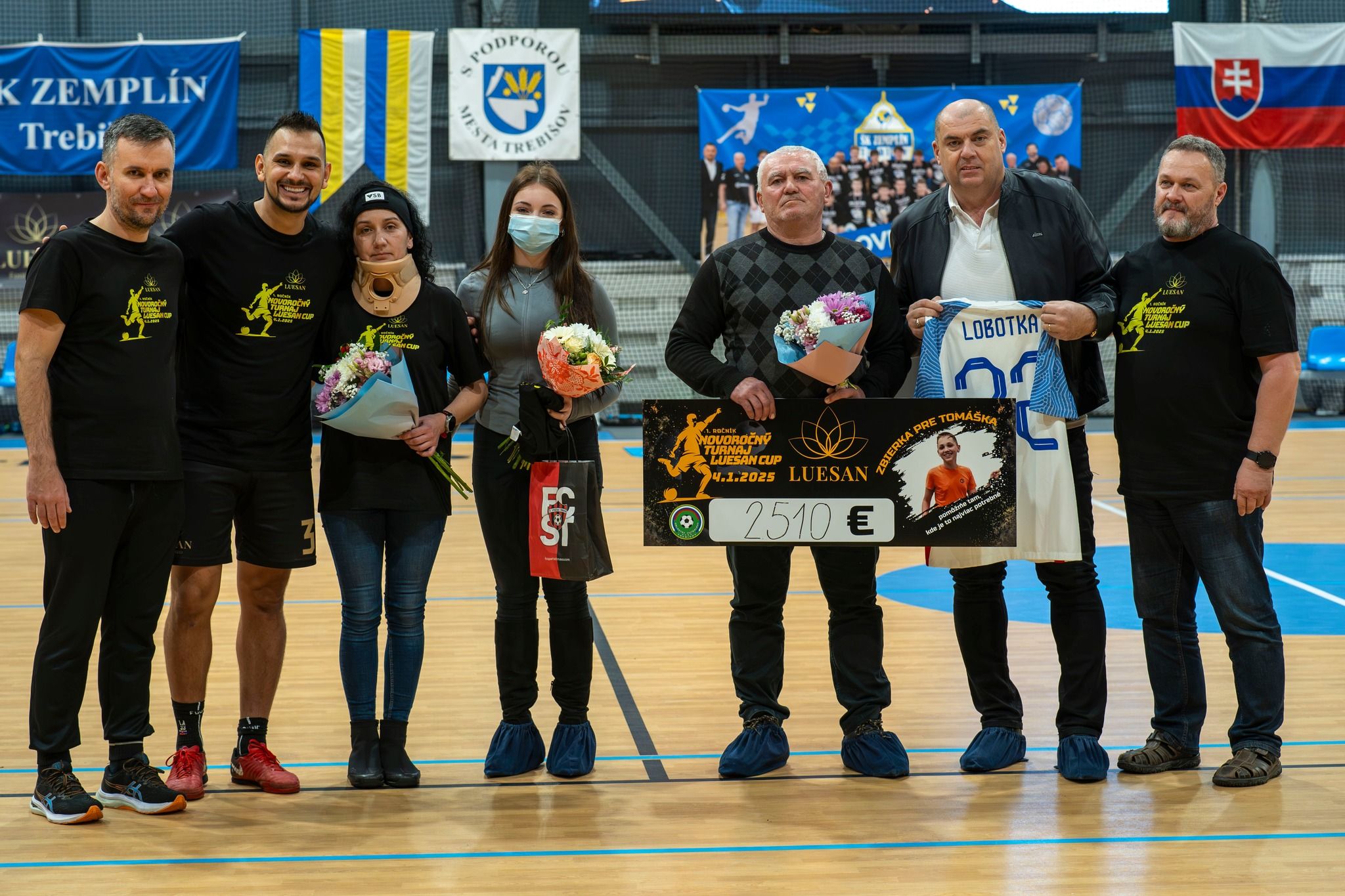 Celý turnaj mal humanitárny podtón. Nie vždy môžu a majú byť na prvom mieste výsledky, body či víťazstvá. Práve preto vo chvíli, keď prišla prosba o pomoc pre rodinu ťažko chorého TOMÁŠKA Seligu, usporiadatelia nezaváhali ani sekundu a rozhodli sa podporiť dobrú vec. Dres reprezentačného záložníka Stanislava Lobotku z EURA 2024 sa na facebooku vydražil za rovných tisíc eur. Celý výťažok z dražby aj z dobrovoľného vstupného na turnaj bol venovaný v prospech tejto ťažko skúšanej rodiny. Napokon sa vyzbieralo 2 510 eur, ktoré boli na konci turnaja okamžite odovzdané starým rodičom Tomáška.