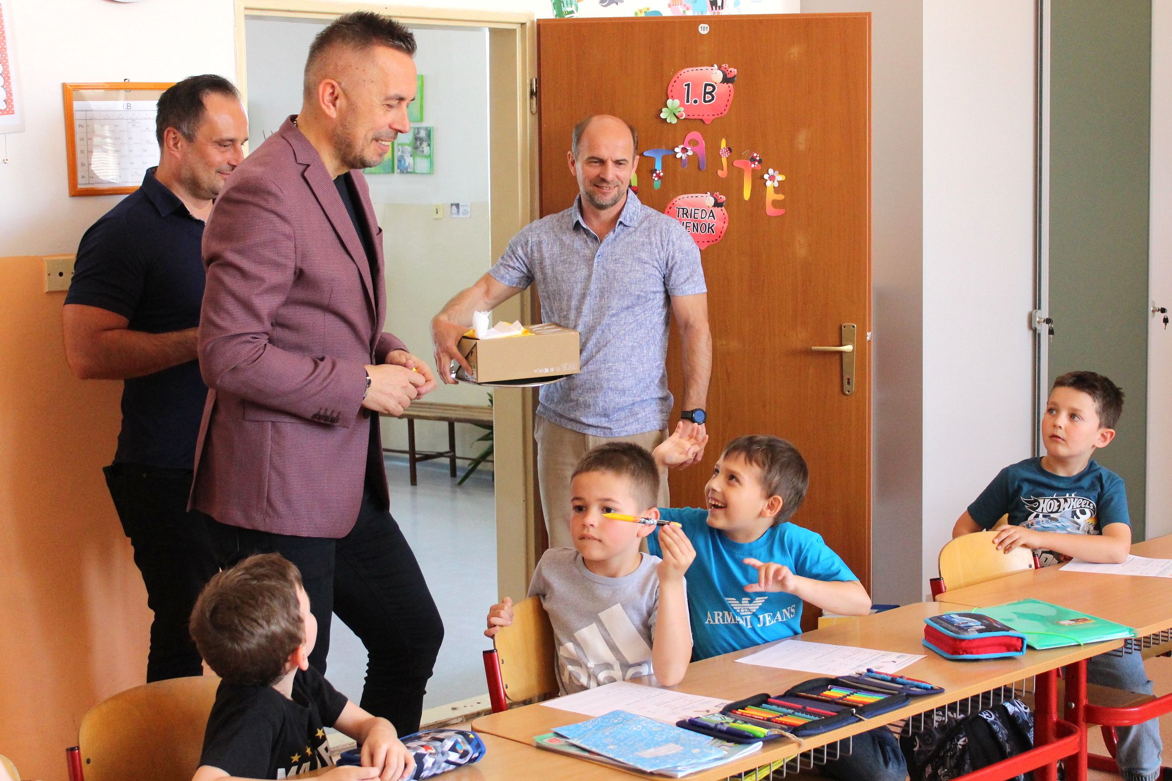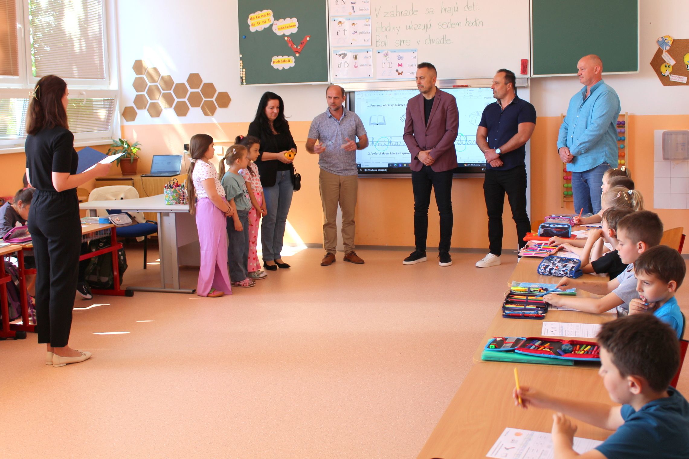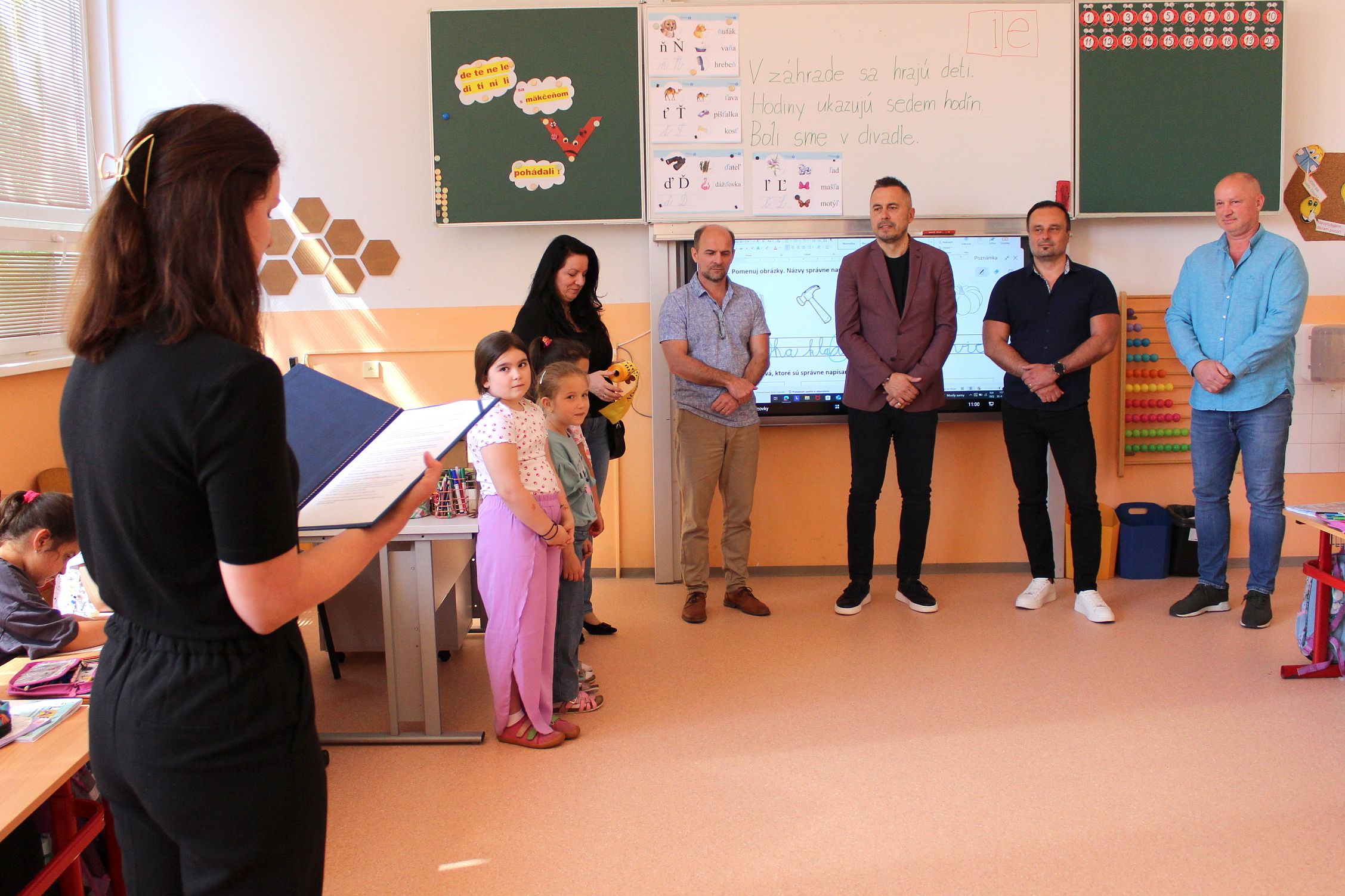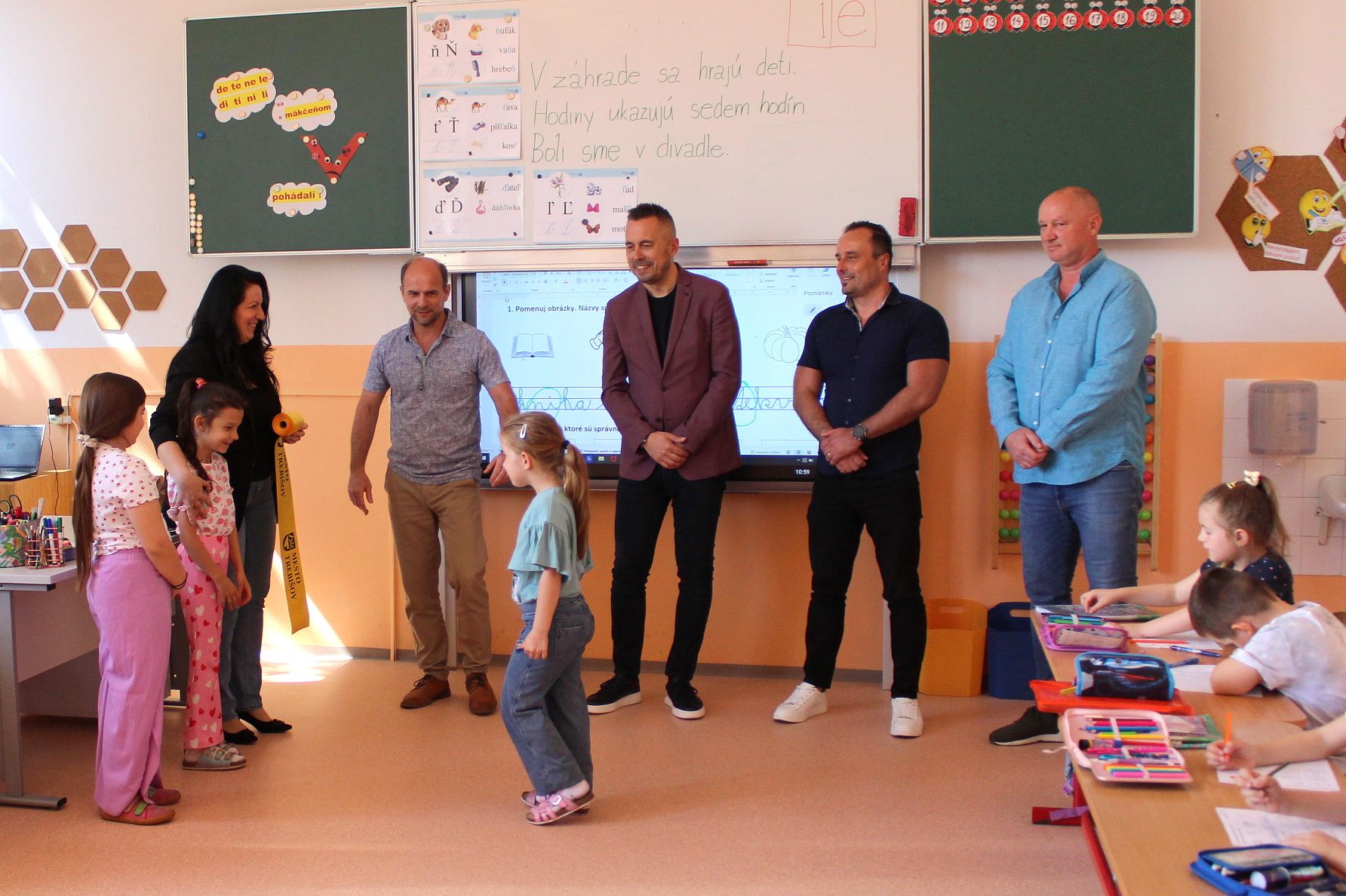 Dnešné slávnostné odovzdanie zrekonštruovaných priestorov sa uskutočnilo za prítomnosti primátora mesta PhDr. Mareka Čižmára, jeho zástupcu Ing. Petra Duča, vedúcej oddelenia školstva RNDr. Jany Partilovej, riaditeľa Základnej školy na Komenského ulici Mgr. Radoslava Ujhelyiho a zástupcu spoločnosti DOMOS SLOVAKIA s.r.o. – Michala Olejára, ktorá túto rekonštrukciu úspešne zrealizovala.