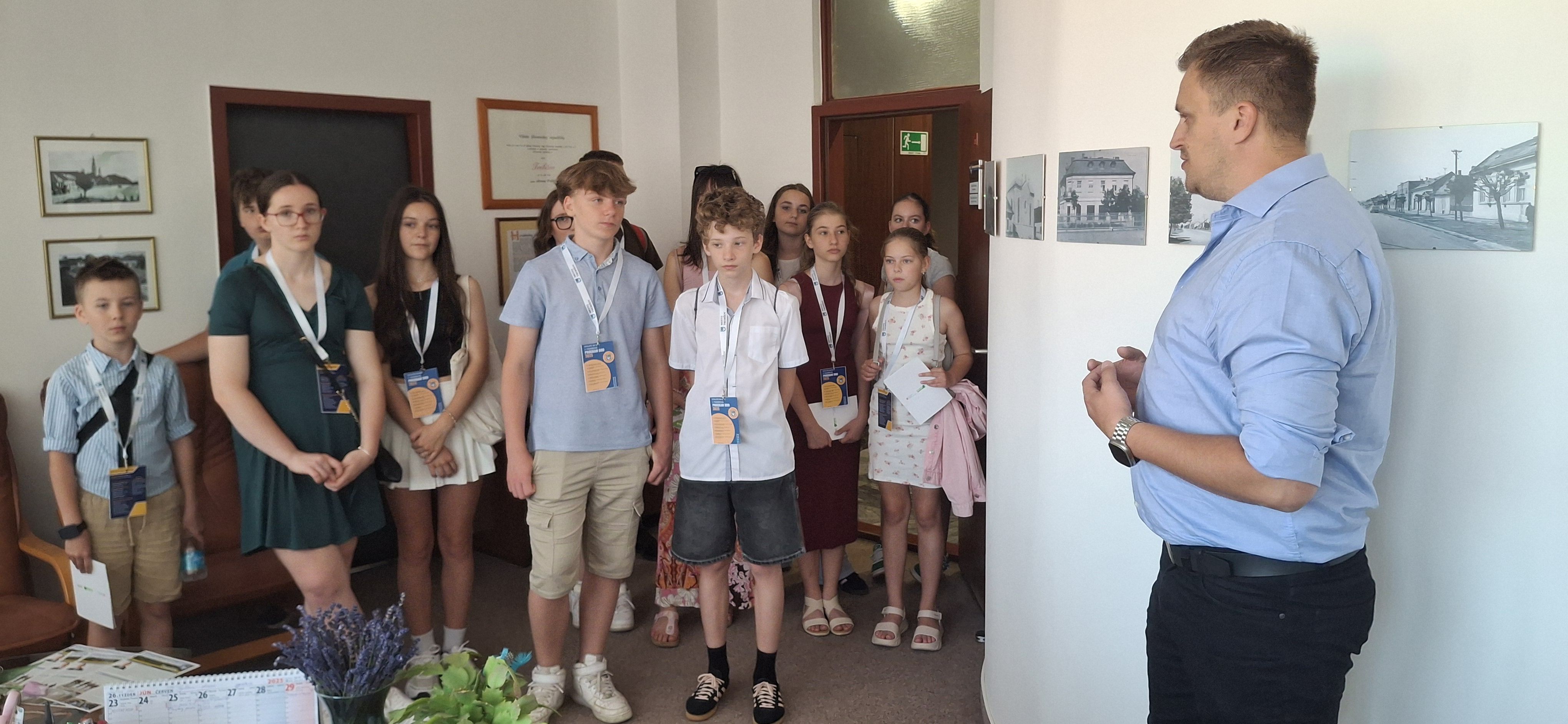 Spolu s prednostom Mestského úradu JUDr. Martinom Galgoczym, LL.M. pokračovali účastníci v objavovaní jednotlivých oddelení úradu. Žiaci mali možnosť spoznať kompetencie úradníkov, a výnimočným zážitkom bola aj návšteva kancelárie primátora.