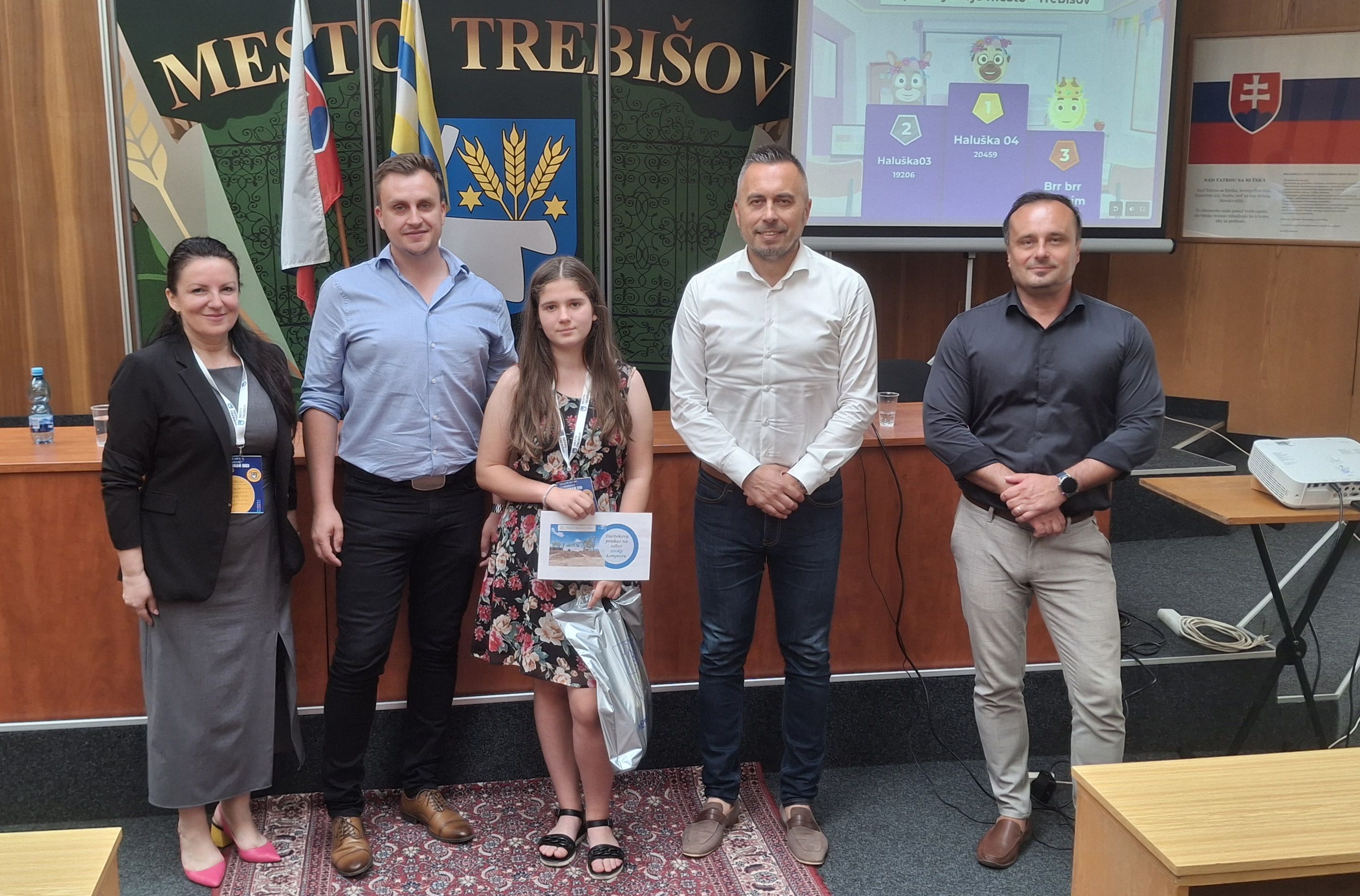 Víťazka si z rúk primátora, jeho zástupcu Ing. Petra Duča a prednostu úradu prevzala symbolickú odmenu ako poďakovanie za svoj aktívny prístup.