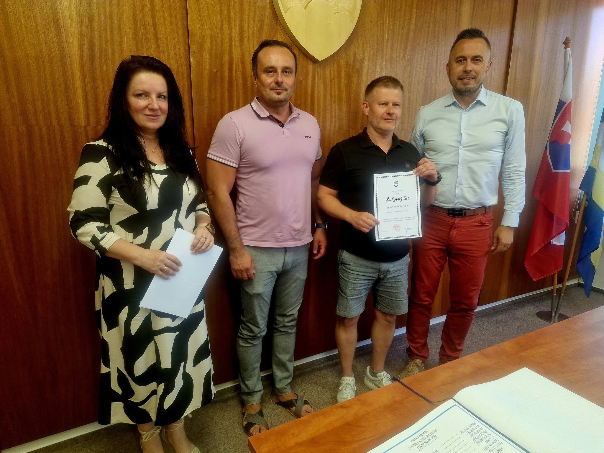 Za účasti jeho zástupcu Petra Duča a vedúcej Oddelenia školstva Jany Partilovej boli hráčom a realizačnému tímu, ako aj vedeniu klubu, spolu so zápisom do mestskej kroniky odovzdané ďakovné listy a pre hráčov, ako odmena, aj voľné vstupy na letné kúpalisko.