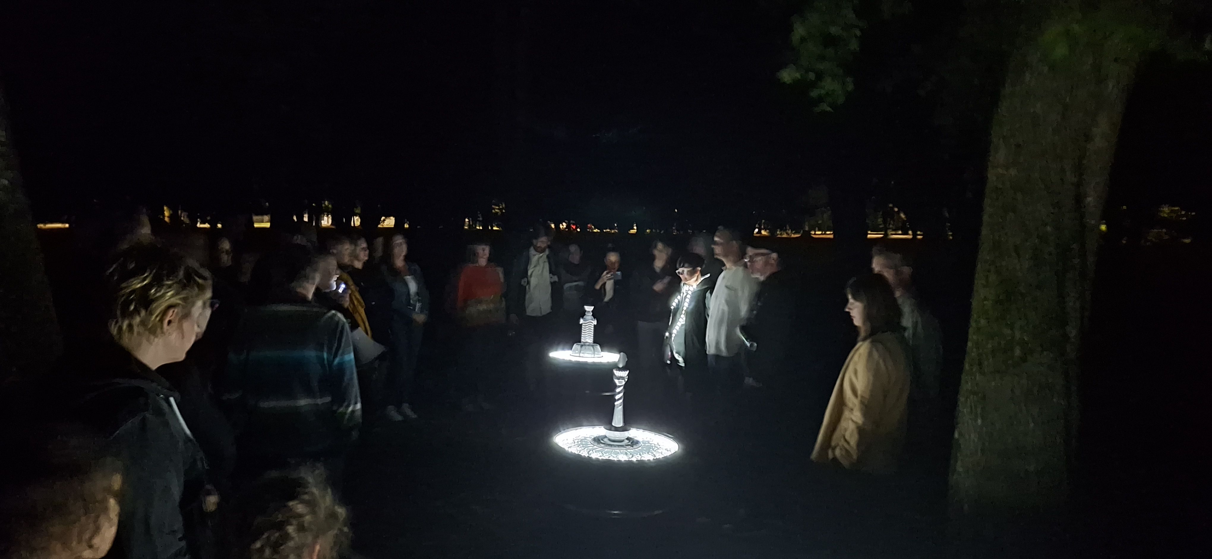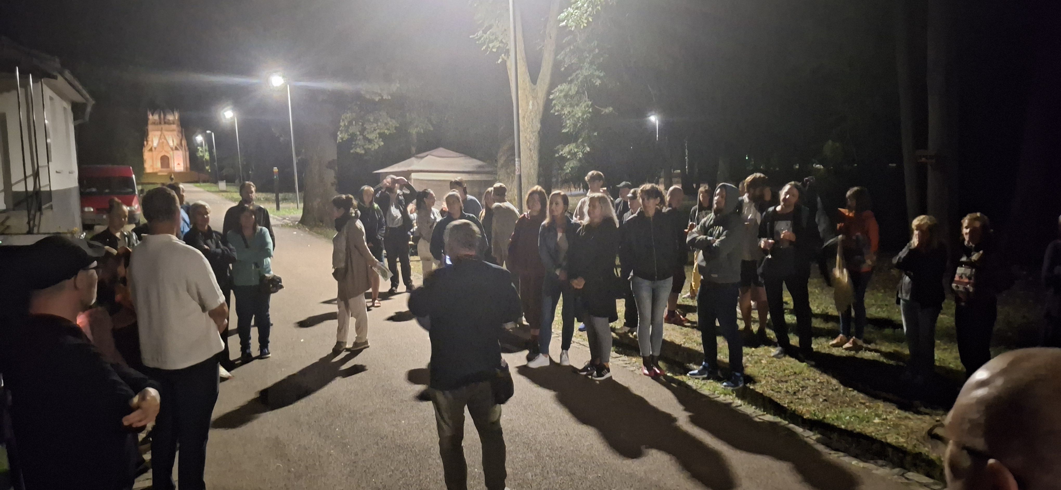 Sobotná komentovaná prehliadka vizuálnych intervencií v mestskom parku s kurátorom doc. Miroslav Niczom a mapping na vežu Jazdiarne predstavila tvorbu 12 autorov projektu PARK CAMP 11.