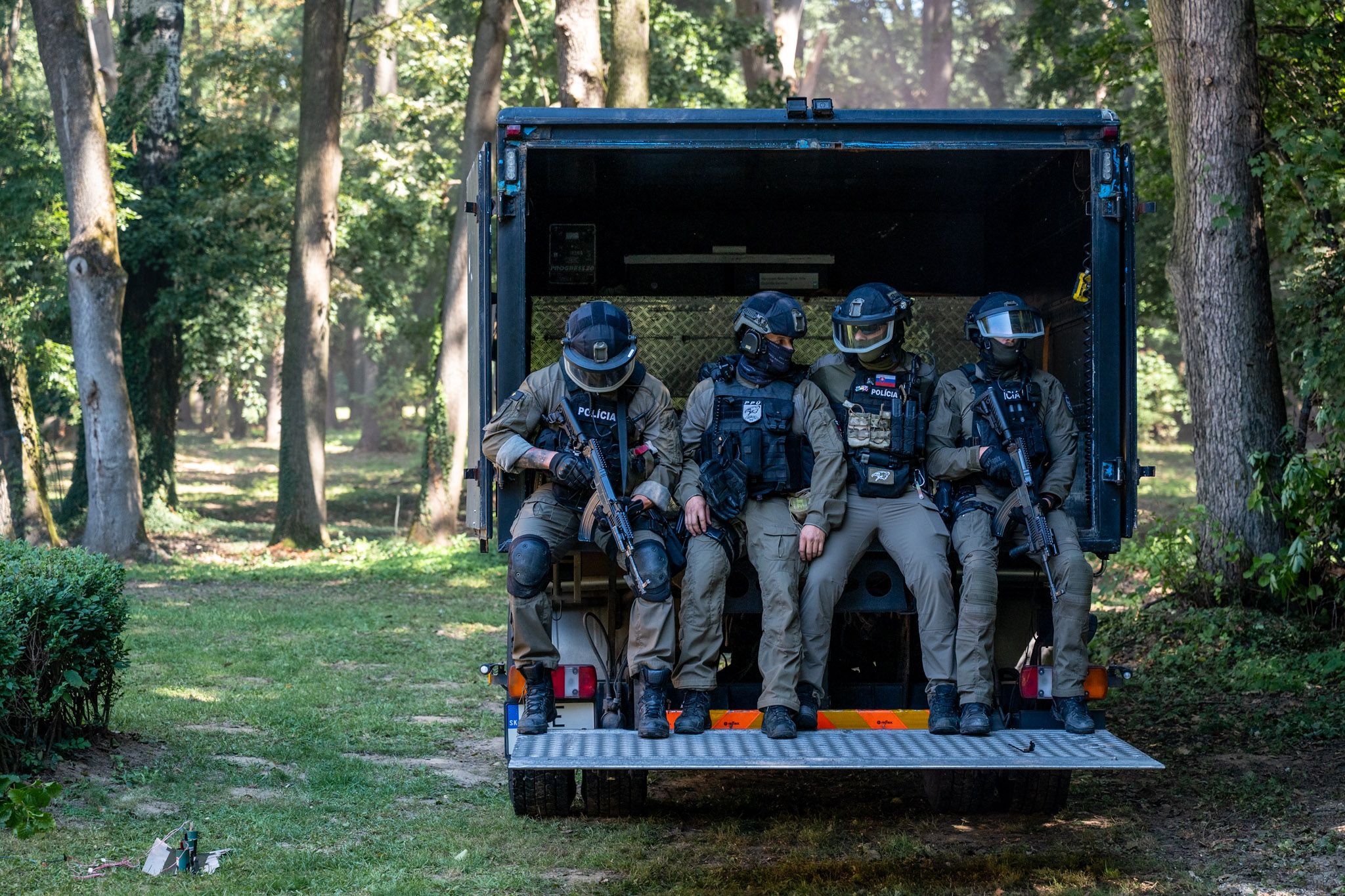 - policajné vozidlá a technika