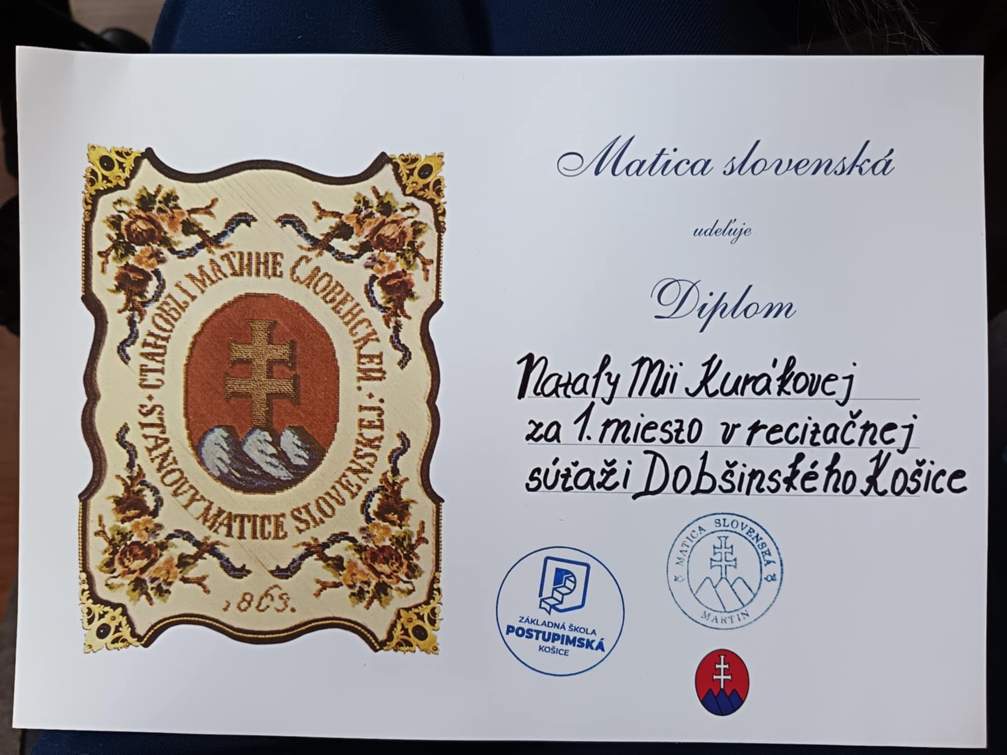 Blahoželáme Nataly Mii Kurákovej k víťazstvu v súťaži Dobšinského Košice