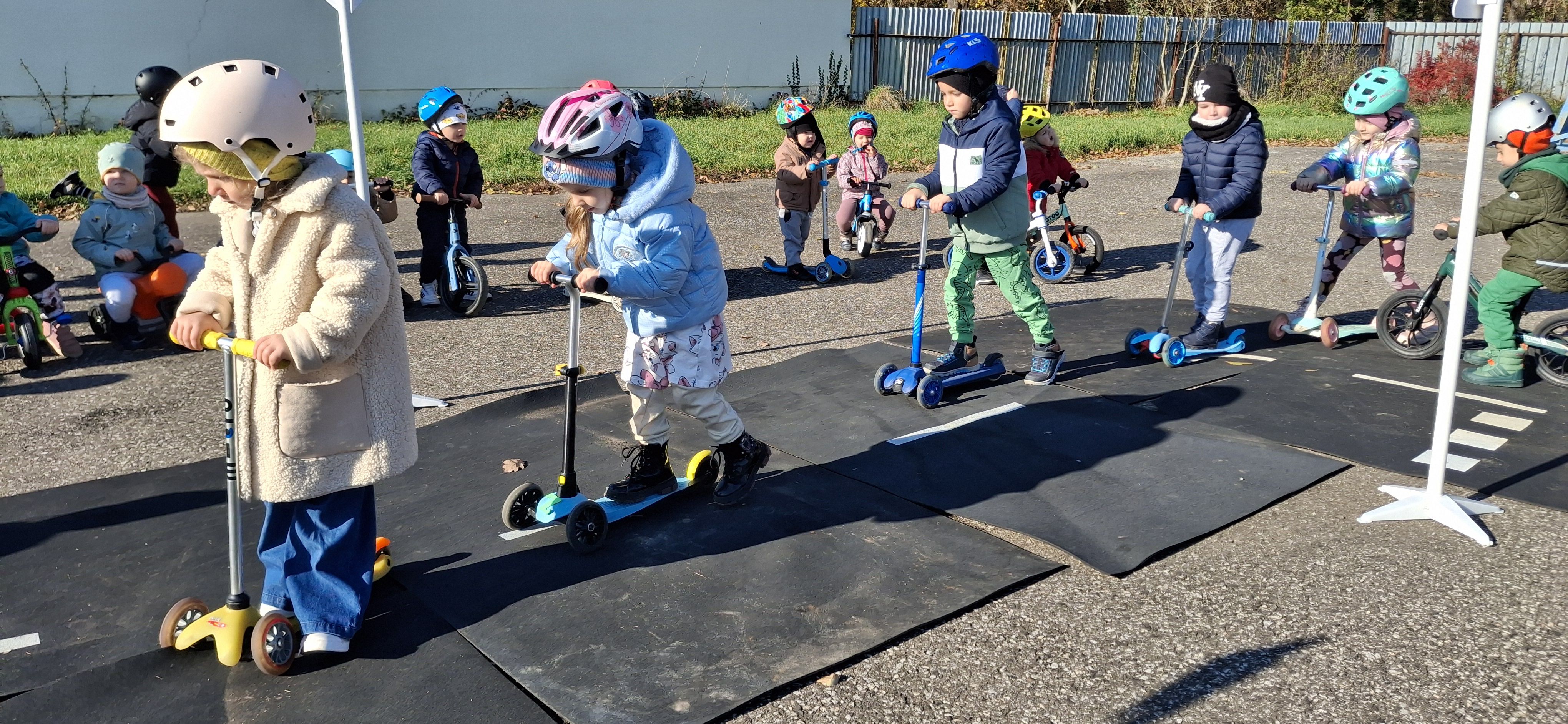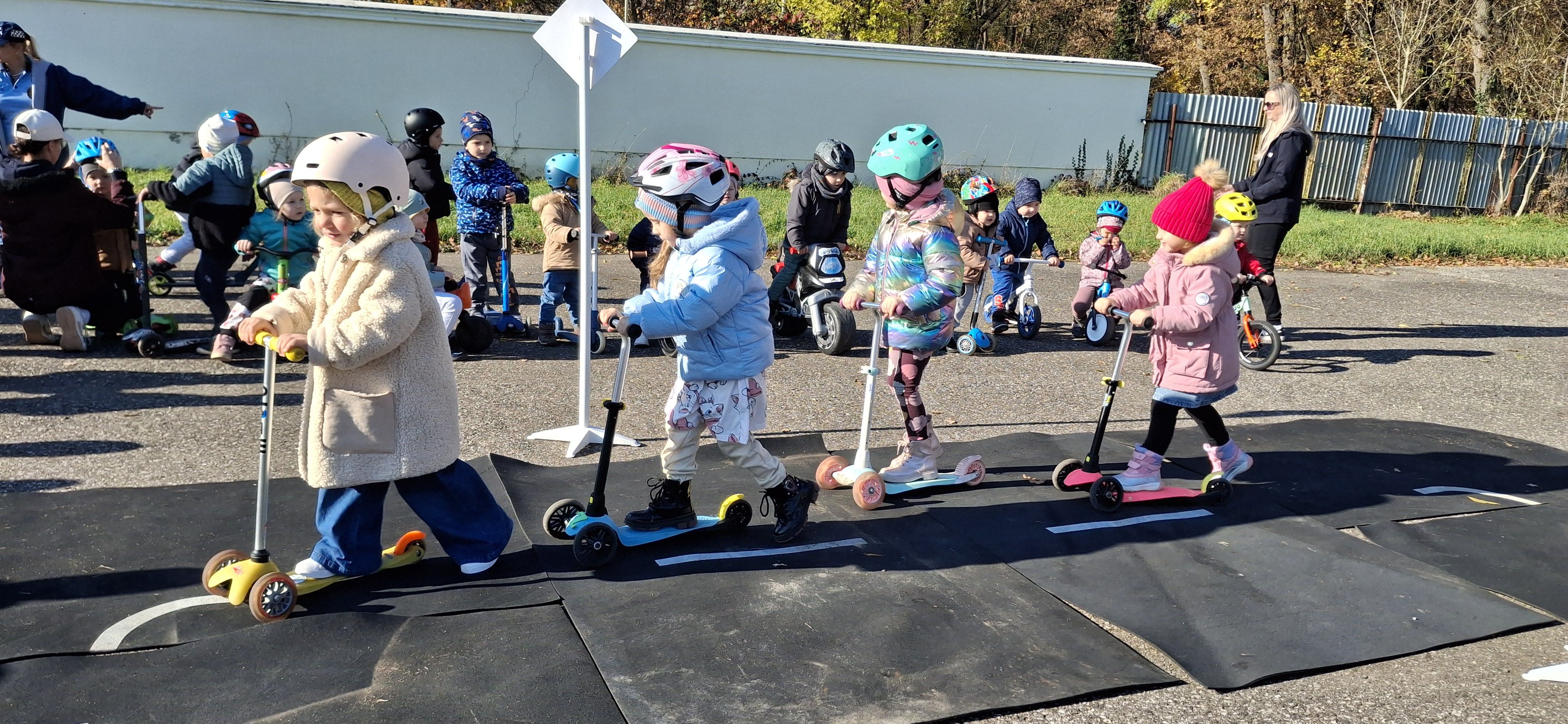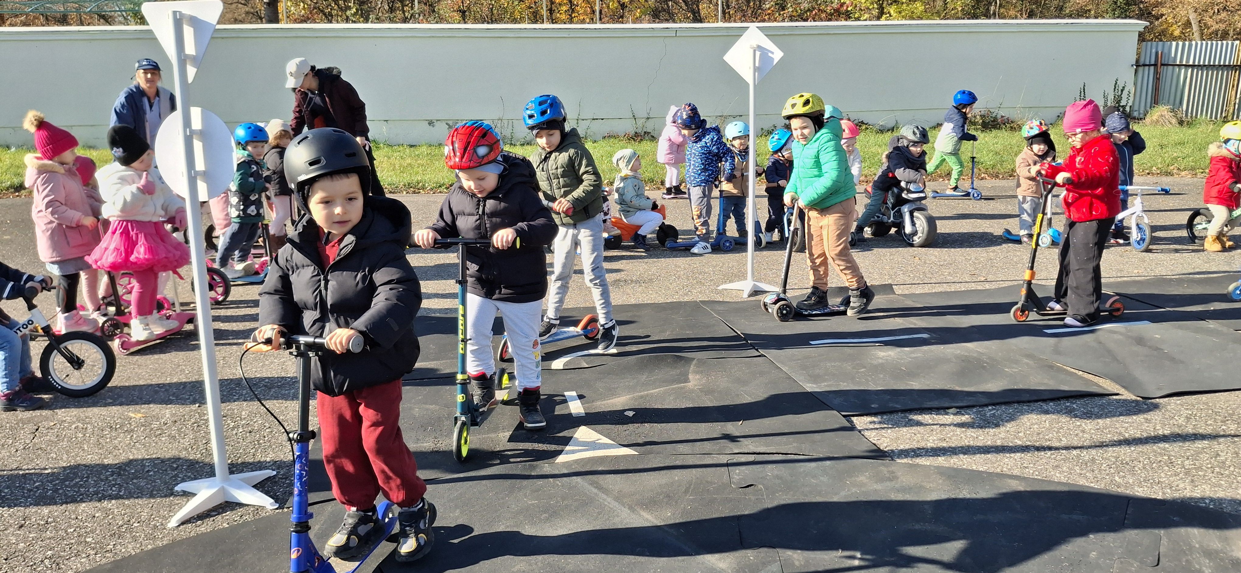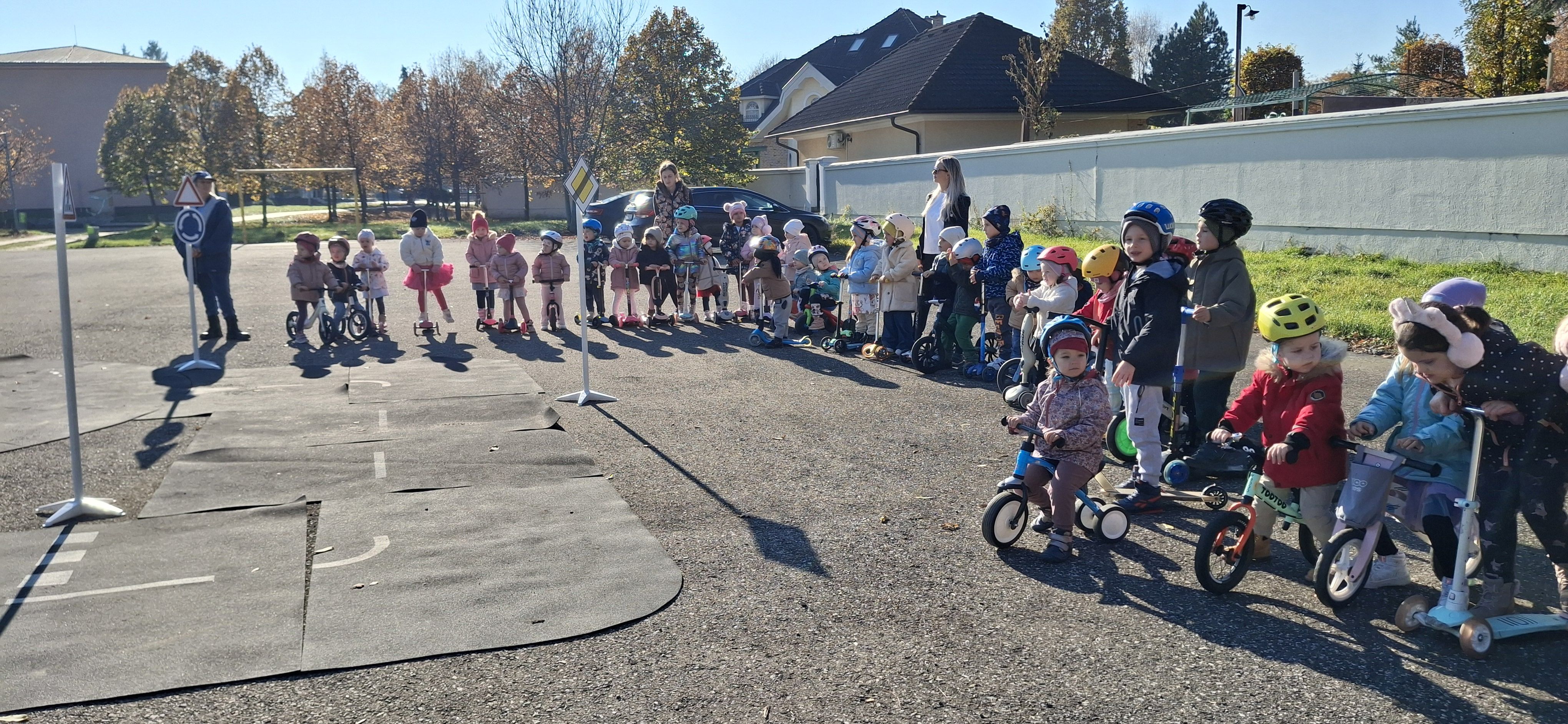 Malí „vodiči“ si všetko hneď aj vyskúšali – jazdu na kolobežkách, odrážadlách a motorkách, rozpoznávanie dopravných značiek v praxi aj to, aké je to sedieť v policajnom aute.
