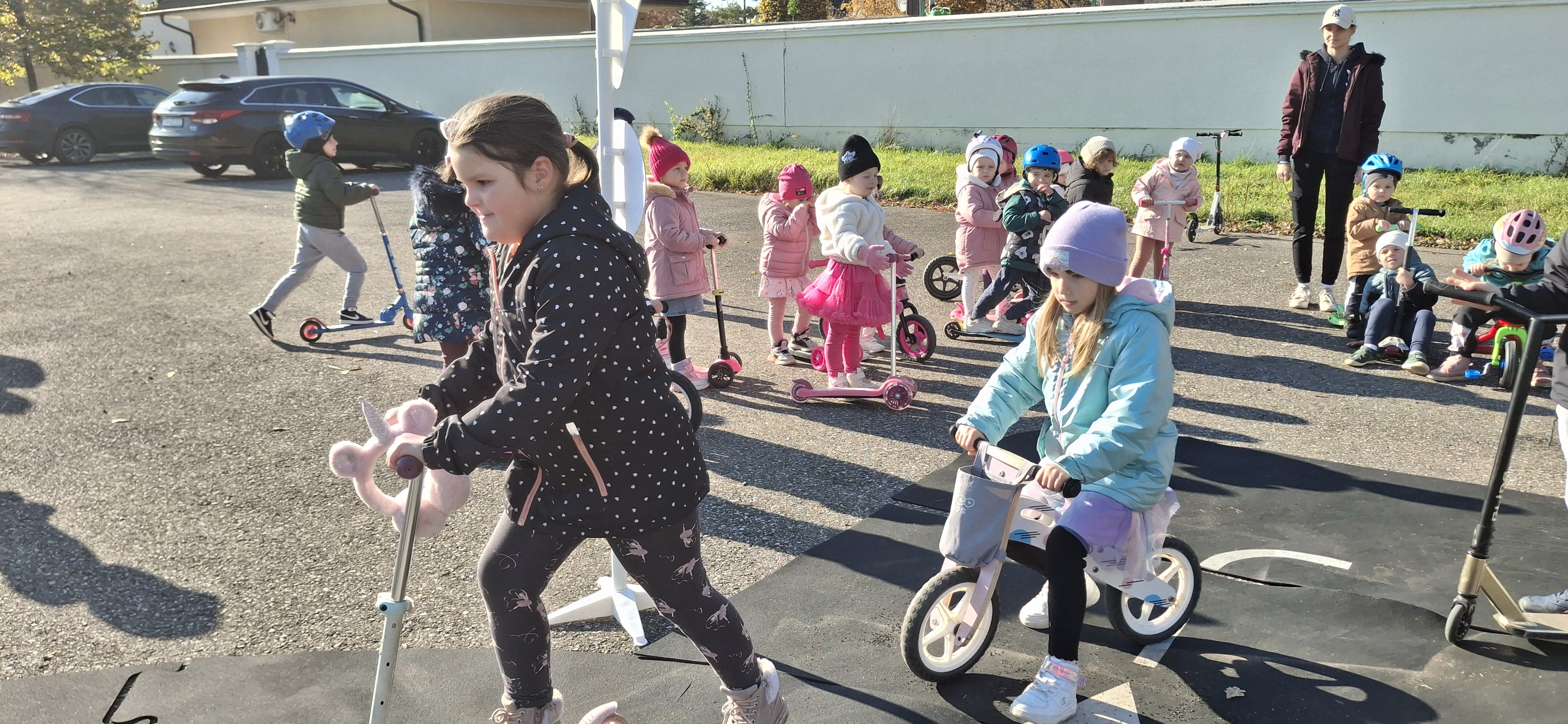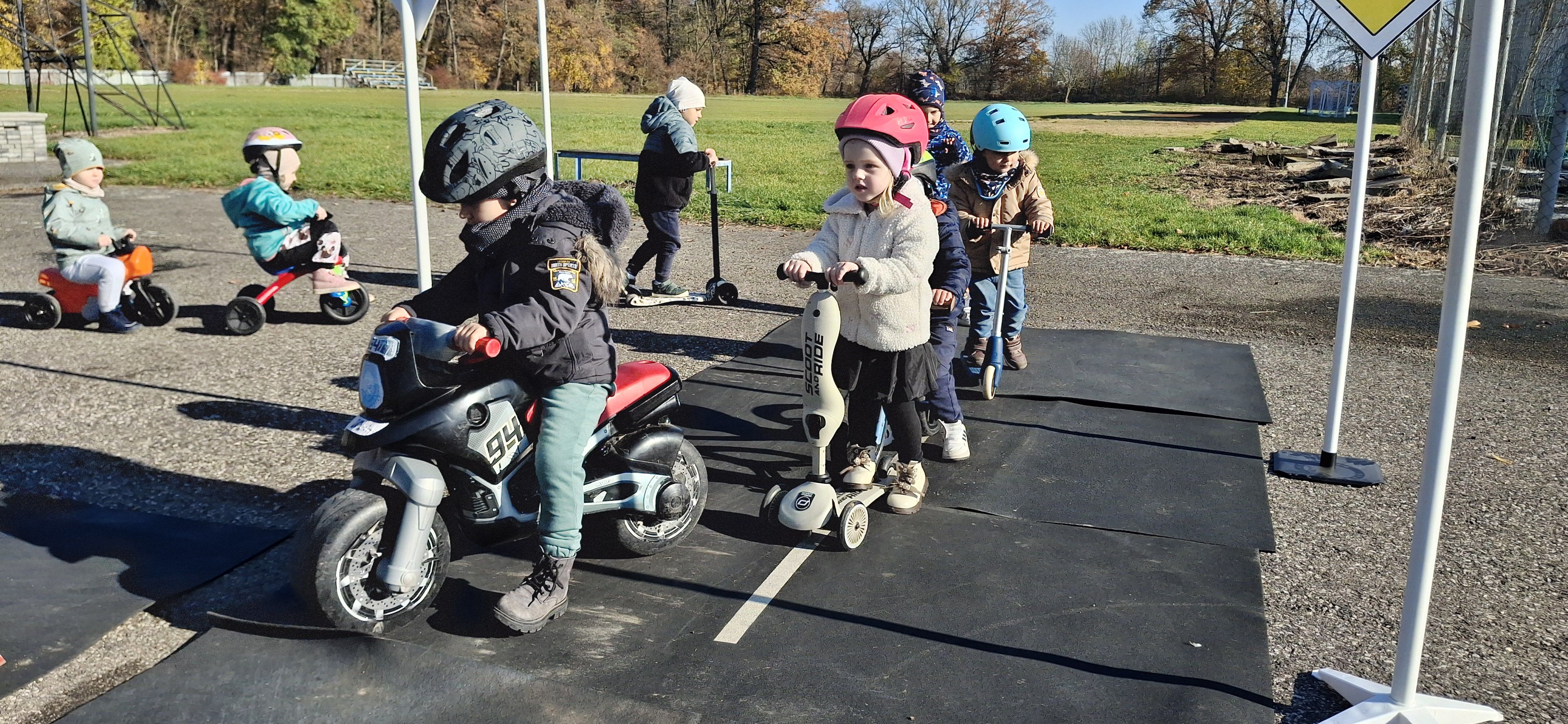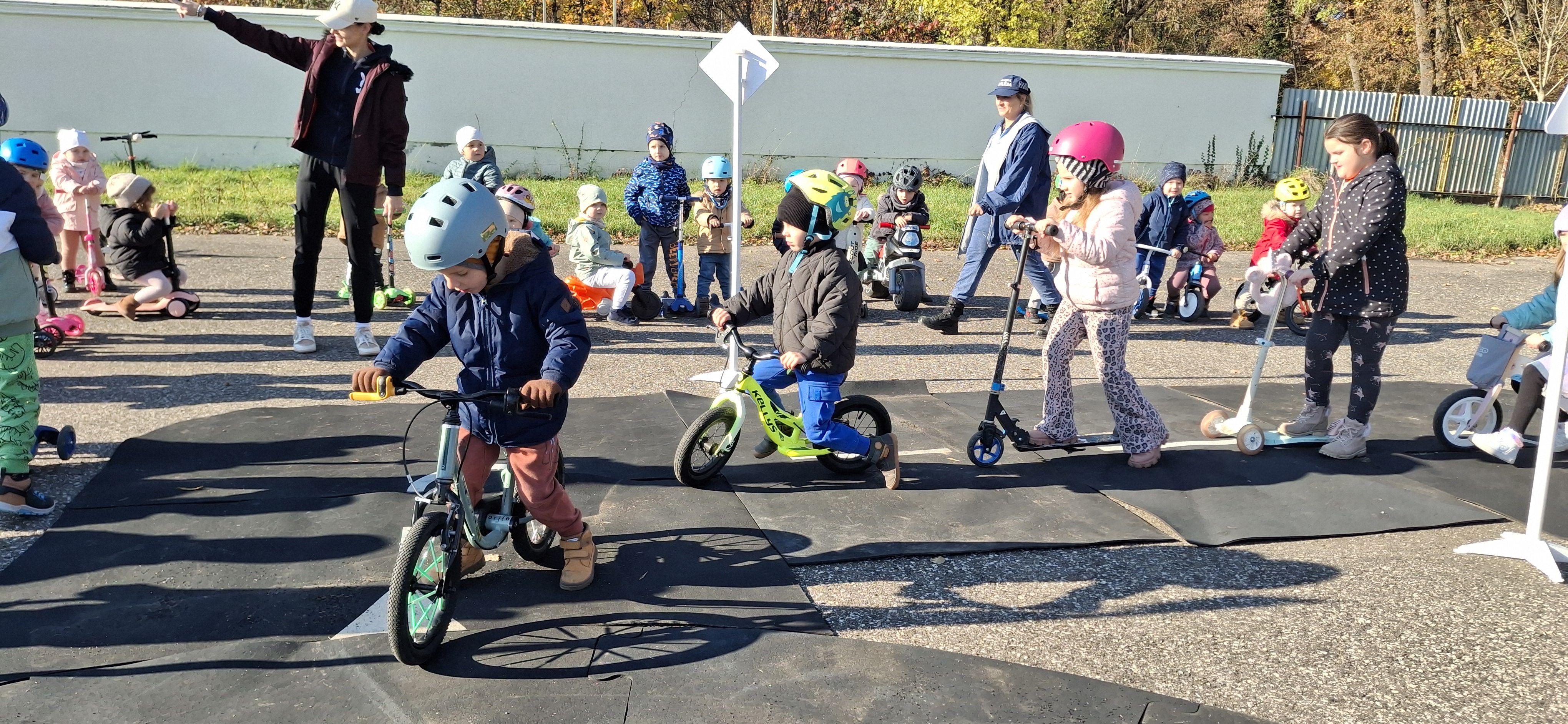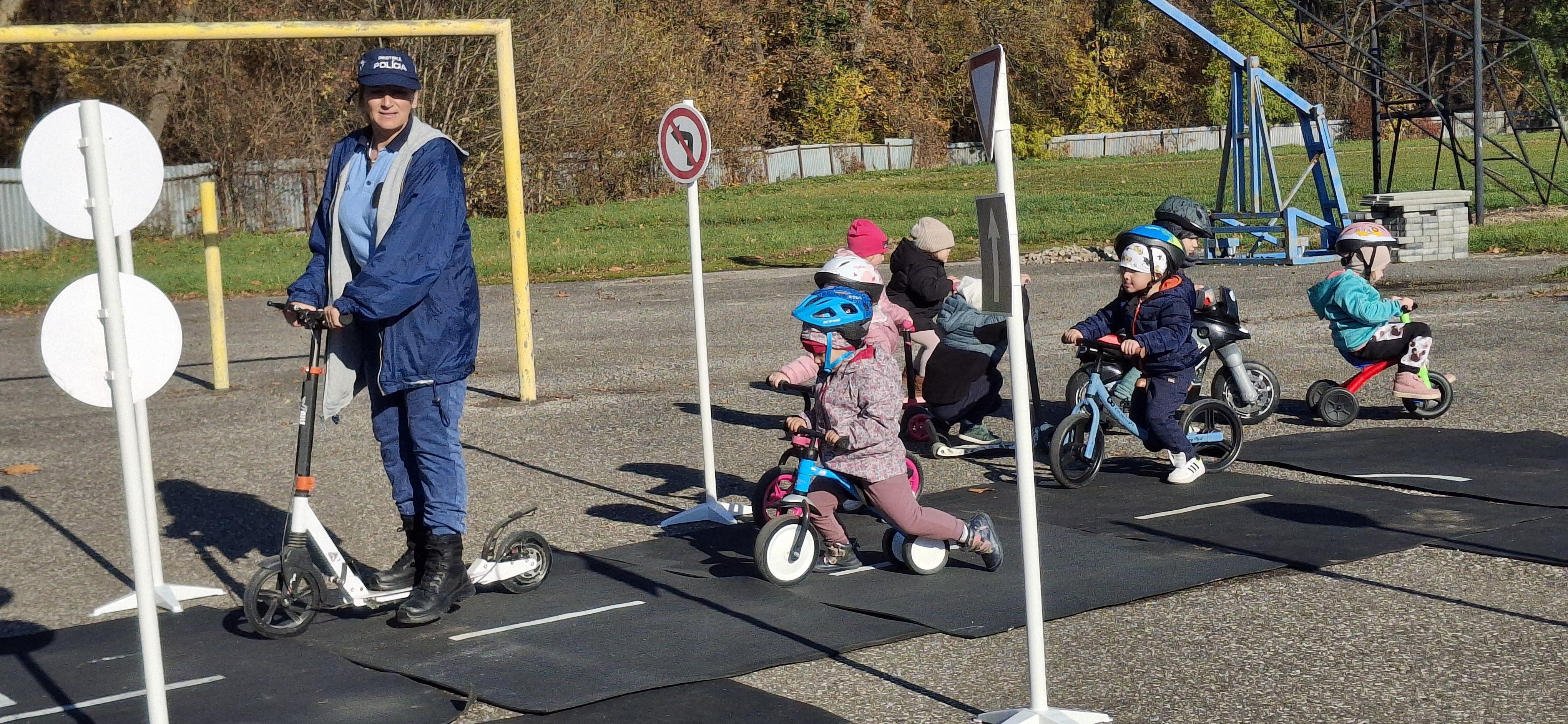 Malí „vodiči“ si všetko hneď aj vyskúšali – jazdu na kolobežkách, odrážadlách a motorkách, rozpoznávanie dopravných značiek v praxi aj to, aké je to sedieť v policajnom aute.