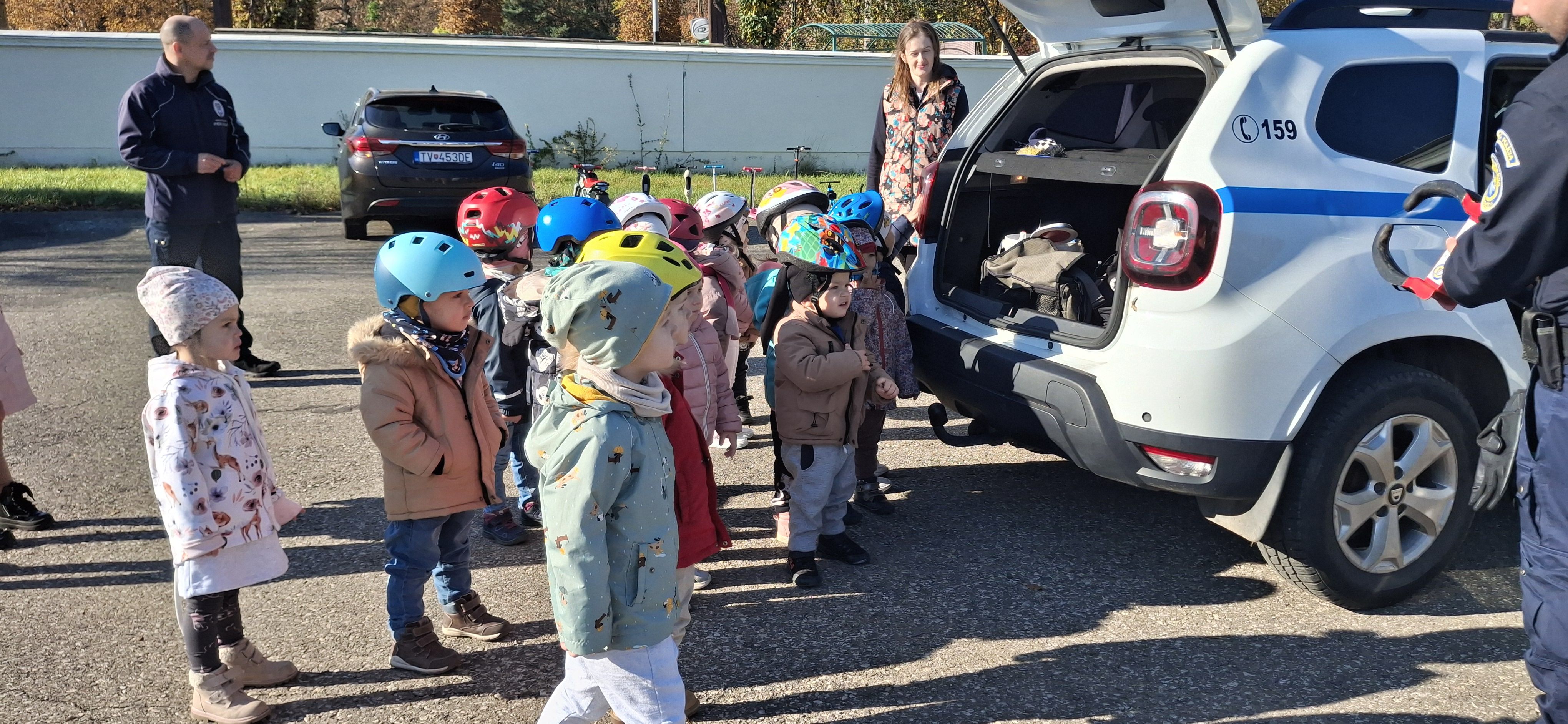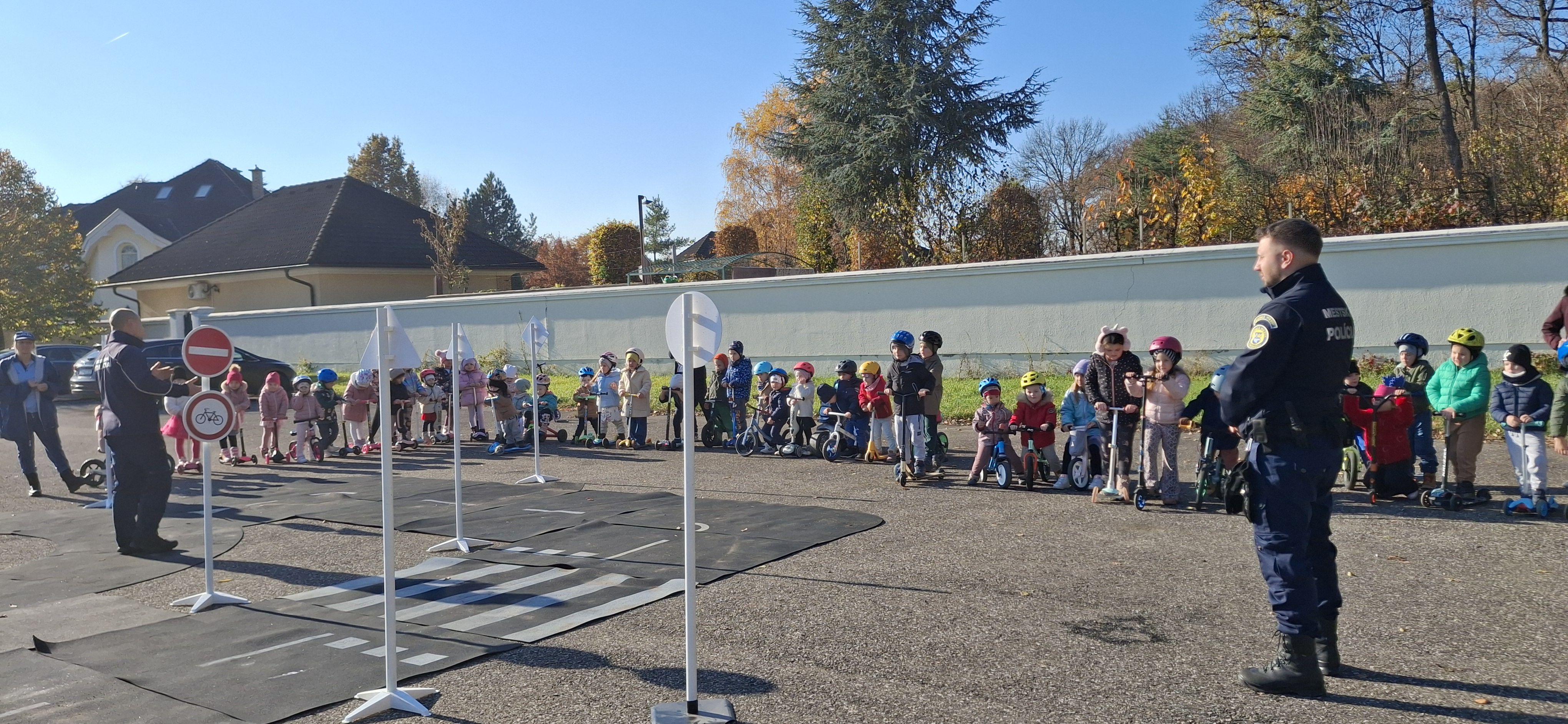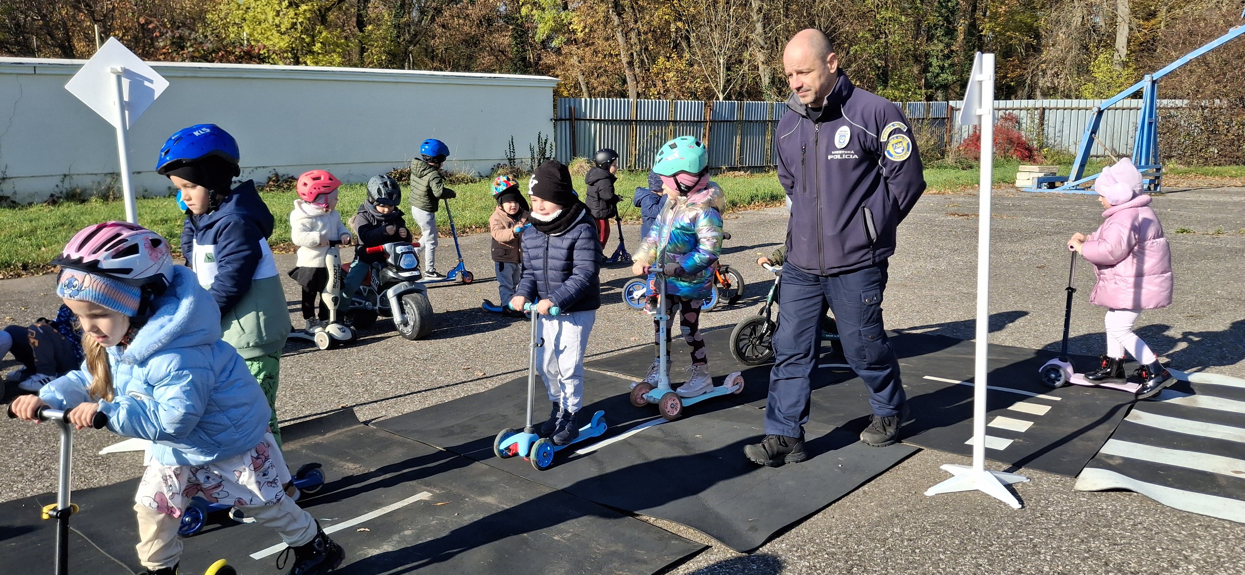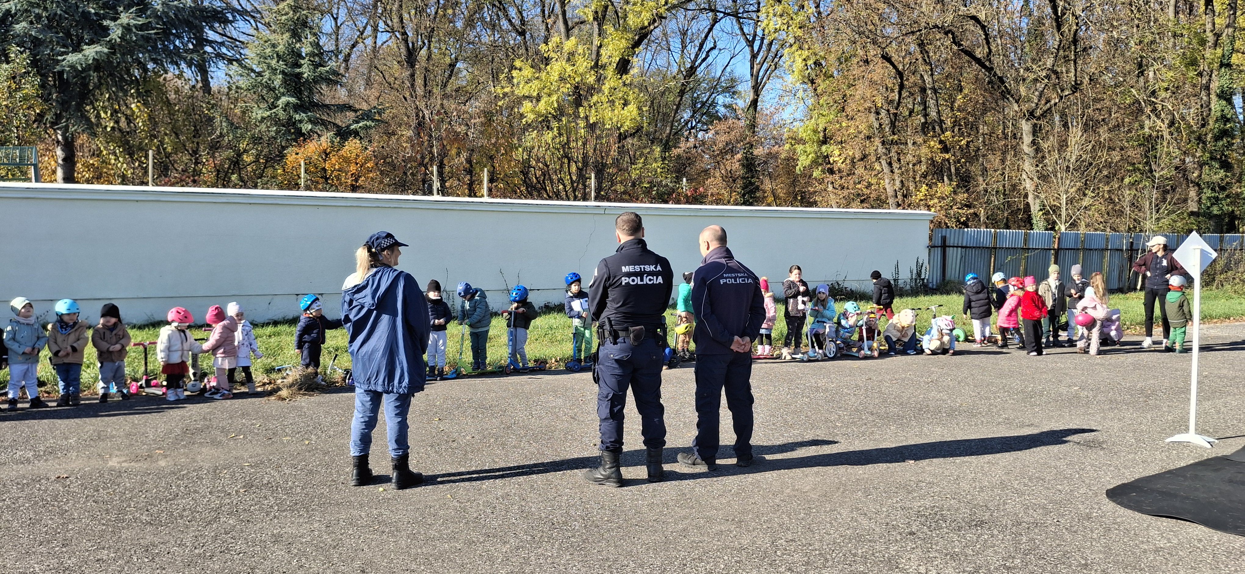 Príslušníci Mestskej polície Trebišov tam privítali takmer štyridsať škôlkarov, ktorým hravou formou vysvetlili základné pravidlá cestnej premávky – ako sa správať na ceste, čo sa smie a čo nie, a prečo je dôležité dávať pozor.