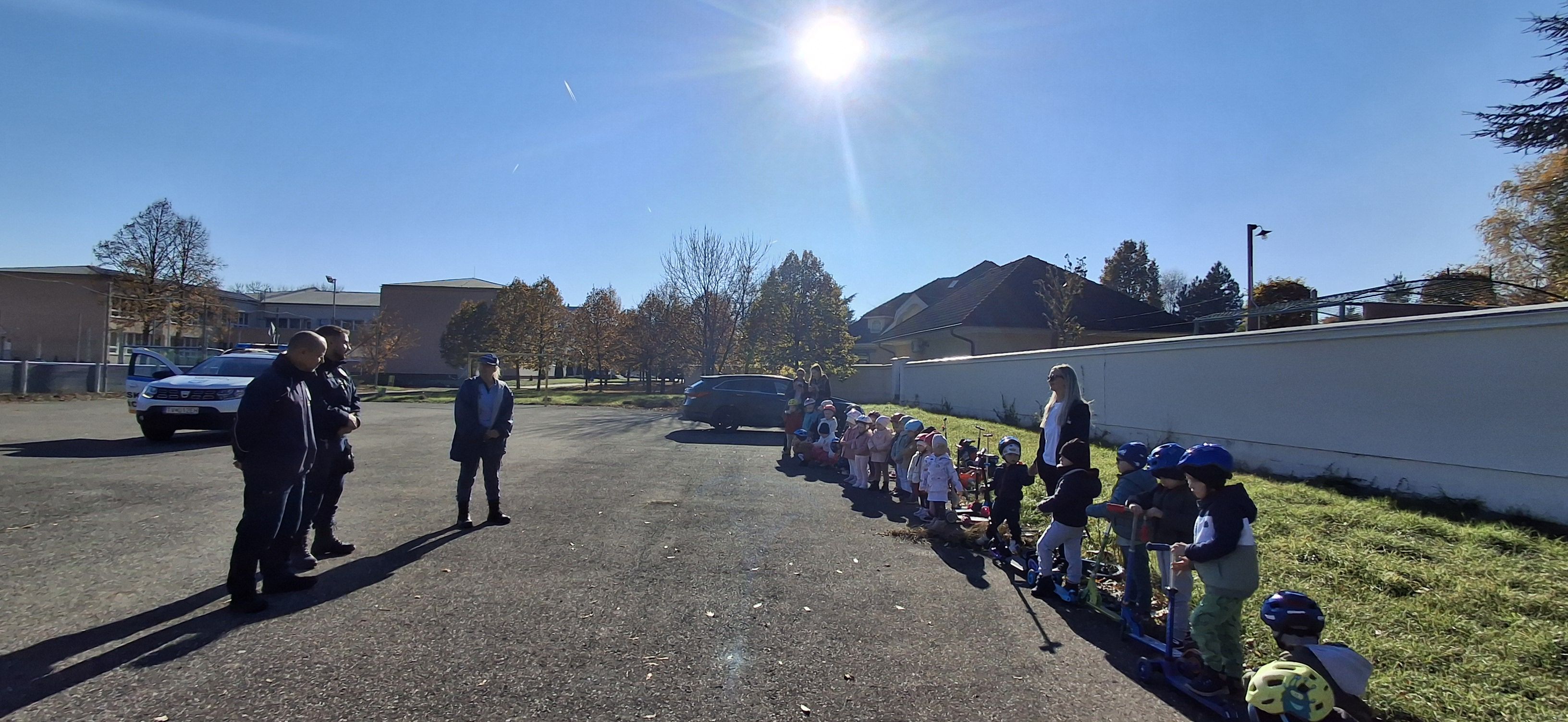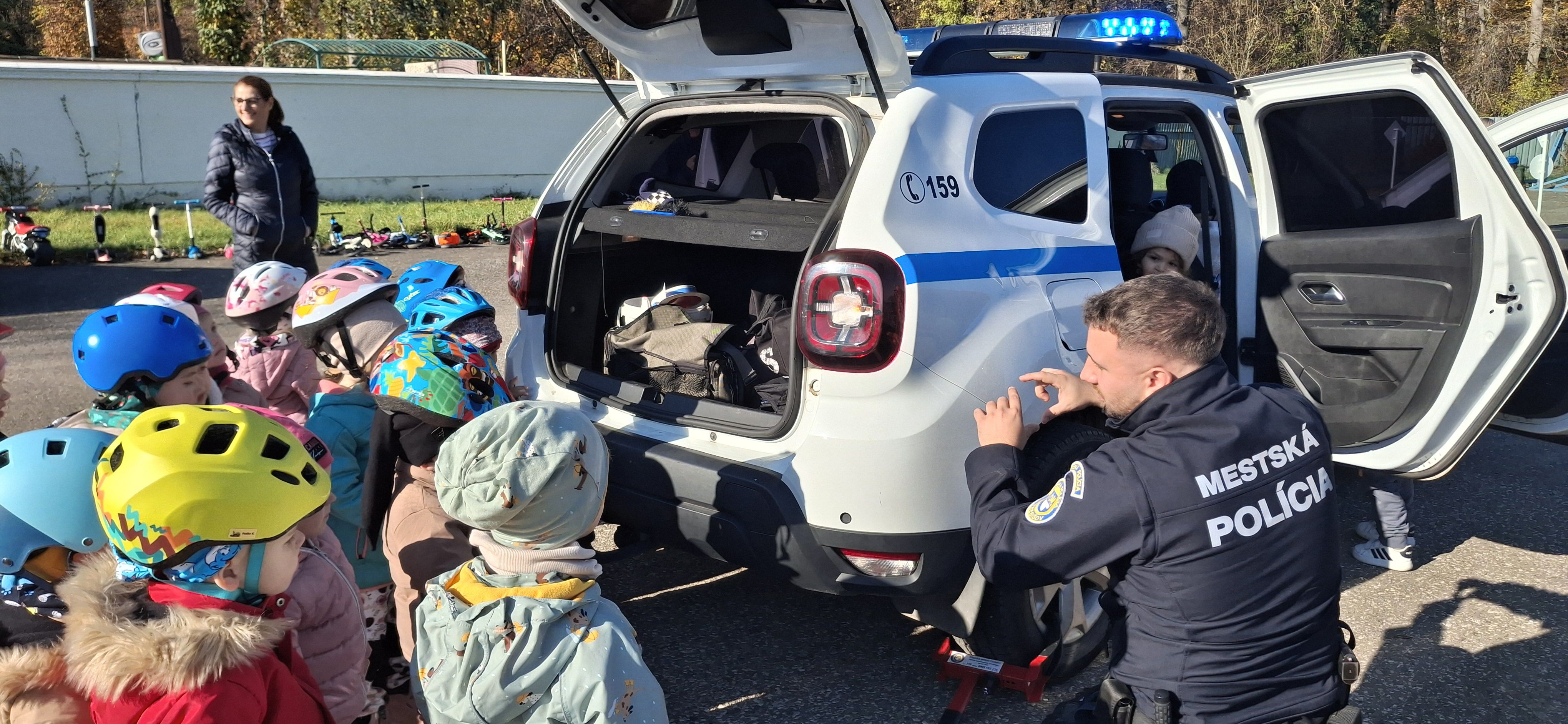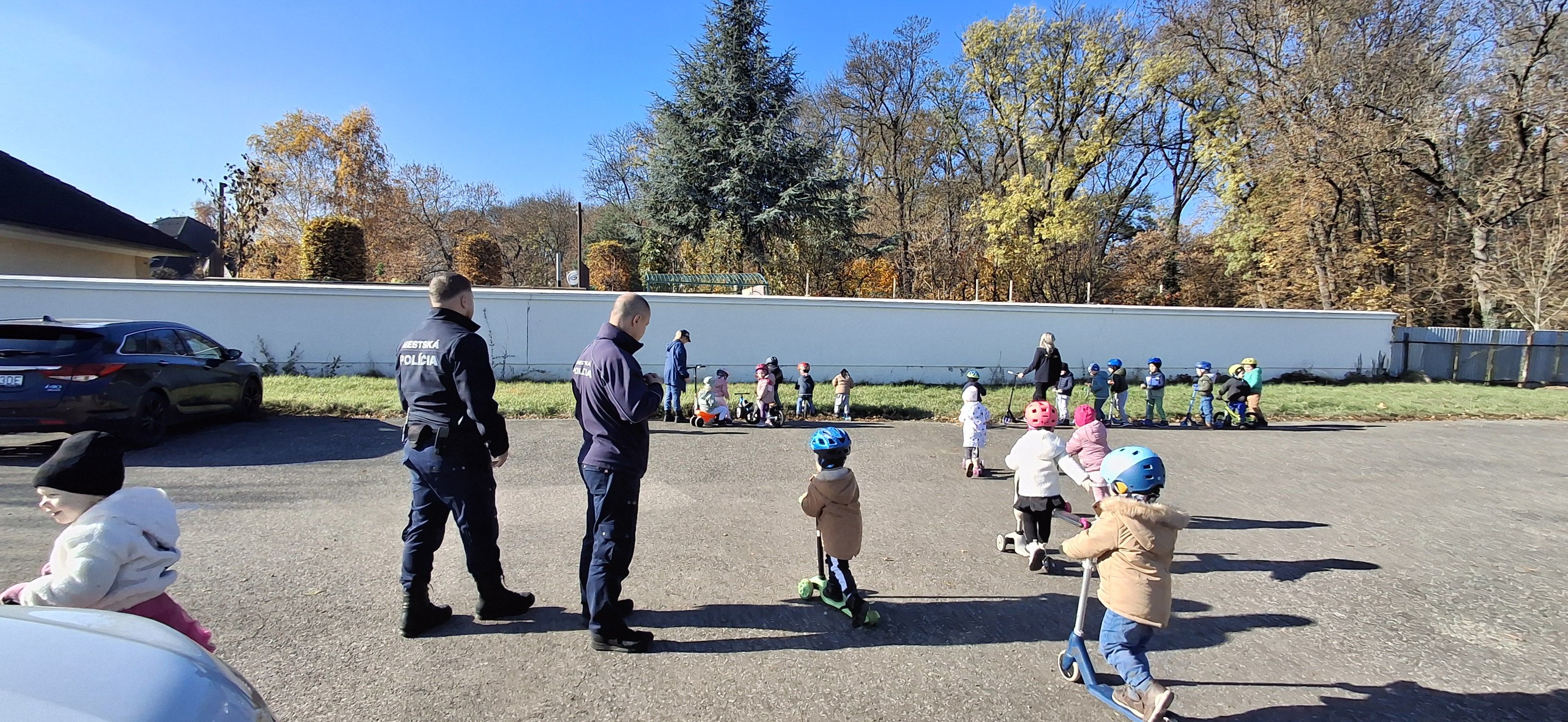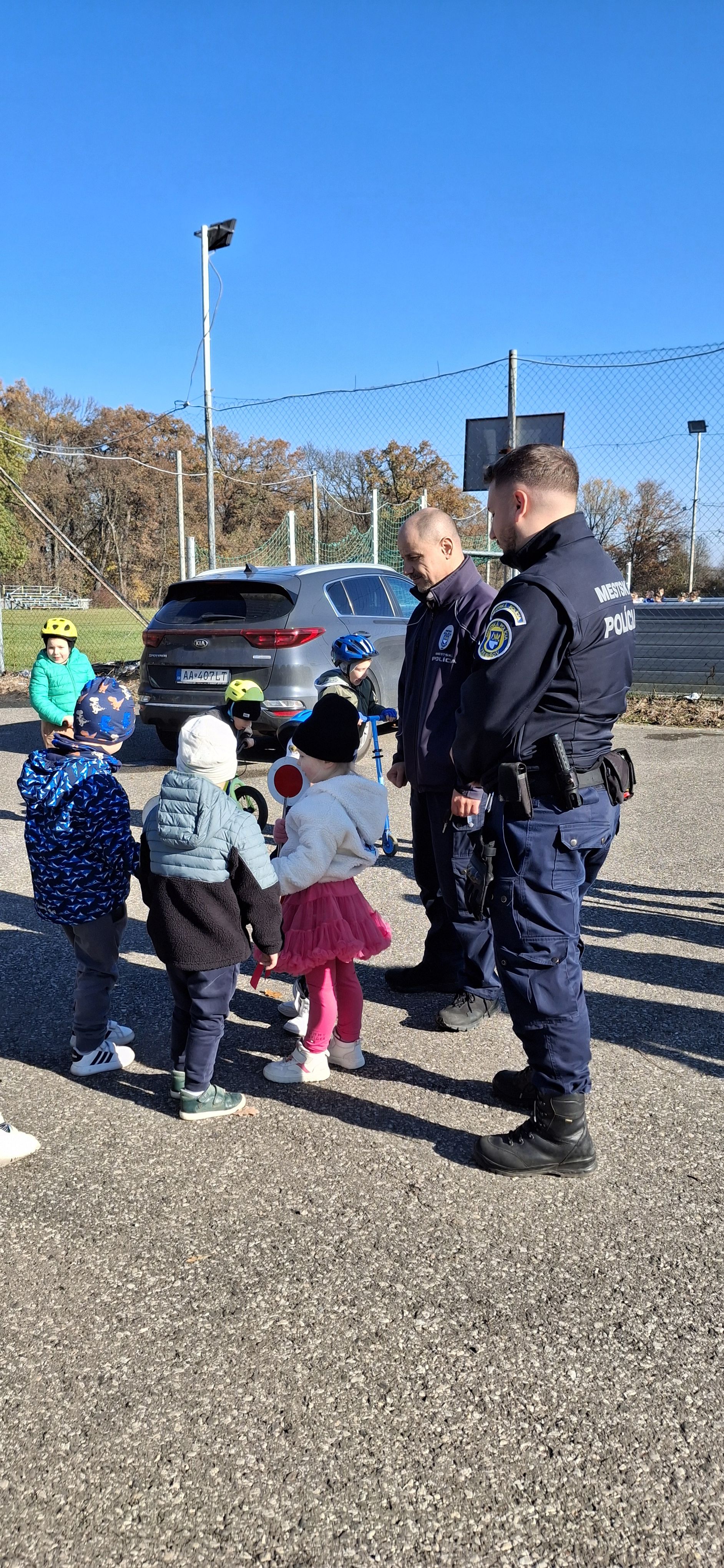 Príslušníci Mestskej polície Trebišov tam privítali takmer štyridsať škôlkarov, ktorým hravou formou vysvetlili základné pravidlá cestnej premávky – ako sa správať na ceste, čo sa smie a čo nie, a prečo je dôležité dávať pozor.
