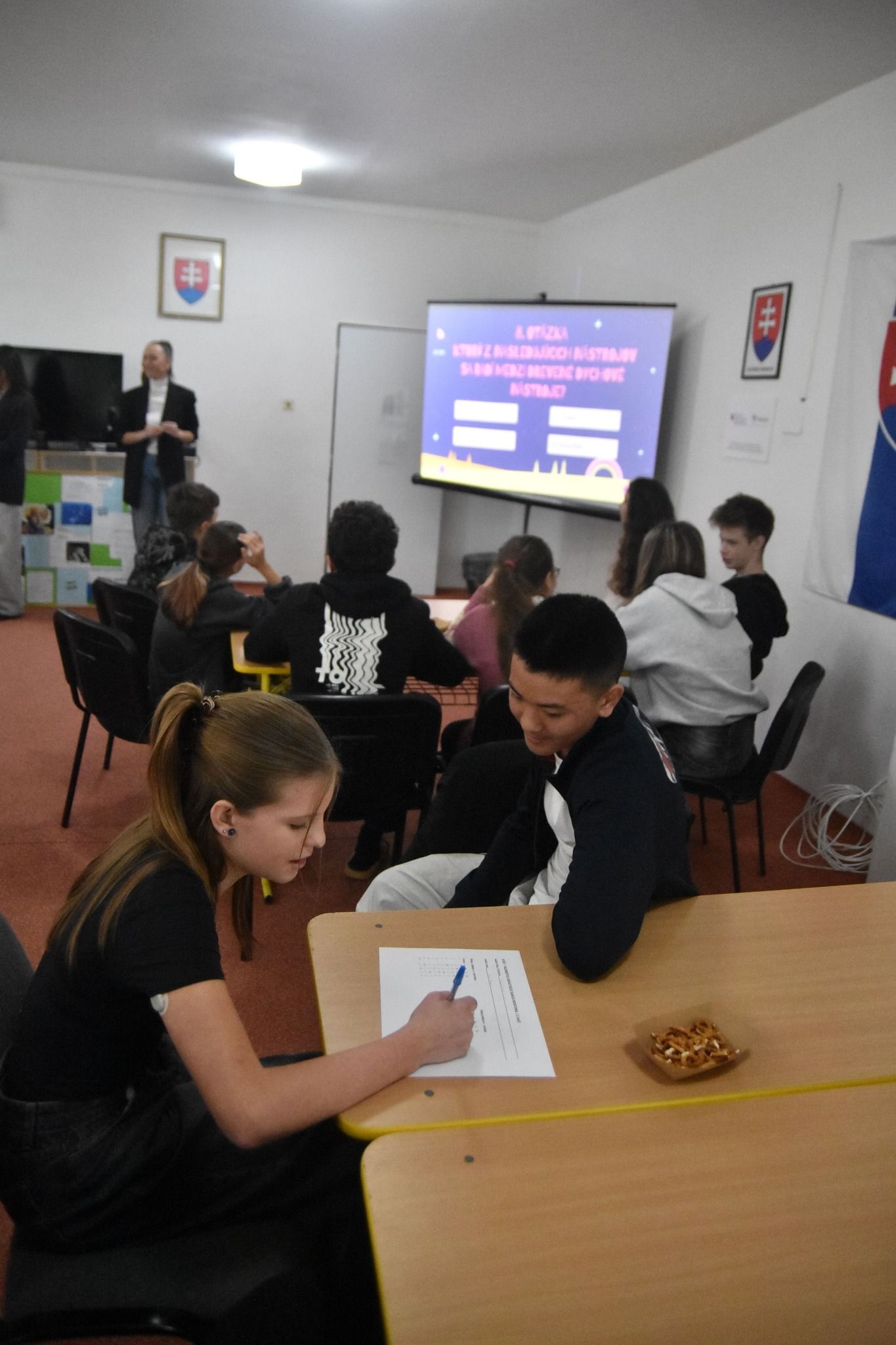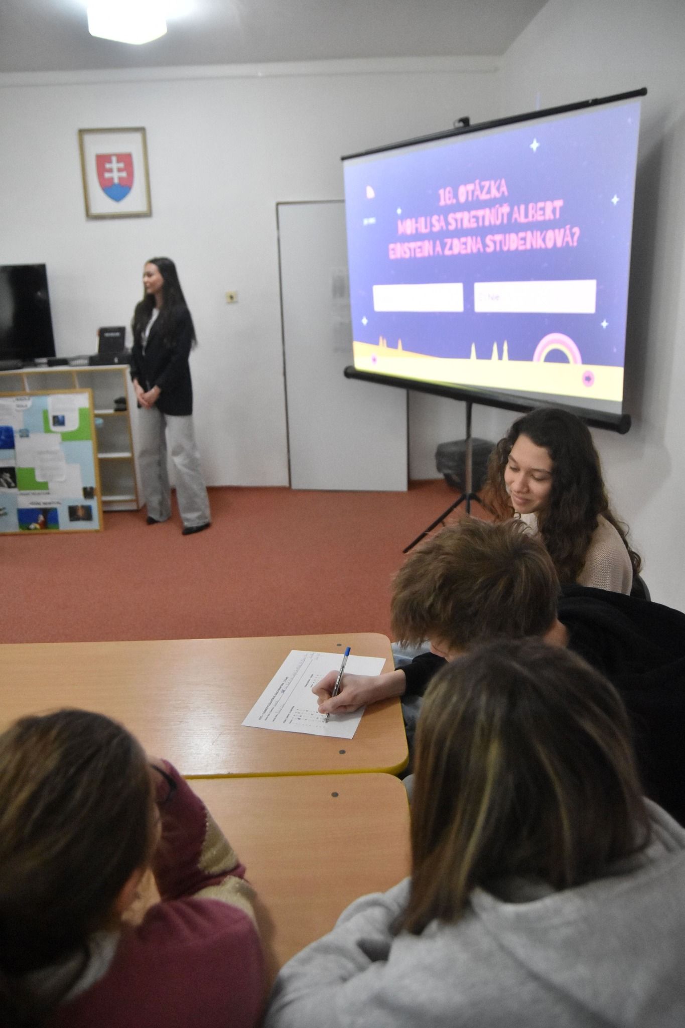 Súťaž sa konala v priestoroch klubovne CVČ, kde si žiaci okrem riešenia úloh užili aj sprievodnú aktivitu v štýle Inkognita - na základe indícií hádali netradičné povolania.