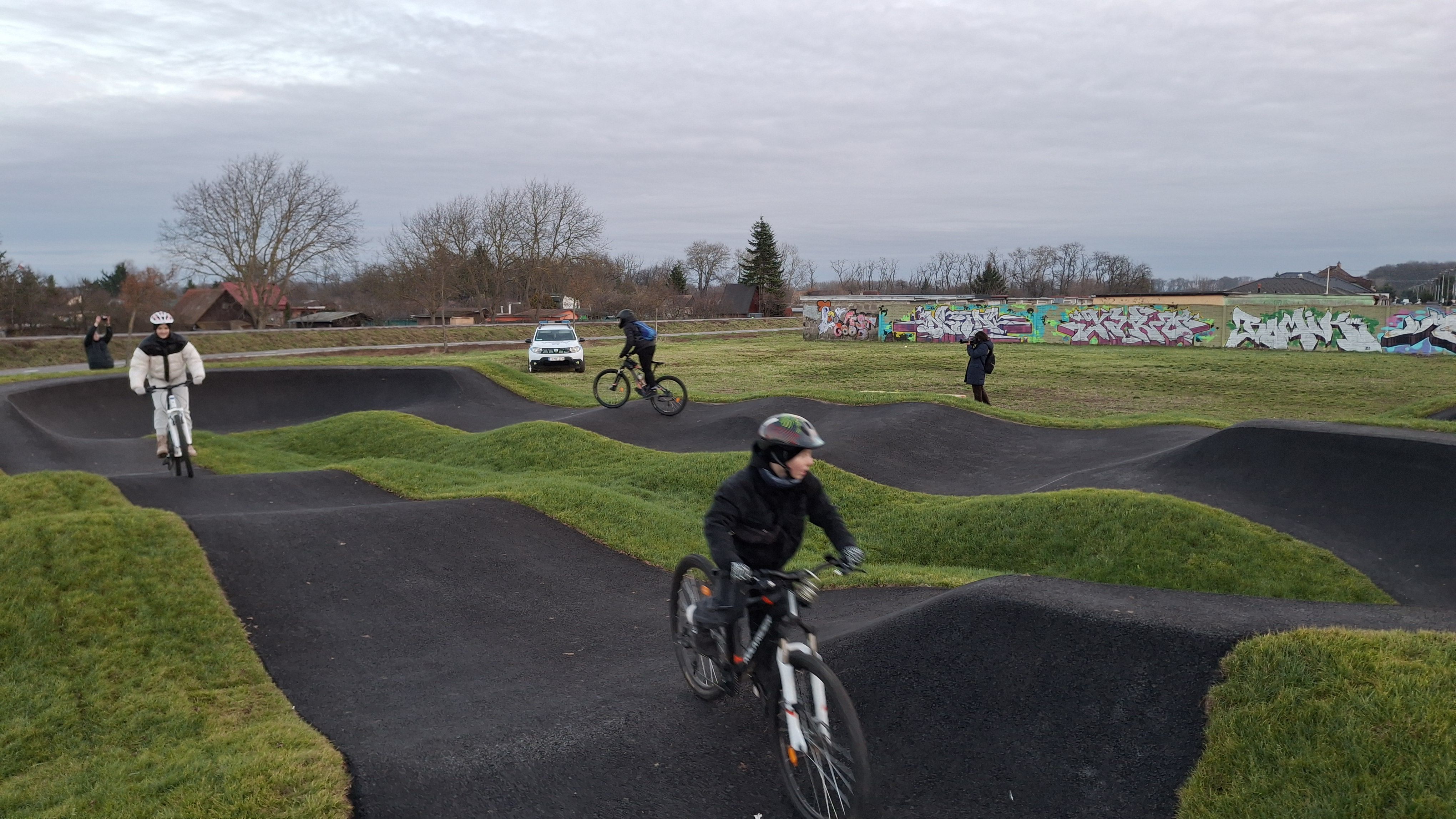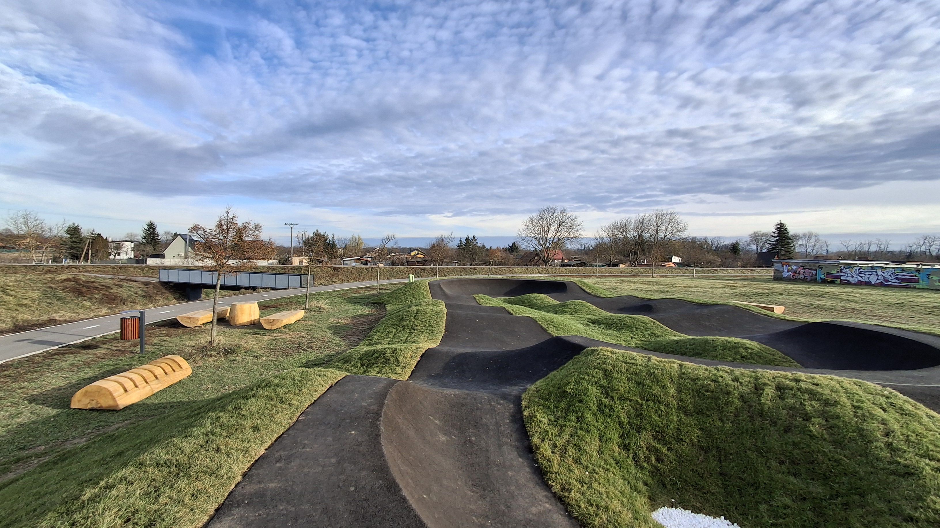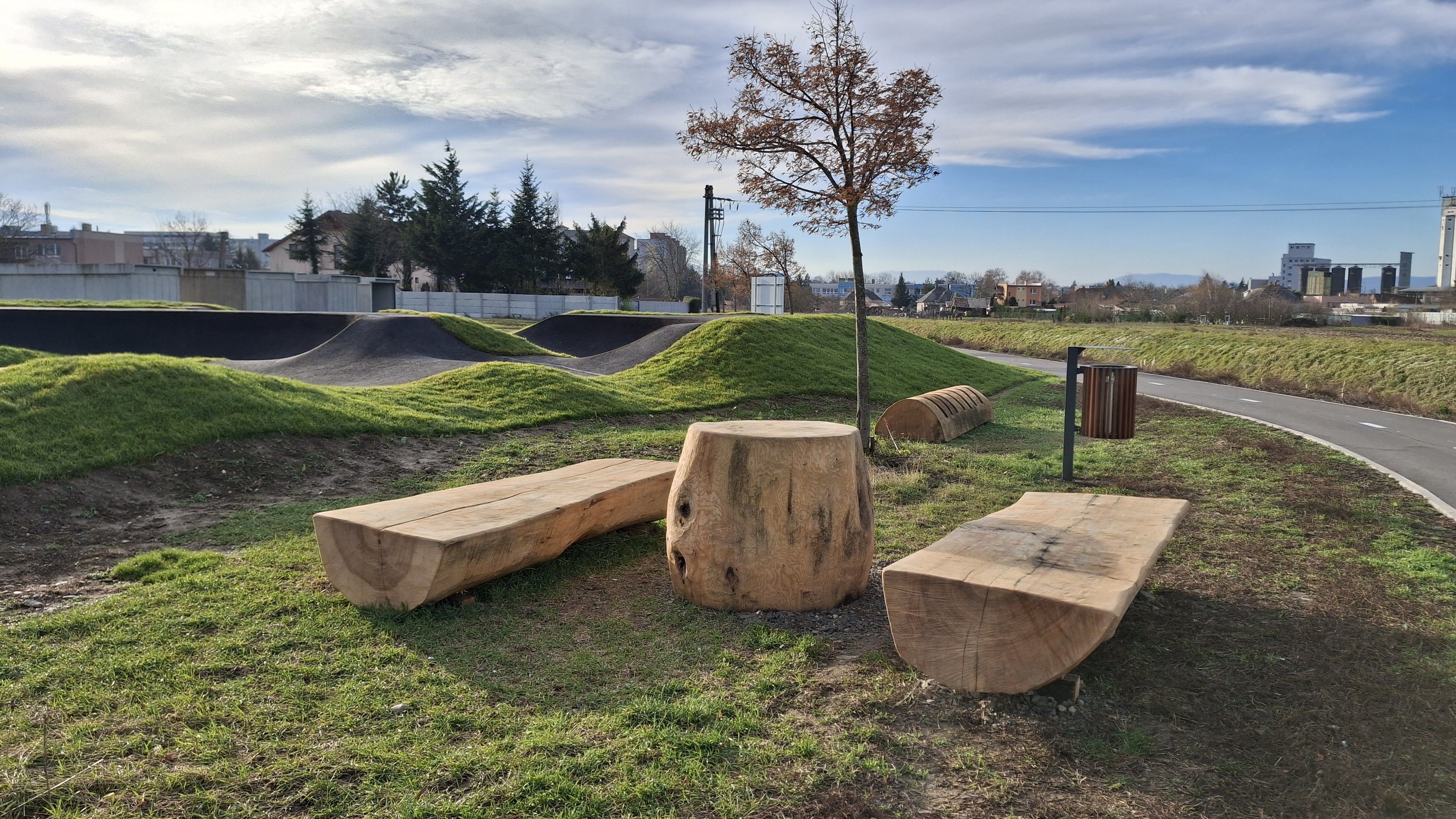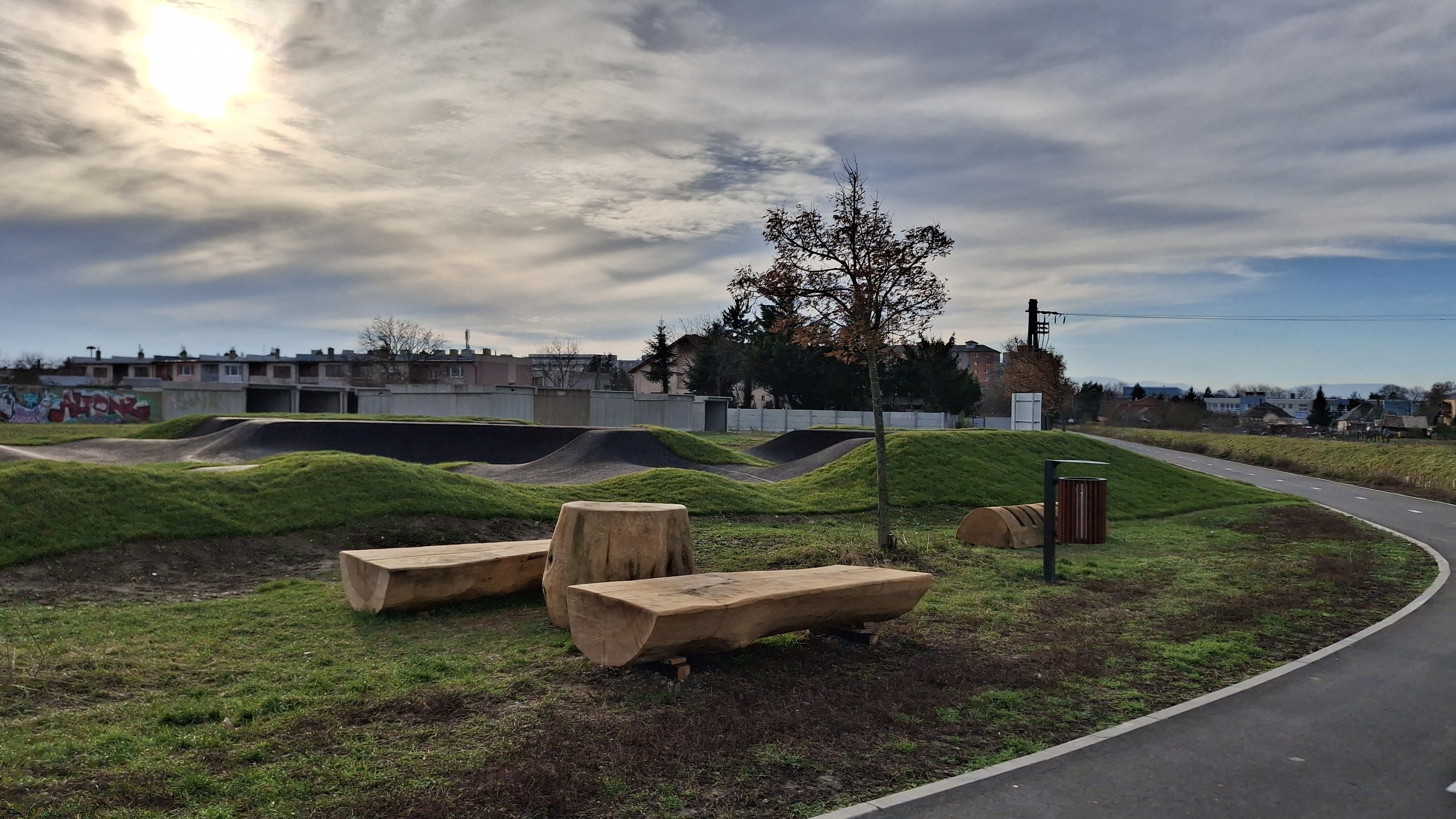 Ešte donedávna nevyužitú plochu okrem modernej dráhy navyše dotvára mobiliár, ktorý zabezpečili Technické služby mesta Trebišov, ktorého súčasťou sú odpadkové koše a zaujímavé drevené sedenie spolu so stojanom na bicykle, ale aj graffiti stena pútavo dotvorená mladými umelcami z nášho mesta.