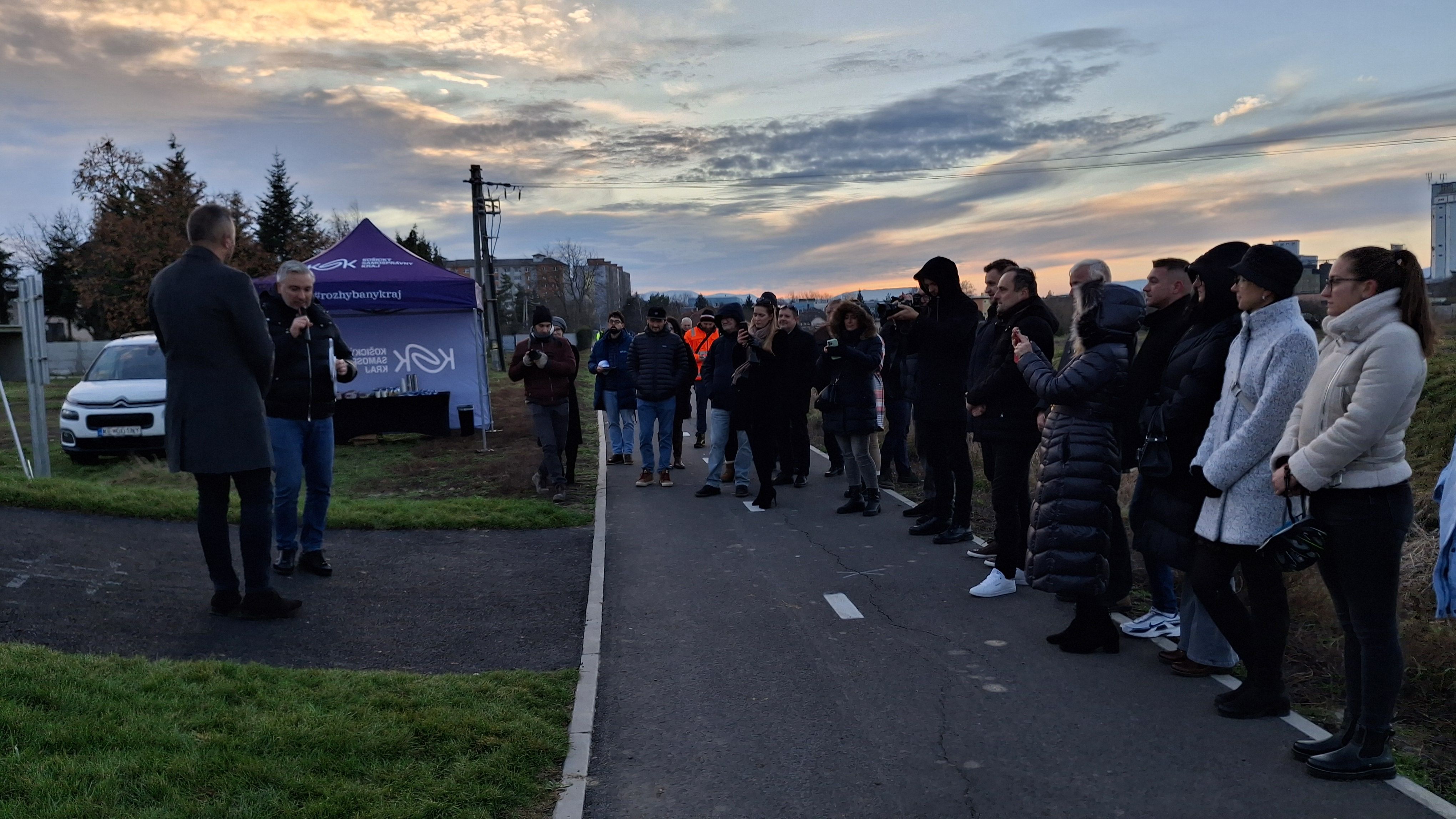 V areáli Vojenských lúčok, za garážovou časťou pri Drieňovci, bol v piatok 28.11.2025 , za účasti predsedu KSK Rastislava Trnku, vedenia mesta na čele s primátorom Marekom Čižmárom, generálneho riaditeľa Správy ciest KSK Vladimíra Žiarneho, poslancov mestského zastupiteľstva, zástupcu dodávateľa a ďalších hostí uvedený do užívania nový moderný pumptrack areál.