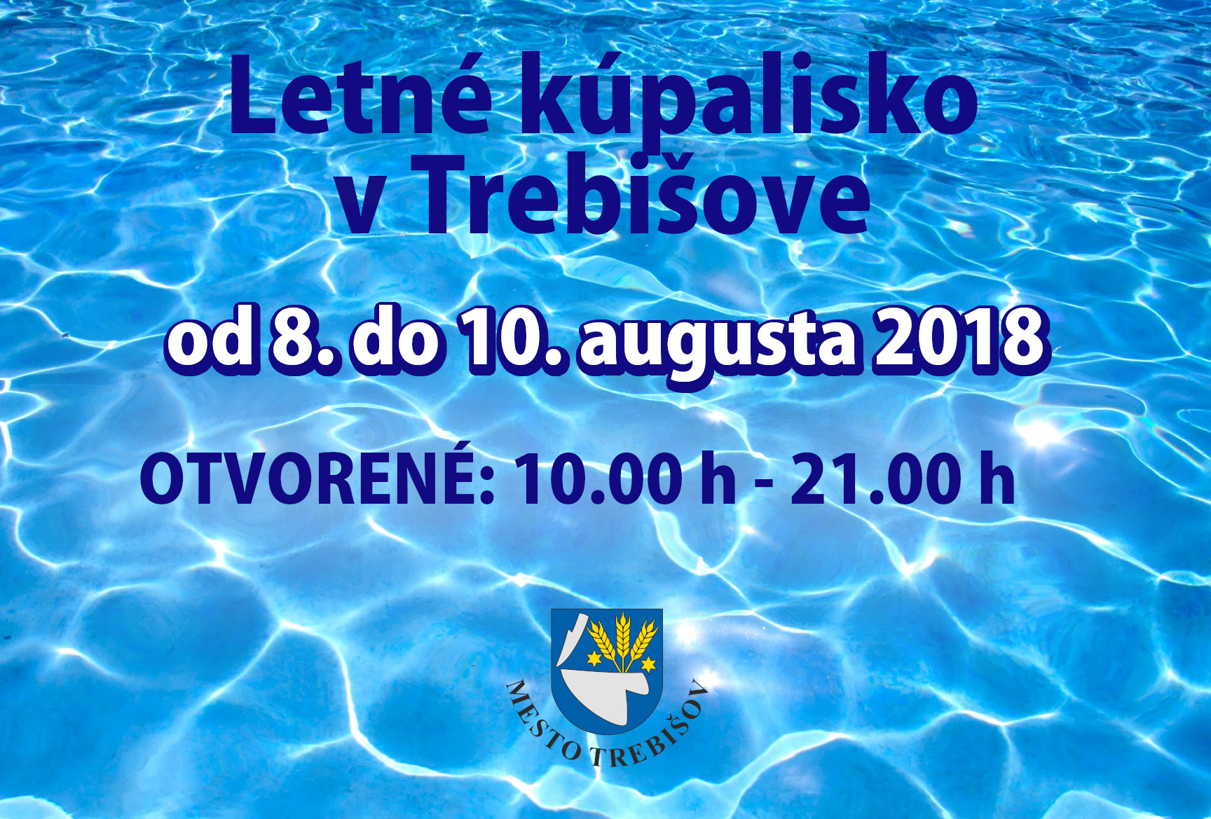 Z dôvodu zvýšeného záujmu o kúpanie počas tropických letných dní sme pre vás od 8.8. do piatka 10.8. predĺžili otváracie hodiny na mestskom kúpalisku do 21.00 h.