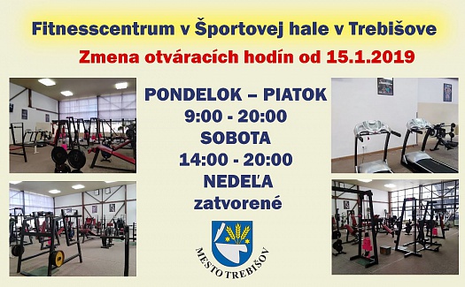 Od 15.1.2019 (utorok) sa mení otváracia doba v mestskom zariadení - posilňovňa v športovej hale.