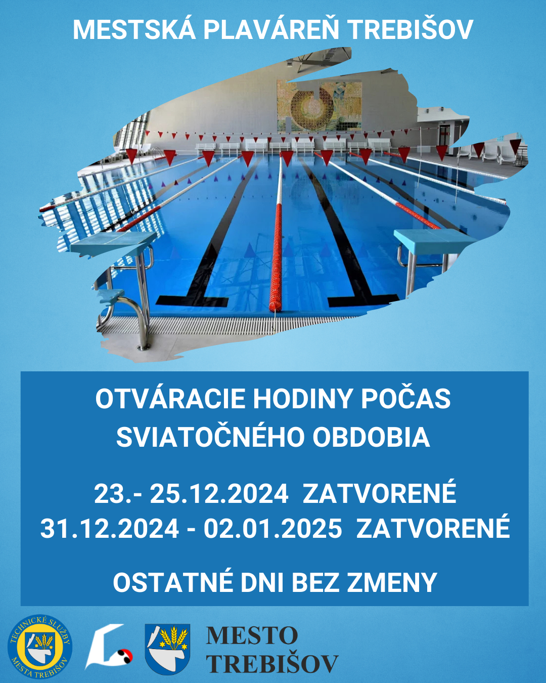 Mestská plaváreň Trebišov bude mať počas sviatočného obdobia upravené otváracie hodiny: