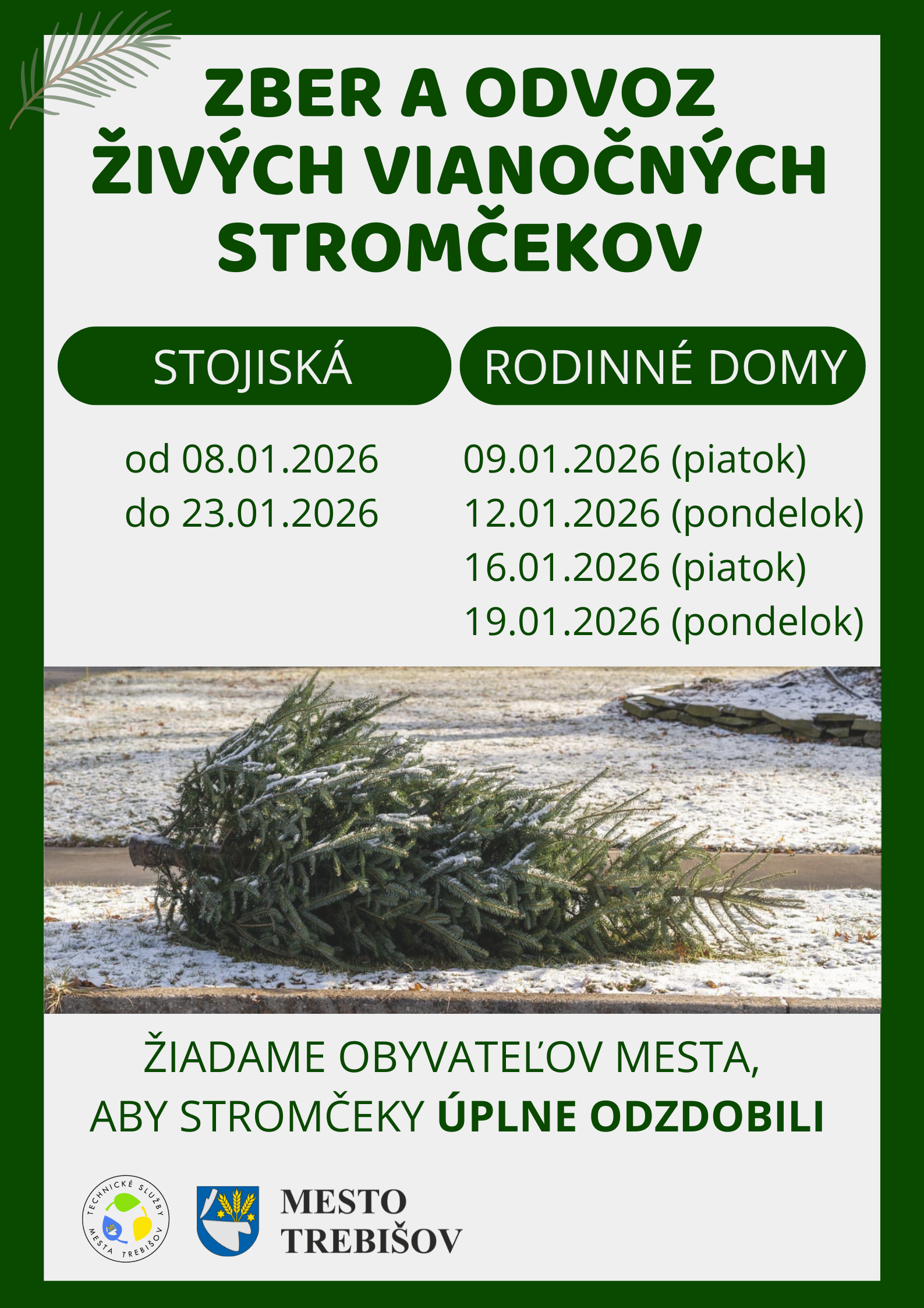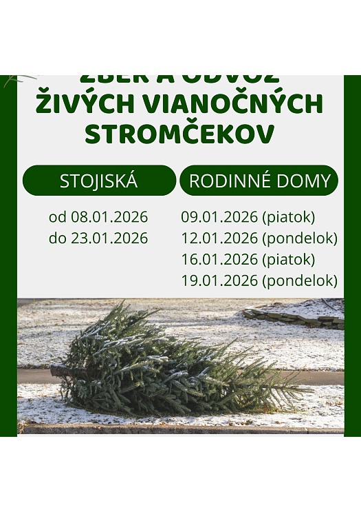 Zber na stojiskách prebehne v termíne od 08.01.2026 (štvrtok) do 23.01.2026 (piatok)