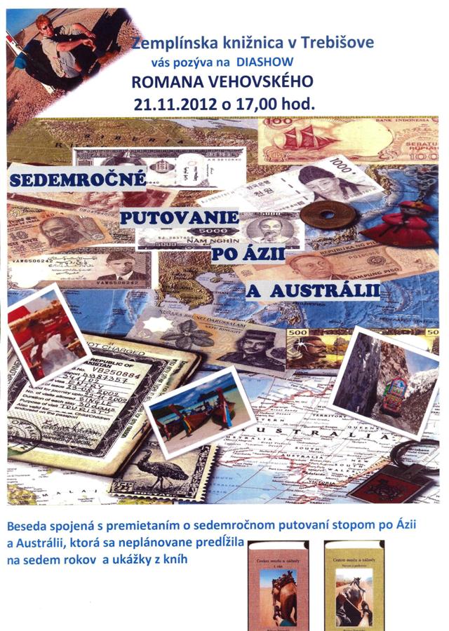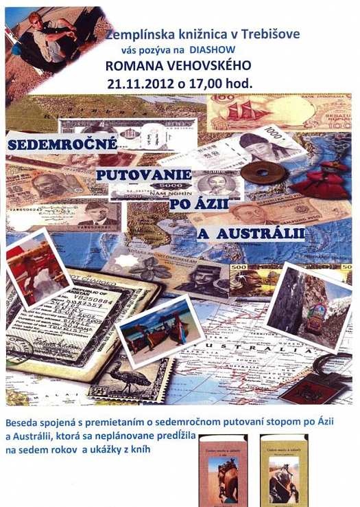 Beseda je spojená s premietaním o sedemročnom putovaní stopom po Ázii a Austrálii, ktorá sa neplánovane predlžila na sedem rokov.