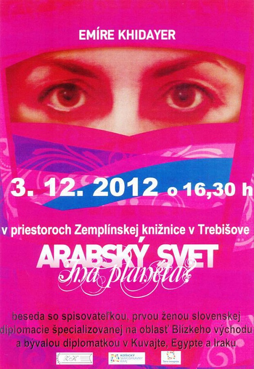 Zemplínska knižnica v Trebišove Vás pozýva na zaujímavú besedu so spisovateľkou EMÍRE KHIDAYER , autorkou bestsellerov o skutočnom arabskom svete, ktorá bola prvou ženou v slovenskej diplomacii pre oblasť Blízkeho východu.