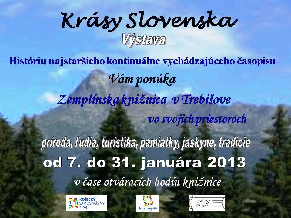Výstava s názvom „Krásy Slovenska“ v priestoroch Zemplínskej knižnice v Trebišove zachytáva históriu najstaršieho pravidelne vychádzajúceho časopisu na Slovensku, ktorý vychádzal celých 90 rokov.