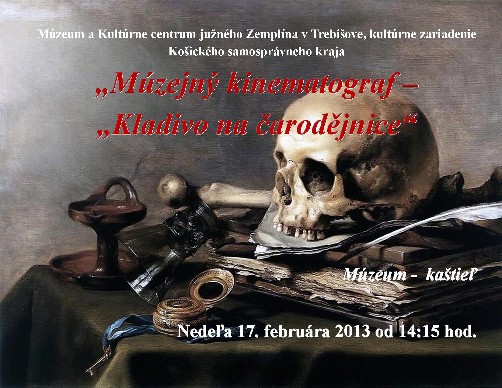 Sprievodným podujatím bude Múzejný kinematograf – „Kladivo na čarodějnice“ v zrkadlovej sieni trebišovského kaštieľa. Jeden z najznámejších filmov režiséra Otakara Vávry vznikol podľa románu Václava Kaplického a podľa dochovaných súdnych zápisov z čarodejníckych procesov v období 1678-1695. Každý motív film podáva v komornej atmosfére , zobrazujúc intimitu postavy čo ešte viac vytvára atmosféru dusna a osudovosti, z ktorej niet úniku. Pri tvorbe scenára spolupracoval Otakar Vávra s ďalšou významnou osobnosťou československého filmu s Ester Krumbachovou a vytvorili tak analógiu s politickými procesmi z 50tych rokov 20teho stočia, snažia sa poukázať na vplyv neobmedzenej moci na život obyčajného človeka. Táto podobnosť mala za následok to, že film sa dostal v roku 1970 do „trezoru“ .