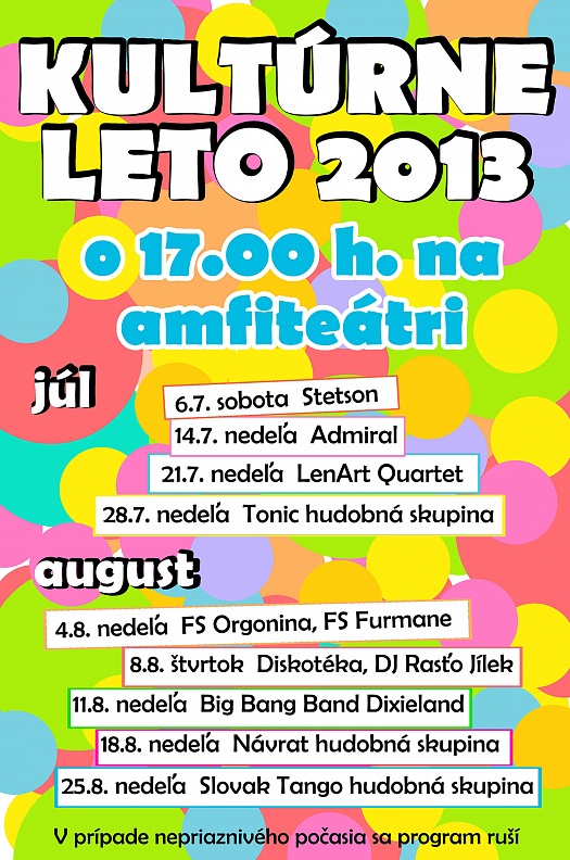 Mesto Trebišov Vás srdečne pozýva na kultúrne podujatia, ktoré pre vás pripravilo počas celého leta. Ponuka je ozaj široká, preto prajeme príjemnú zábavu.