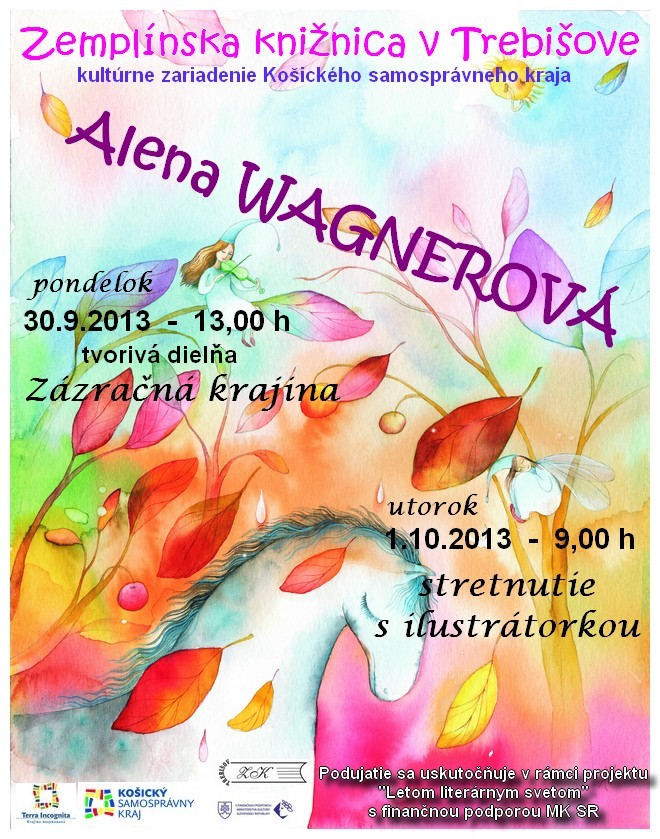 Ponúkame vám stretnutie so slovenskou ilustrátorkou Alenou WAGNEROVOU pondelok 30. septembra 2013 o 13.00 h a utorok 1. októbra 2013 o 9.00 h v priestoroch Zemplínskej knižnice v Trebišove.