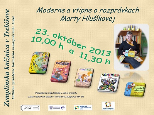 Moderne a vtipne o rozprávkach Marty Hlušíkovej na besede so žiakmi základných škôl 23.10.2013 o 10.00 h a 11.30 h v Zemplínskej knižnici v Trebišove.