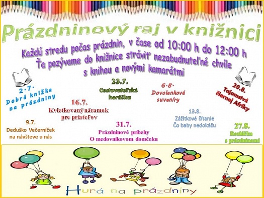 Zemplínska knižnica v Trebišove pozýva všetky prázdninujúce deti na oddelenie literatúry pre deti a mládež, kde je pre ne každú stredu pripravený bohatý a zaujímavý program.