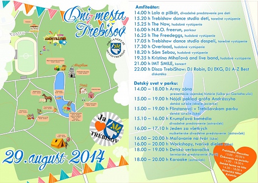 Program Dní mesta Trebišov, ktoré sa uskutočnia 29.8. - 30.8.2014 v Mestskom parku.
