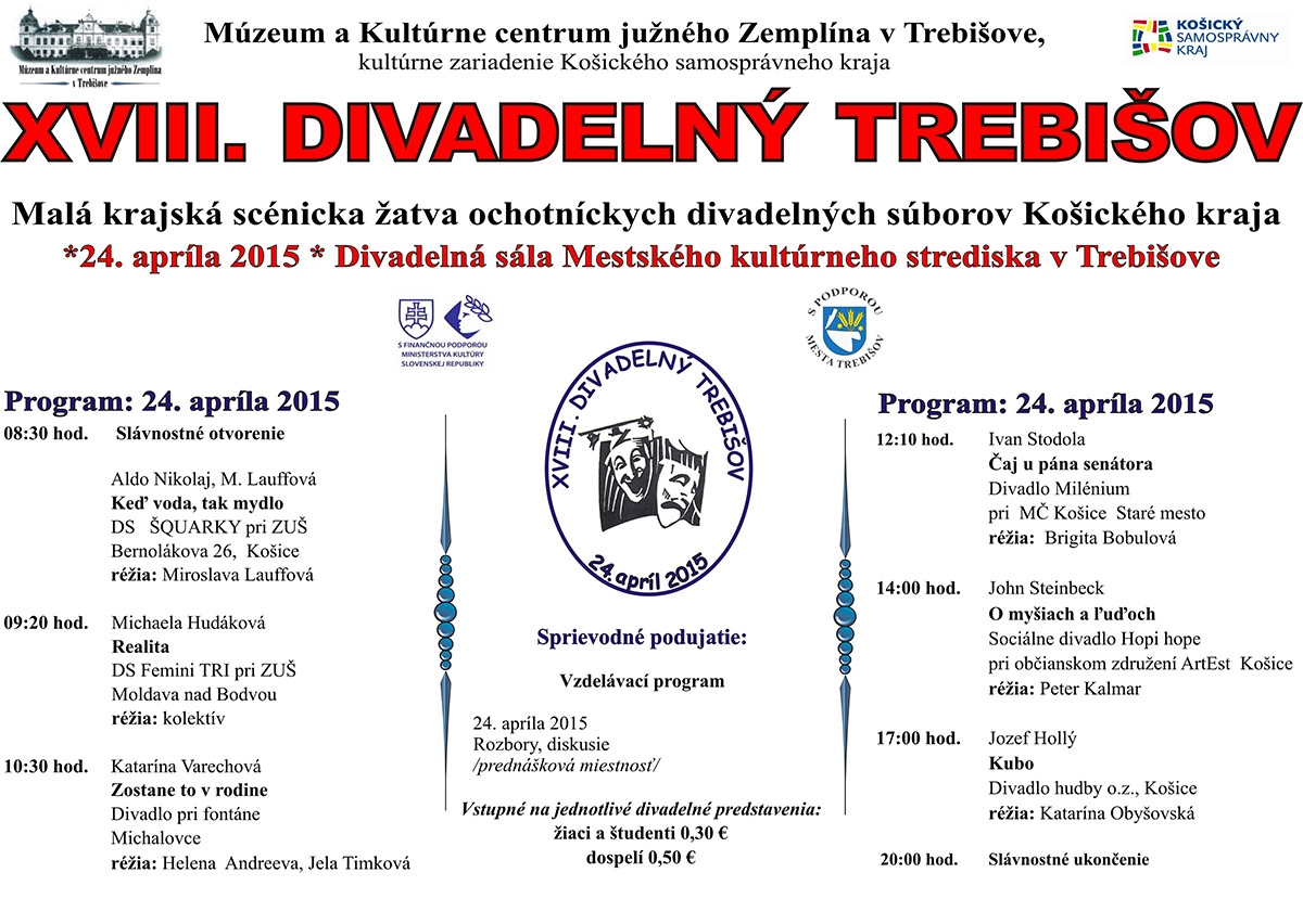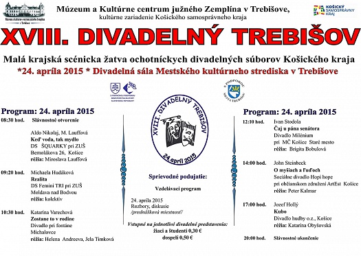 Malá krajská scénická žatva ochotníckych divadelných súborov Košického kraja sa uskutoční 24. apríla 2015 v Divadelnej sále Mestského kultúrneho strediska v Trebišove