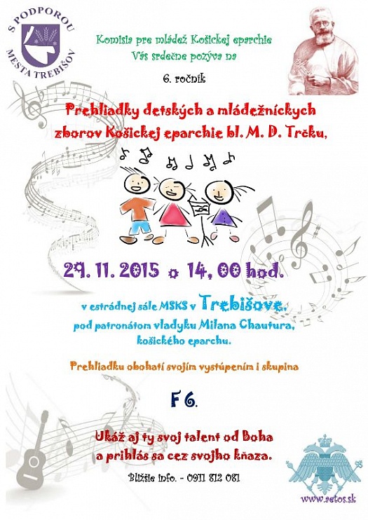 Komisia pre mládež gréckokatolíckej eparchie Košice organizuje 6. ročník Prehliadky detských a mládežníckych zborov Košickej eparchie bl. M.D.Trčku, ktorá sa uskutoční 29.11.2015 o 14.00 h v estrádnej sále Mestského kultúrneho strediska v Trebišove. Podujatie sa koná pod patronátom vladyku Milana Chautura, košického eparchu a s podporou mesta Trebišov.