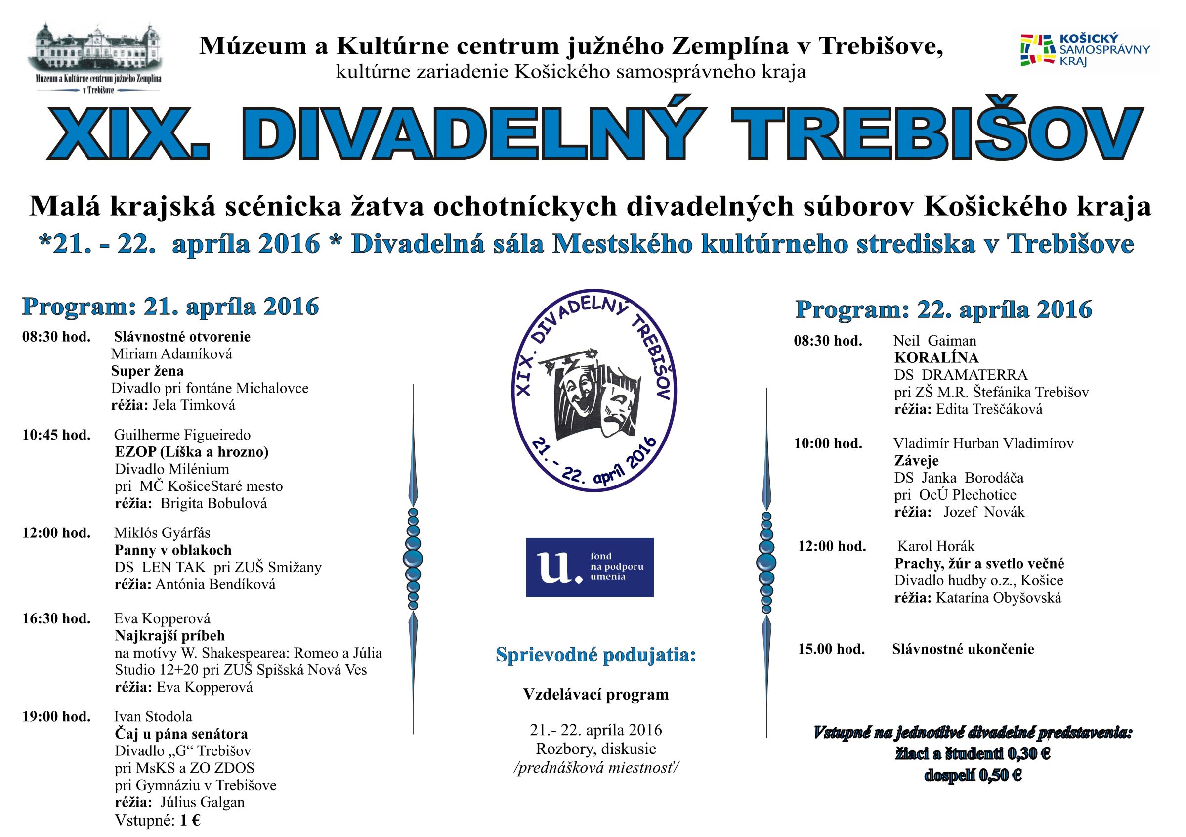 Program Divadelného Trebišova nájdete na priloženom plagáte.