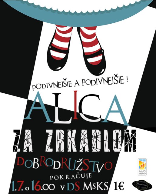 Mladí ochotníci z divadelného kurzu MsKS a mesta Trebišov sa predstavia v hre s názvom Alica za zrkadlom – dobrodružstvo pokračuje. Alicina fantázia je bez hraníc. Tento raz sa dostane do krajiny za zrkadlom, kde ju čakajú veci veľmi podivné. Voľné pokračovanie dobrodružstiev je určené všetkým, ktorí sa nechcú nudiť.