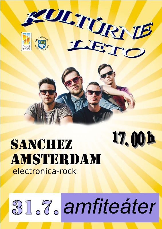 Kultúrne leto 2016 v Trebišove obohatí žáner electronica-rock v podaní chlapcov z Sanchez Amsterdam. Vystúpenie si Trebišovčania môžu pozrieť poslednú júlovú nedeľu 31.7.2016 o 17.00 h v amfiteátri mestského parku v Trebišove. Hosťovať bude v Trebišove aj predkapela ESO (pop-rock).