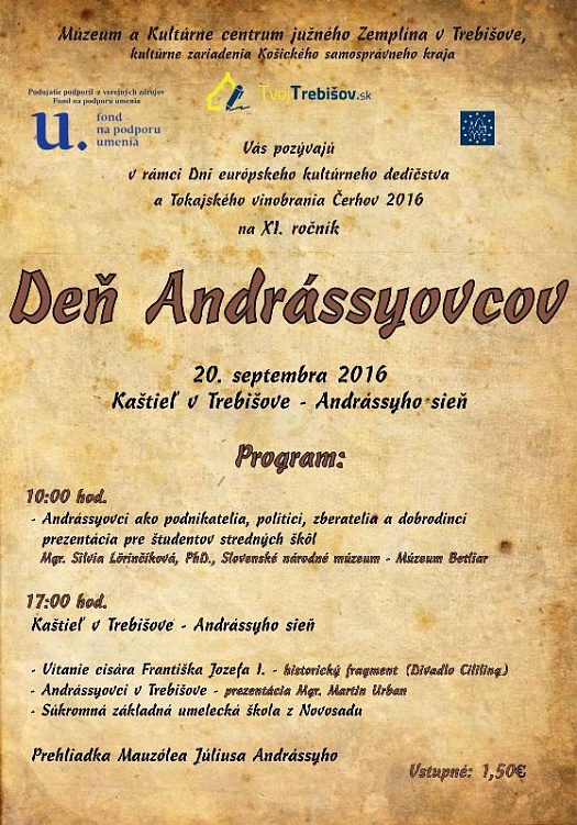 Múzeum a Kultúrne centrum južného Zemplína organizuje utorok 20. septembra 2016 XI. ročník Dňa Andrássyovcov.