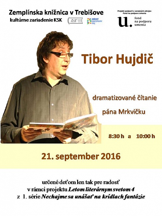 Pán Mrkvička navštívi Zemplínsku knižnicu v Trebišove tentokrát 21. septembra 2016 o 8:30 h a 10:00 h. Jeho veselé dramatizované čítanie vystavané z rôznych knižných príbehov pripravujeme pre žiakov I. stupňa ZŠ na podporu ich záujmu o knihy a čítanie.