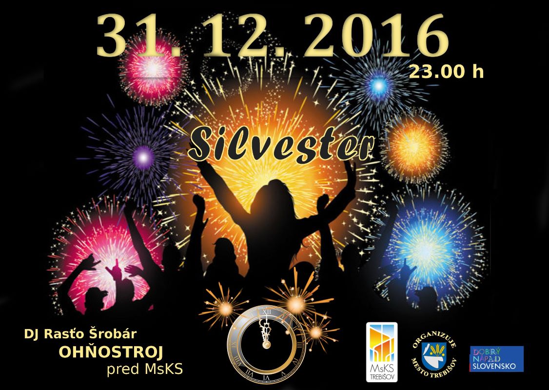 Oslavy ukončenia starého roka a privítania Nového roka 2017 budú v meste Trebišov prebiehať 31.12.2016 pred Mestským kultúrnym strediskom s reprodukovanou hudbou a DJ-om, a to v čase od 23.00 do 02.00 h. Na polnoc je pripravené odpálenie ohňostroja.