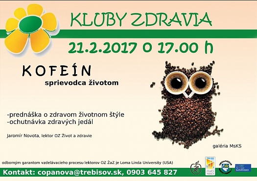 Mesto Trebišov v spolupráci s OZ Život a zdravie pripravujú prednášku na tému Kofeín- sprievodca životom.